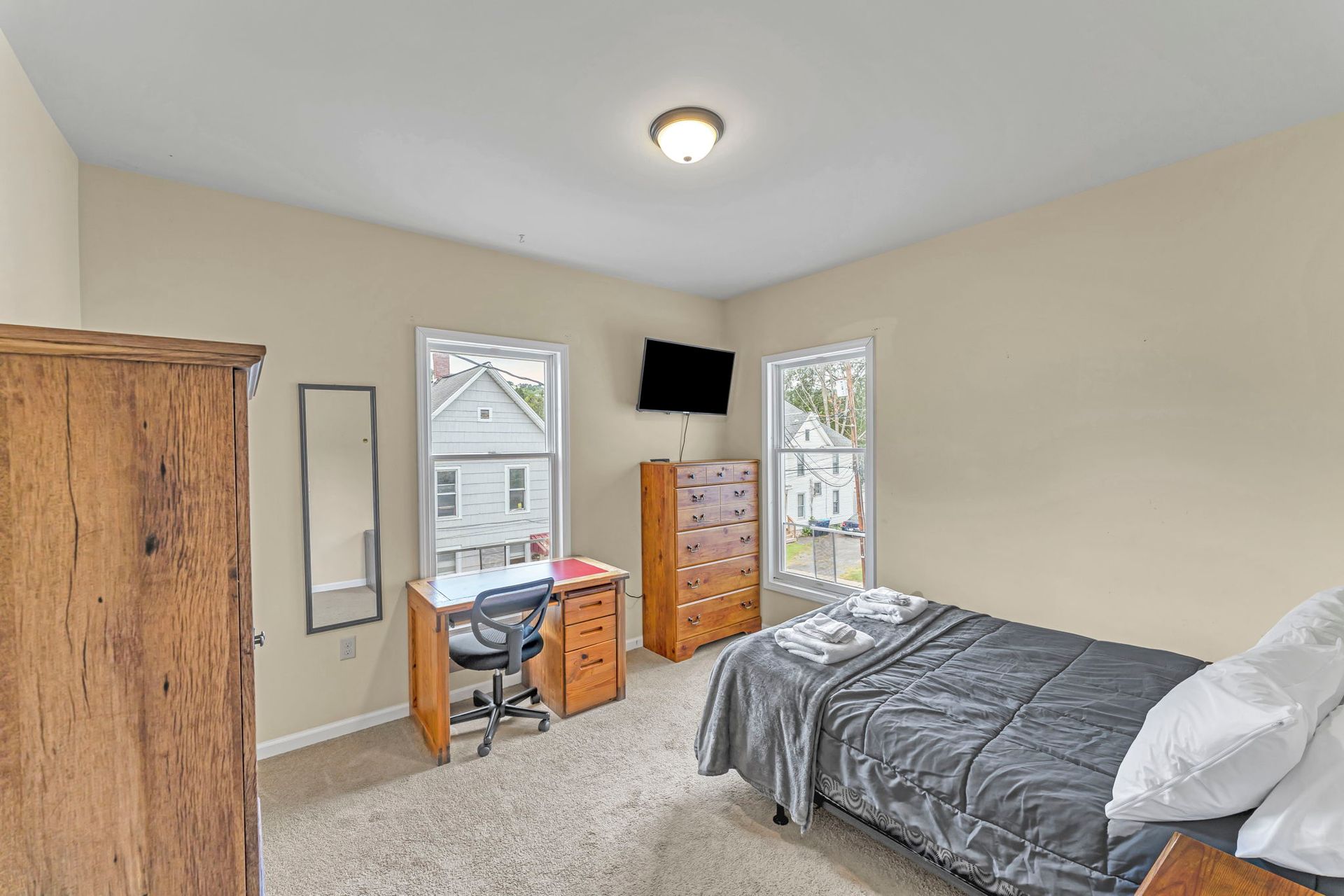 This well-maintained home offers two fully furnished three bedroom apartments. Amenities include new vinyl plank flooring downstairs and carpet upstairs, replacement windows throughout and laundry in each apartment. There is a large front porch. Centrally located and just a short walk to downtown Main Street, restaurants and stores. Close to college campus and bus routes. Rent either apartment or rent the whole house with your friends!