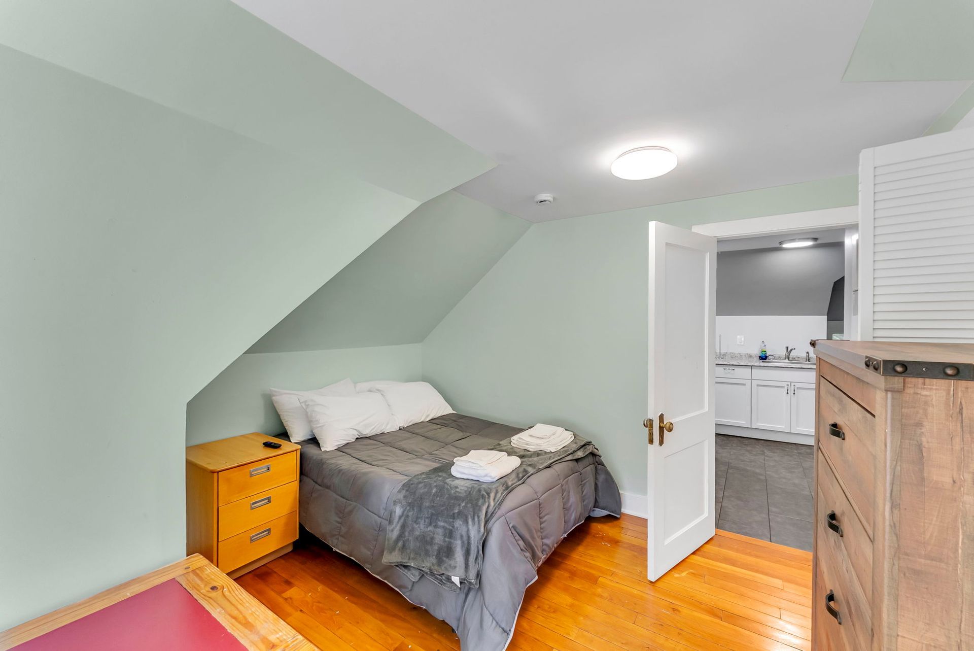 This third floor one bedroom apartment features new floors throughout. The newly renovated kitchen has a dishwasher and microwave. The spacious living room has a couch, end tables, entertainment center, and a 40"-50" flat screen TV! There is a full bathroom with a tub shower combination. The large bedroom has newer furniture including a 32"-50" TV, dresser, desk, office chair, nightstand, full size bed (mattress/box spring/frame).
