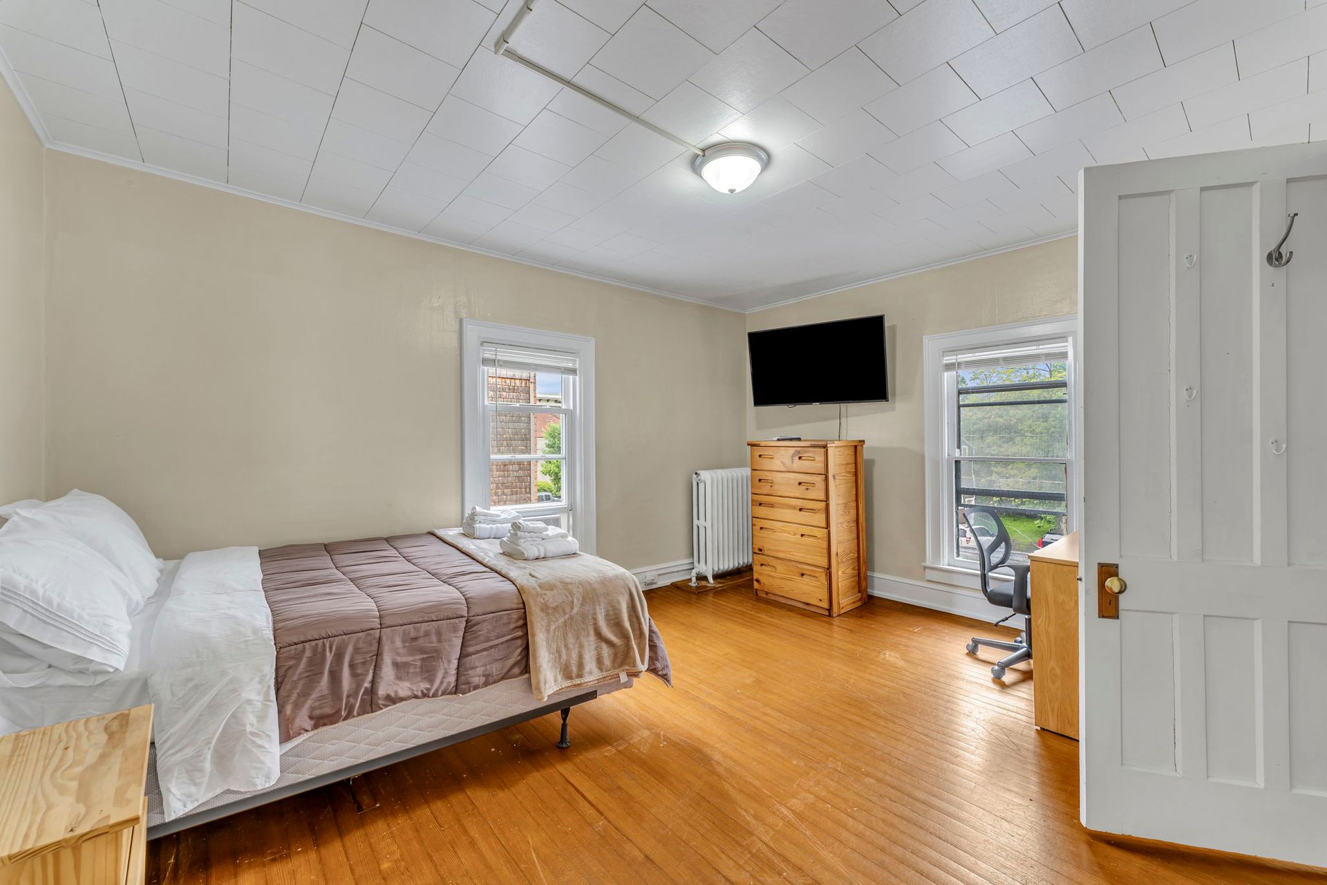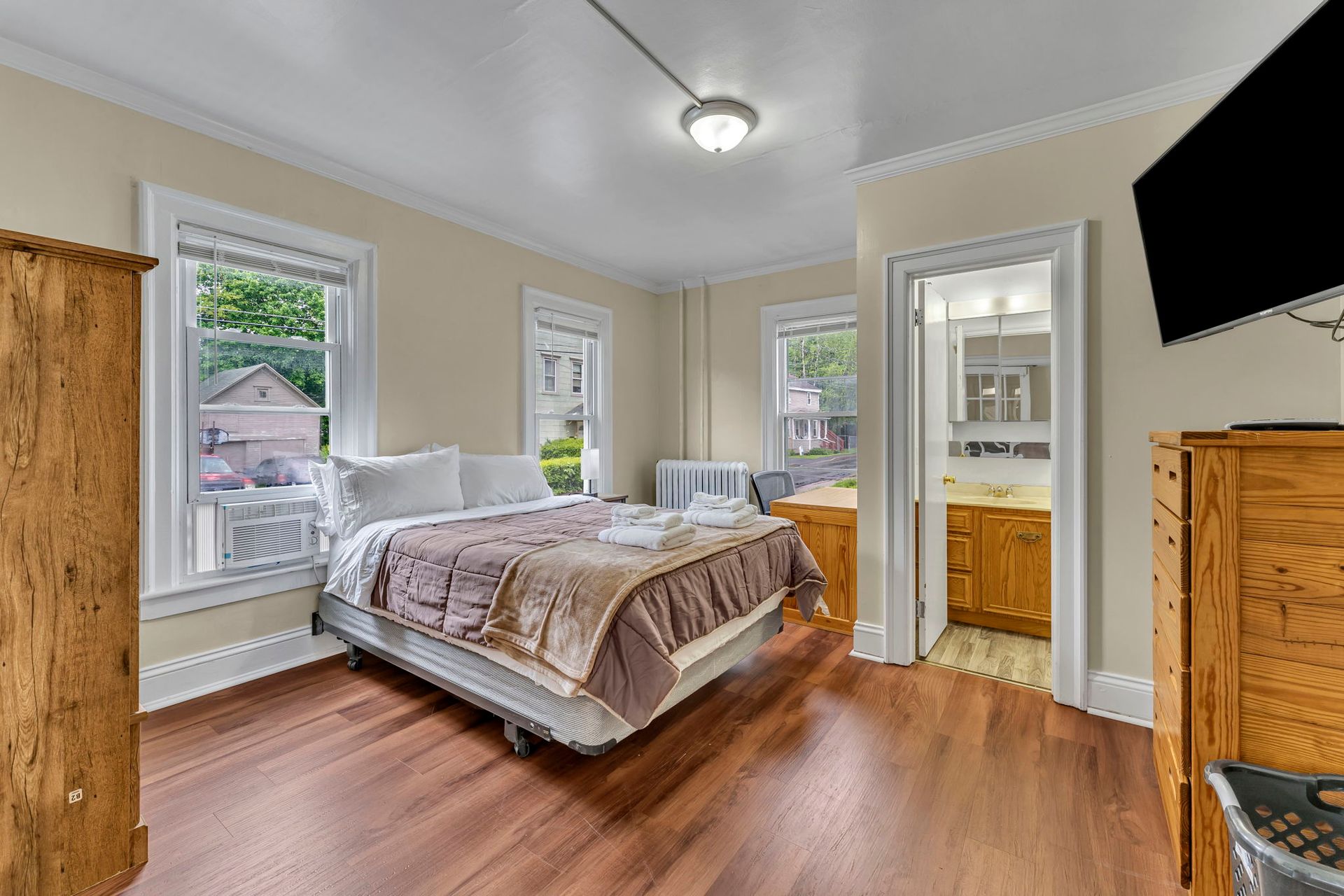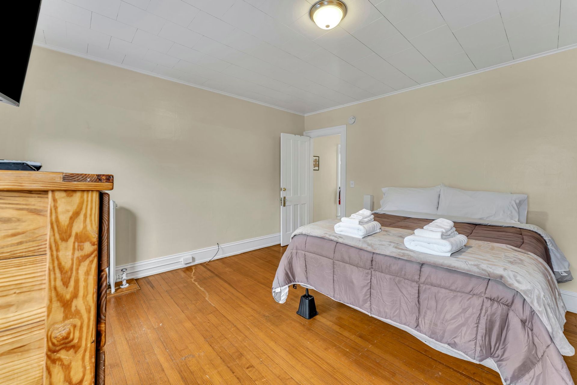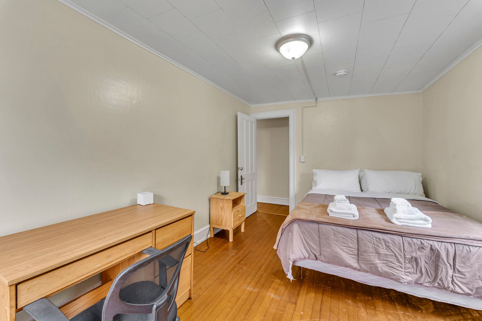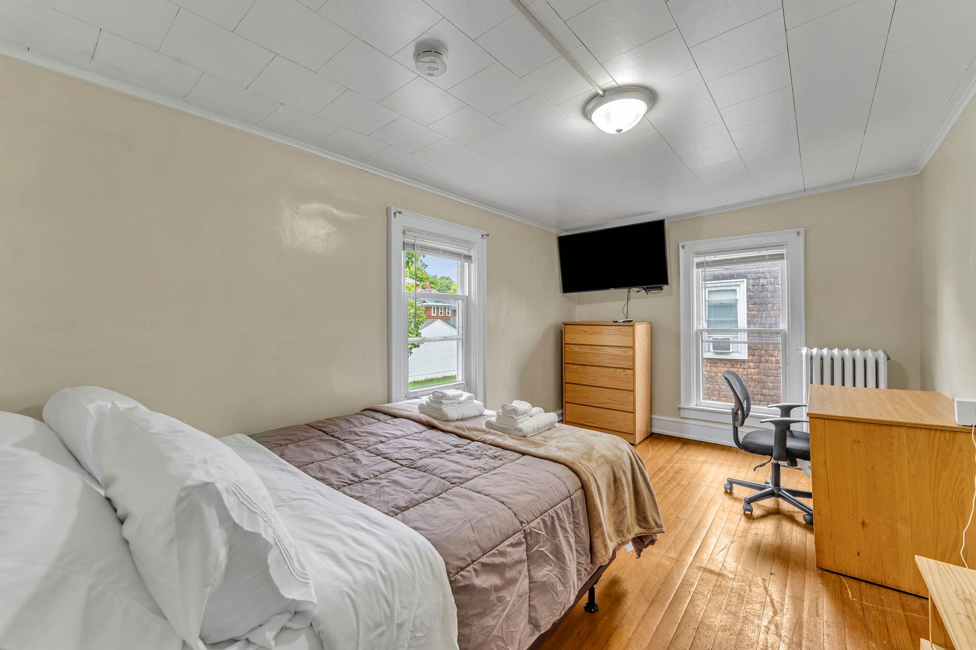 This well maintained single family home offers a spacious kitchen with an abundance of cabinets, dishwasher, microwave and washer/dryer. There is a separate dining room with a table and chairs. The living room has two couches, coffee and end tables, entertainment center, and a 40"-50" flat screen TV! There is a bedroom and half bathroom off the living room. The second floor has a bathroom with a combination tub and shower and three additional bedrooms. All bedrooms are nicely sized and have newer furniture including a 32"-50" TV, dresser, desk, office chair, nightstand, and a queen size bed (mattress/box spring/frame).
