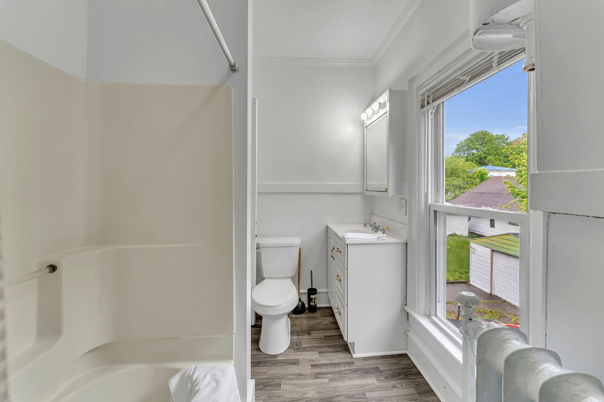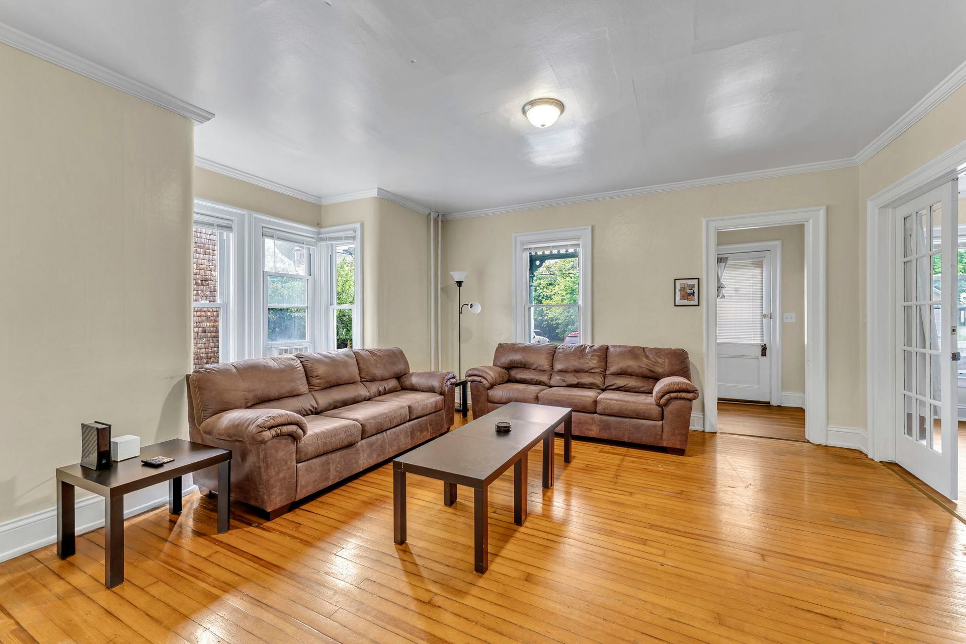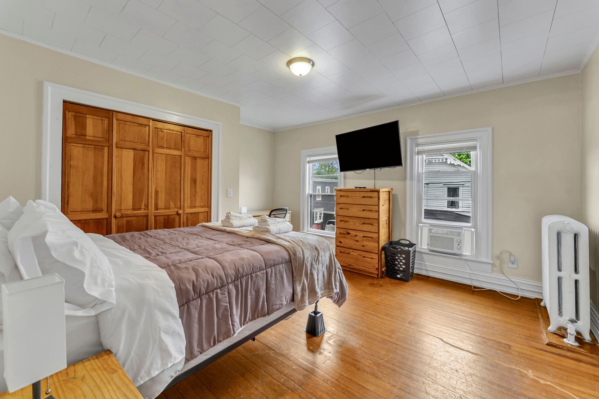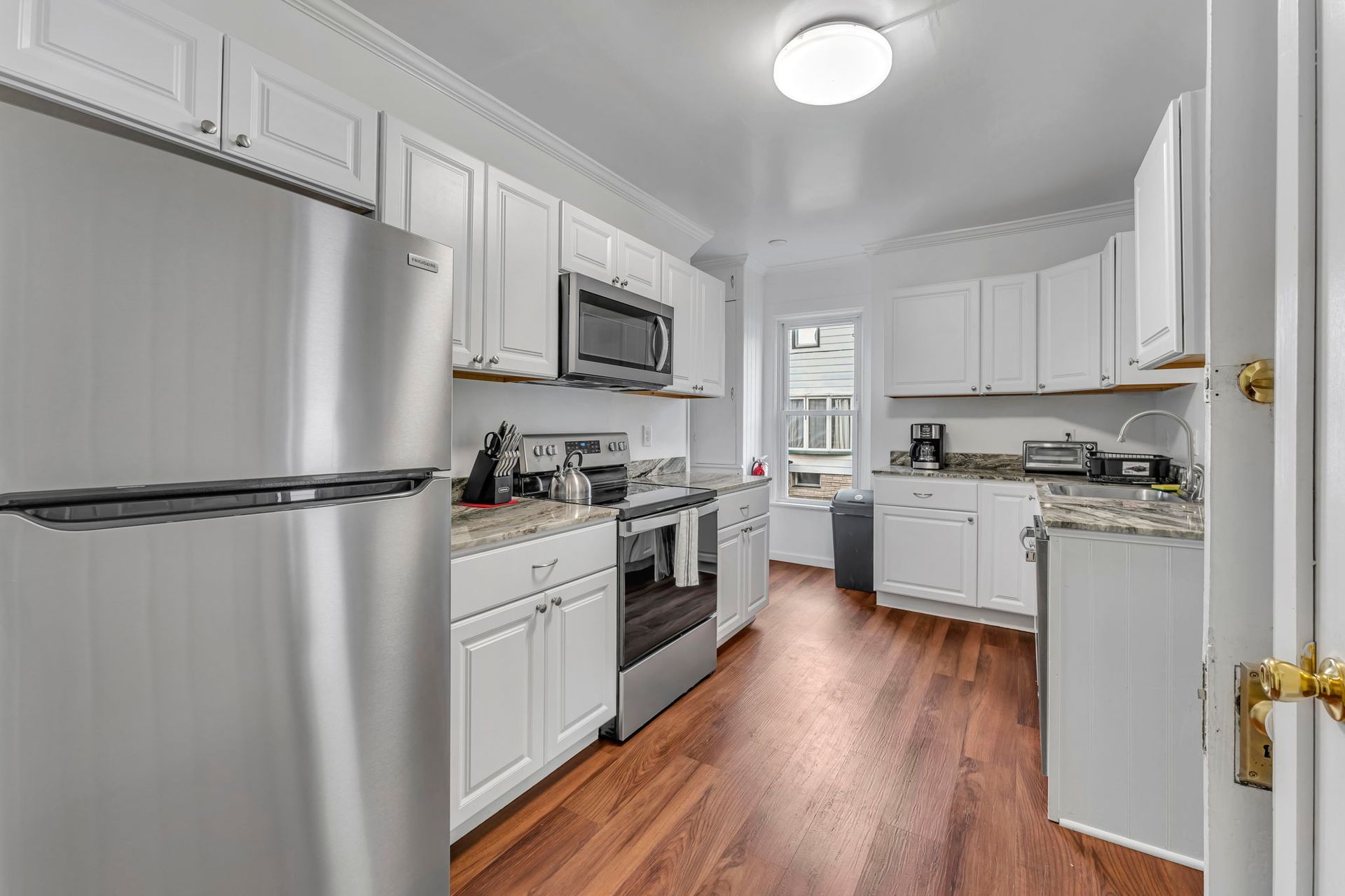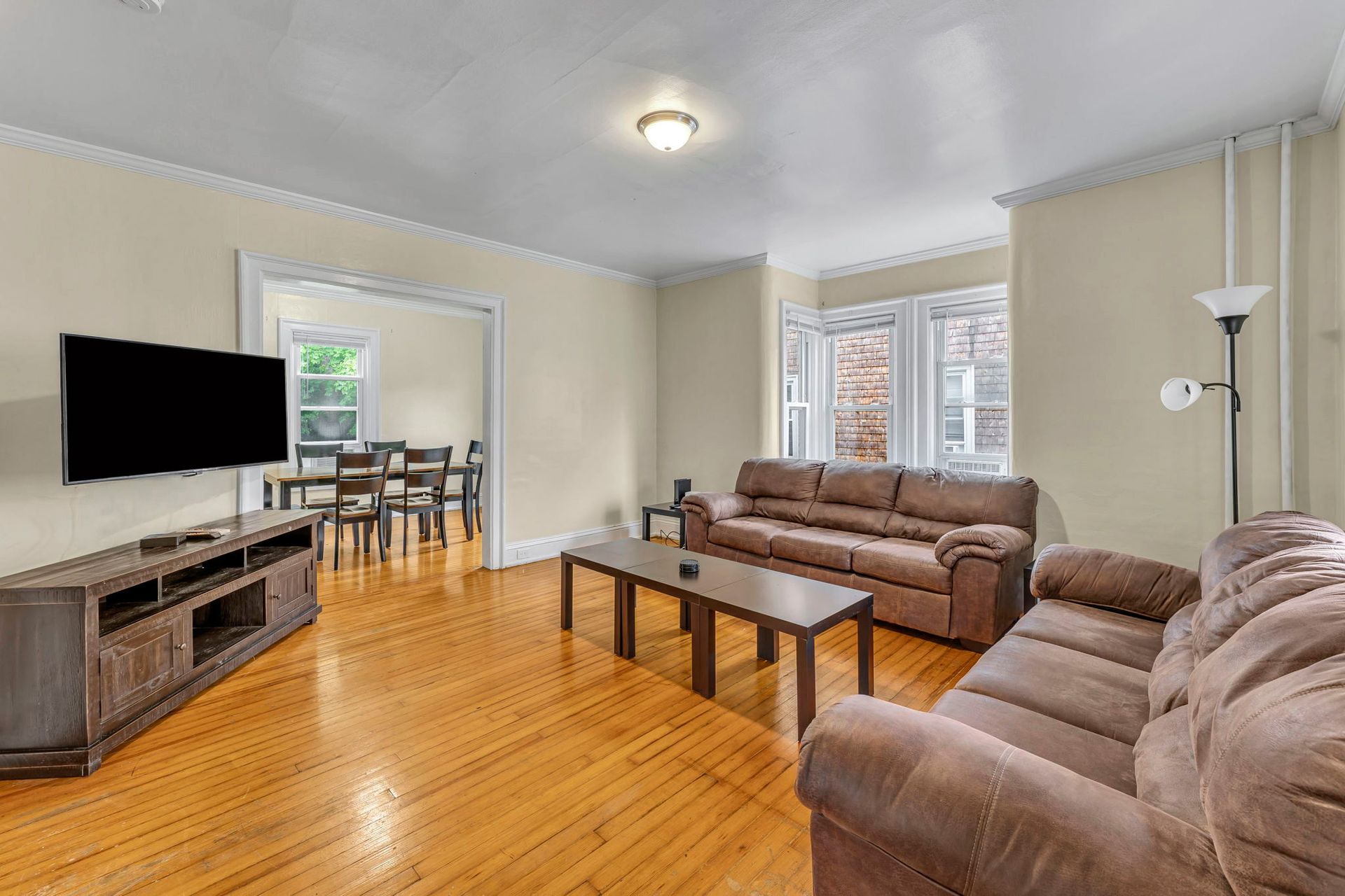 This well maintained single family home offers a spacious kitchen with an abundance of cabinets, dishwasher, microwave and washer/dryer. There is a separate dining room with a table and chairs. The living room has two couches, coffee and end tables, entertainment center, and a 40"-50" flat screen TV! There is a bedroom and half bathroom off the living room. The second floor has a bathroom with a combination tub and shower and three additional bedrooms. All bedrooms are nicely sized and have newer furniture including a 32"-50" TV, dresser, desk, office chair, nightstand, and a queen size bed (mattress/box spring/frame).
