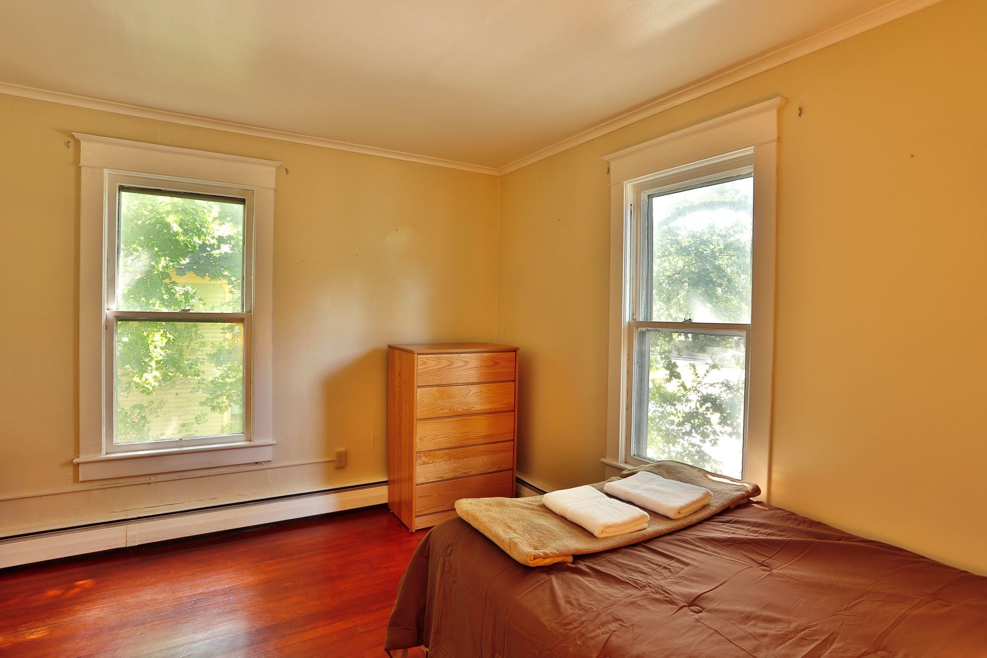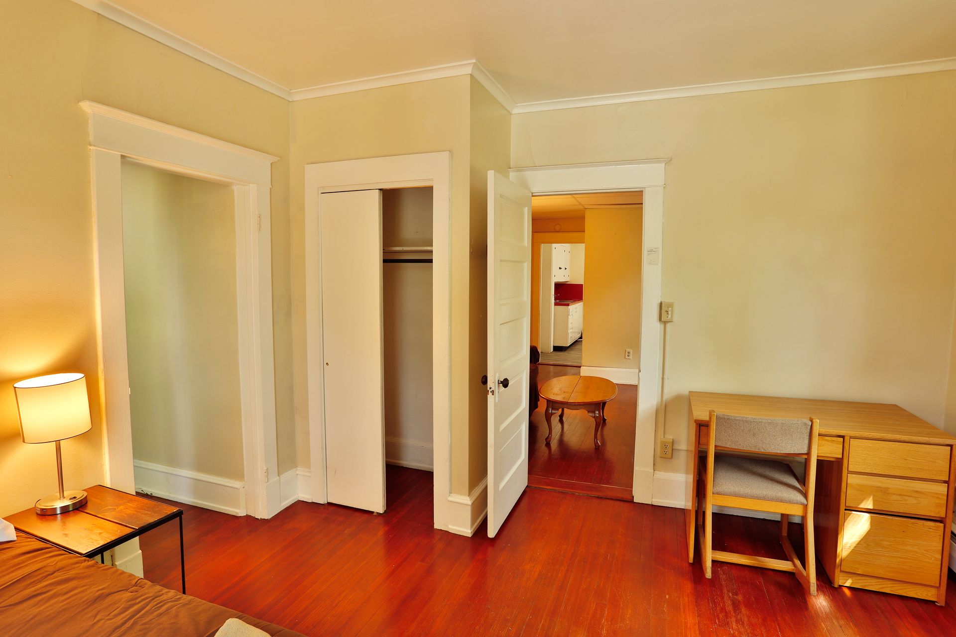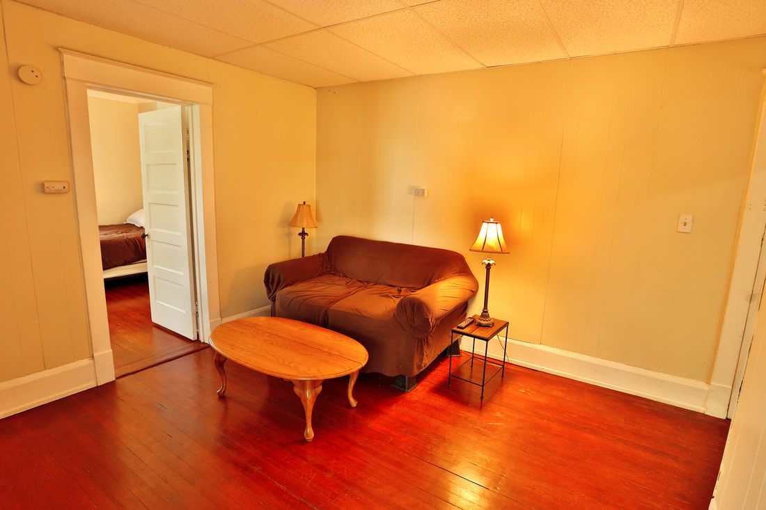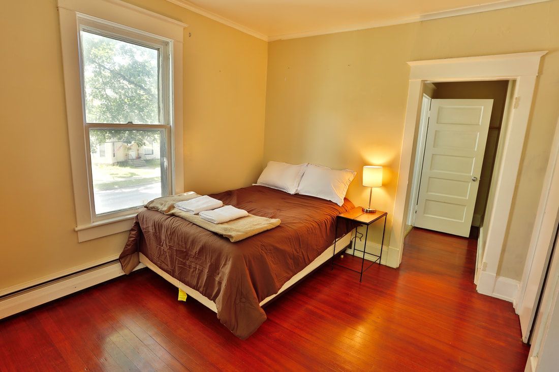 On the second floor there is a one bedroom apartment featuring wood floors, an eat-in kitchen with a microwave, table and chairs. The spacious living room has a couch, coffee and end tables, entertainment center, and a 40"-50" flat screen TV! There is a full bathroom with a walk in shower. The nicely sized bedroom has newer furniture including a 32"-50" TV, dresser, desk, office chair, nightstand, and full size bed (mattress/box spring/frame).