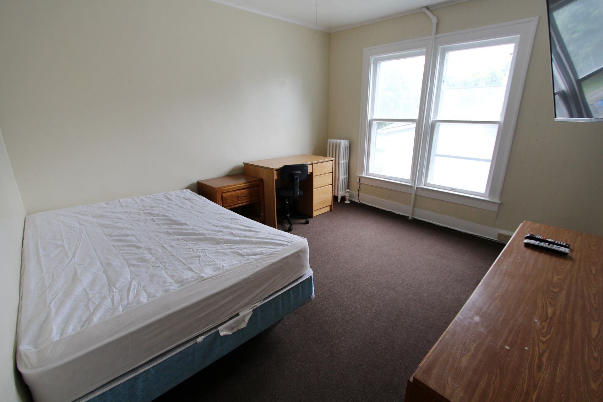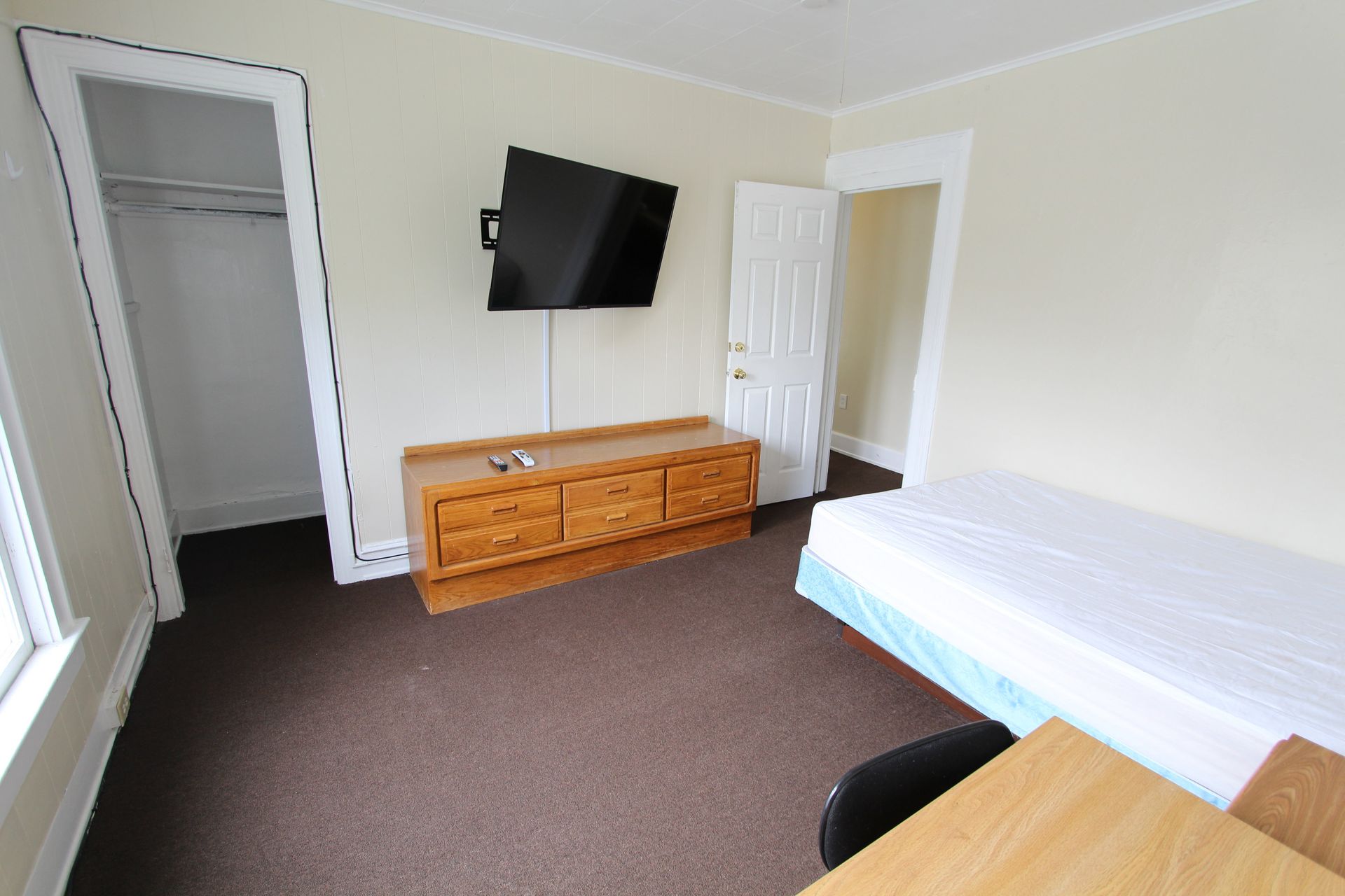 This five bedroom fully carpeted apartment features an eat-kitchen with a microwave and table with chairs. The living room features two couches, coffee and end tables, entertainment center, and a 40"-50" flat screen TV. There are two full bathrooms and one half bath. The spacious bedrooms all have newer furniture including a 32"-50" TV, dresser, desk, office chair, nightstand, and a queen size bed and 4 full size beds (mattress/box spring/frame).