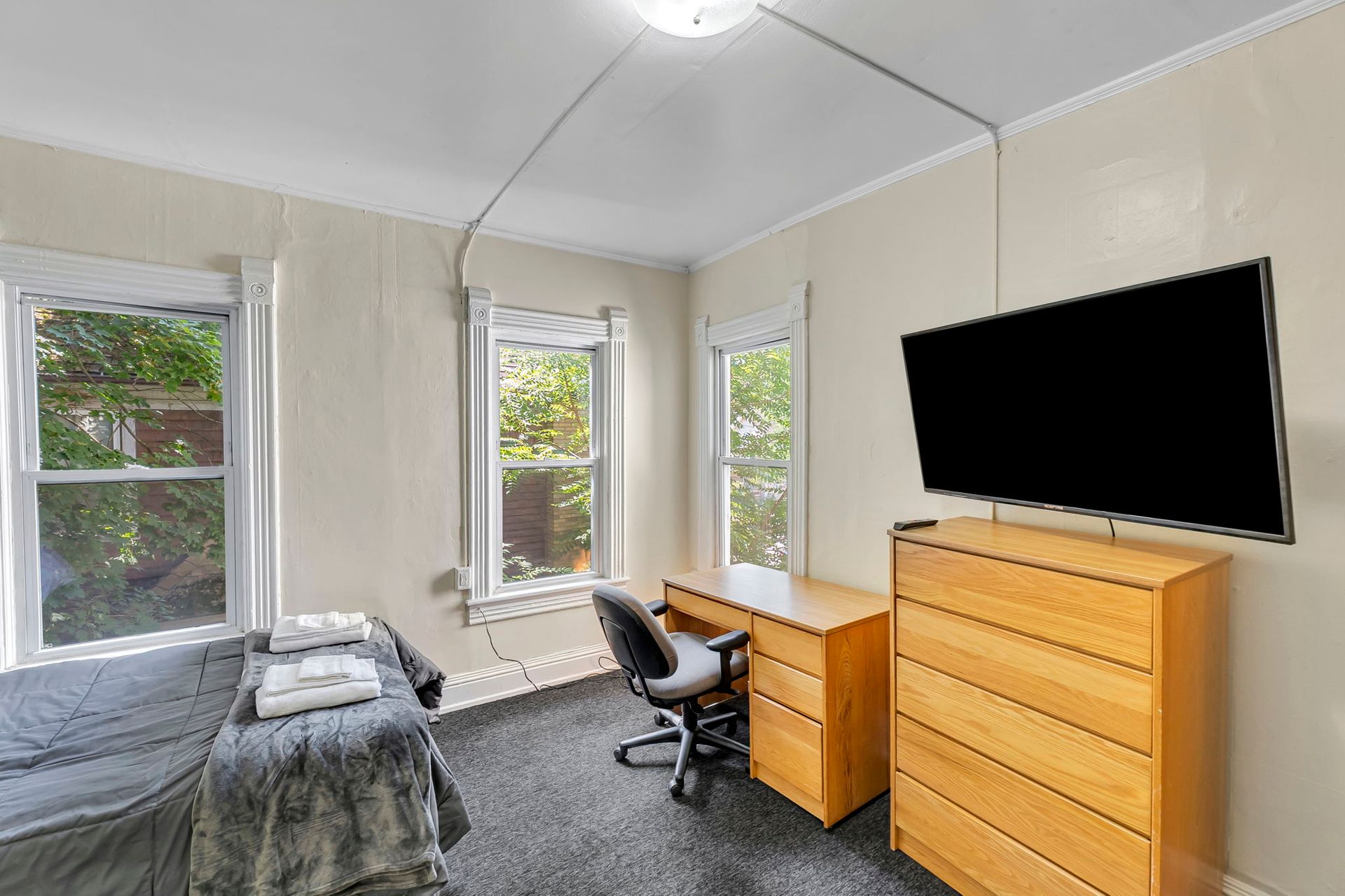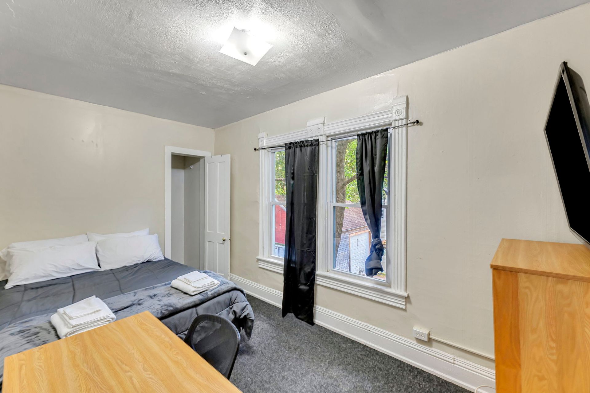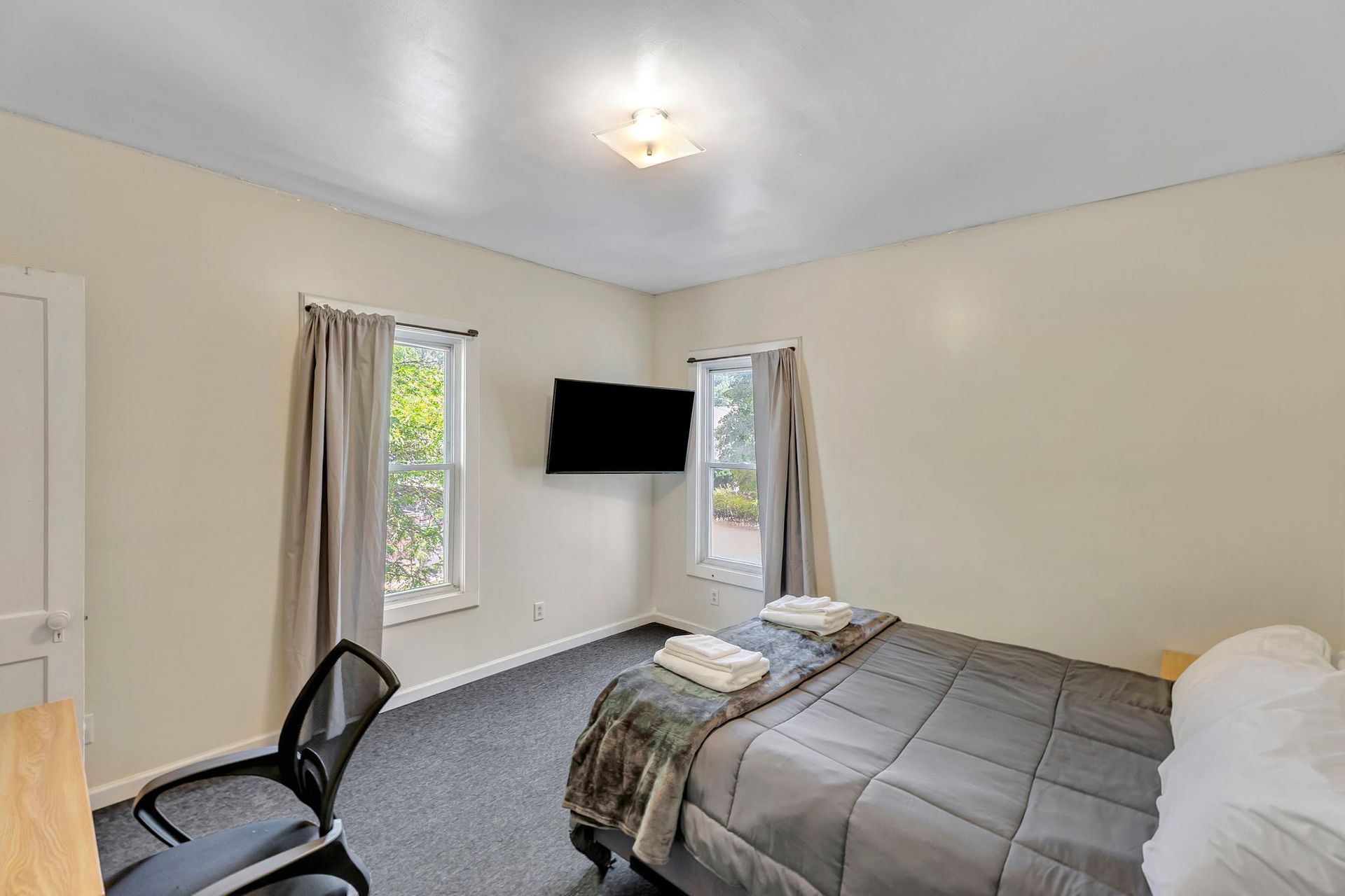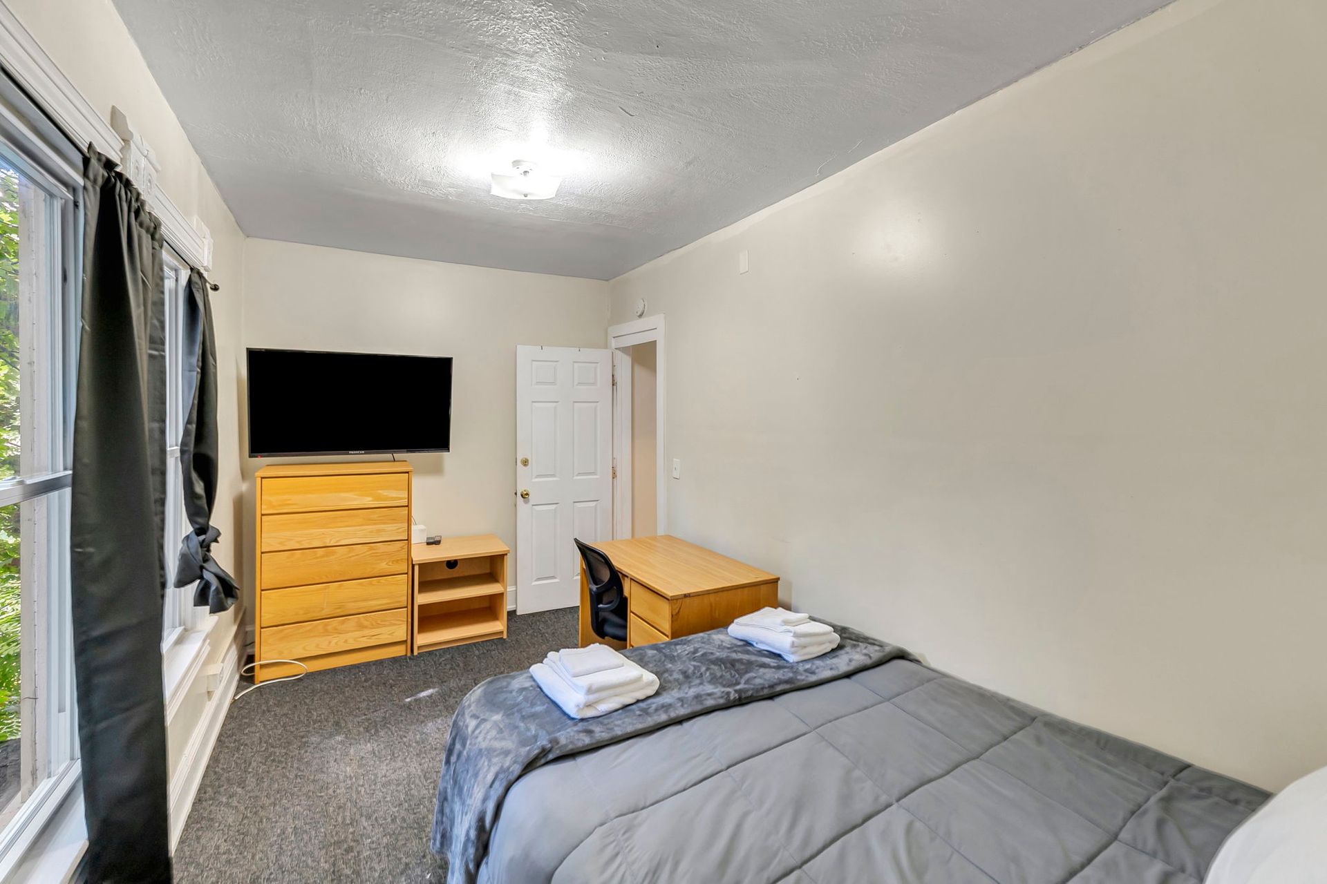 This well maintained house features a newer kitchen with an abundance of cabinets, granite countertops, stainless steel appliances including a dishwasher and microwave. There is a separate dining room with table and chairs. The spacious living room has two couches, coffee and end tables, entertainment center, and a 40"-50" flat screen TV! There are two full bathrooms both with a combination tub and shower. The nicely sized bedrooms all have newer furniture including a 32"-50" TV, dresser, desk, office chair, nightstand, with 3 full and 4 queen size beds (mattress/box spring/frame).