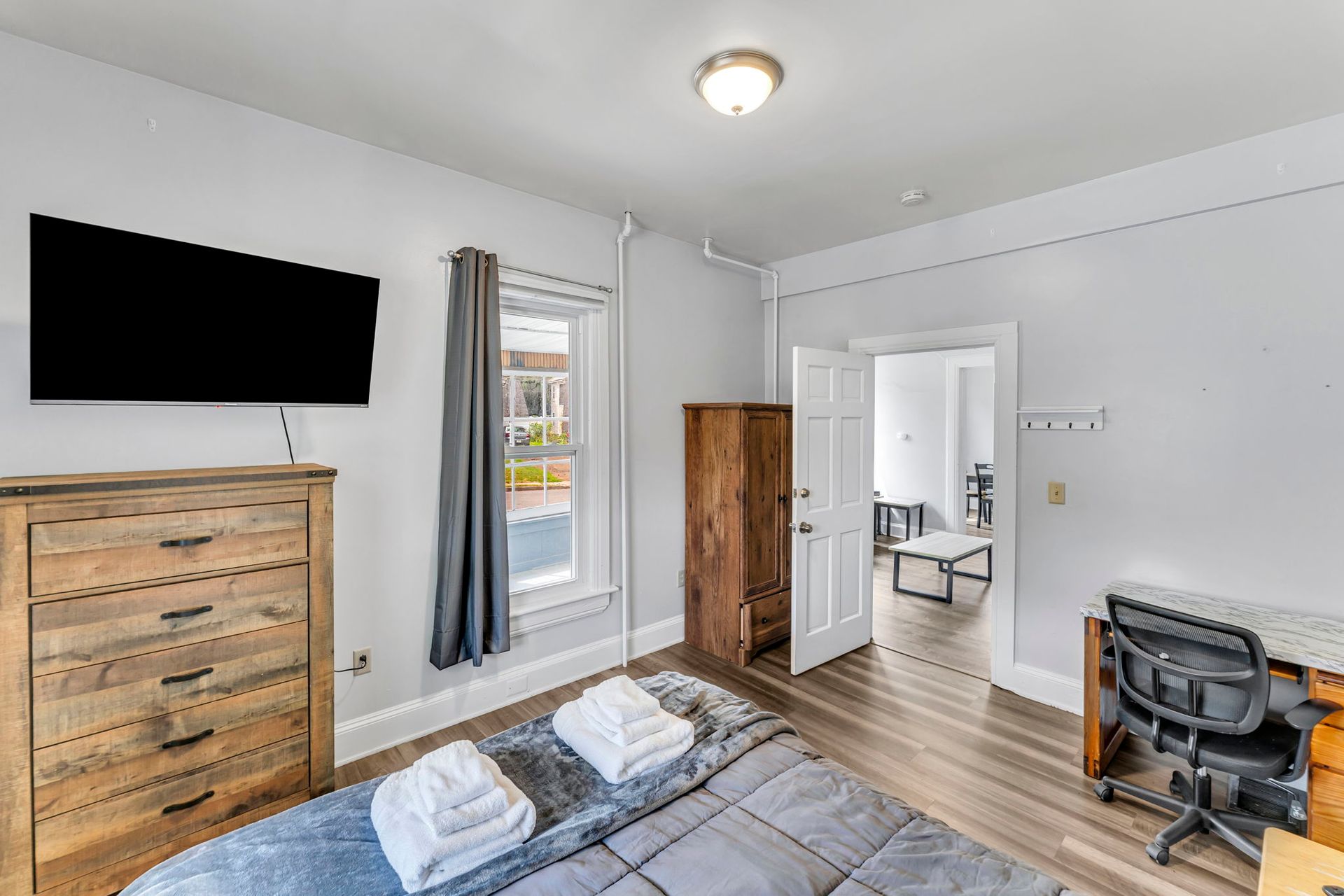 This two bedroom apartment features a kitchen with a microwave. There is a dining area with a table and chairs. The living room offers a couch, coffee and end tables, entertainment center, and a 40"-50" flat screen TV! A washer and dryer are on site. It features a full bathroom with a combination tub and shower. The two bedrooms feature newer furniture including a 32"-50" TV, dresser, desk, office chair, nightstand, and a queen size bed (mattress/box spring/frame).