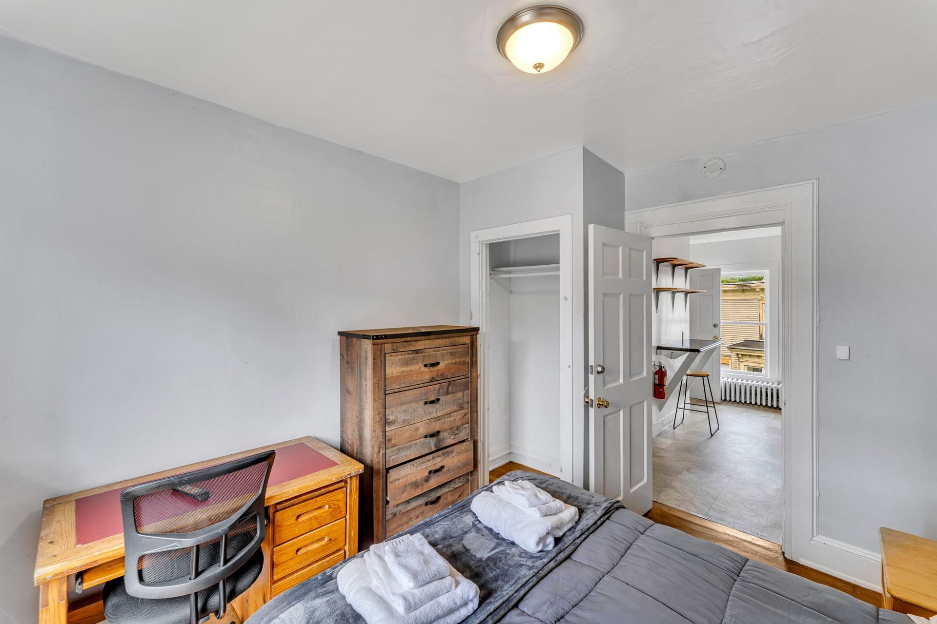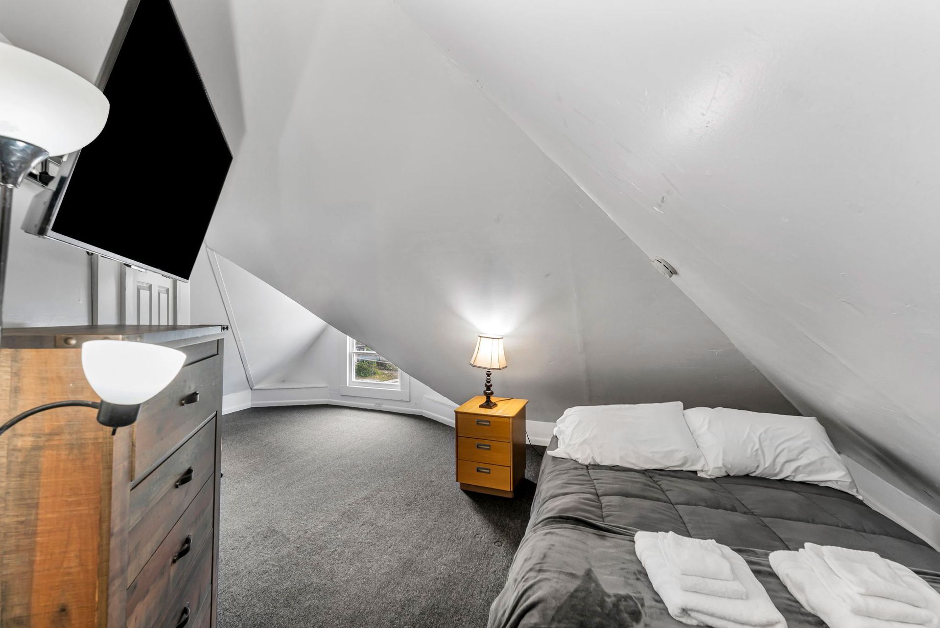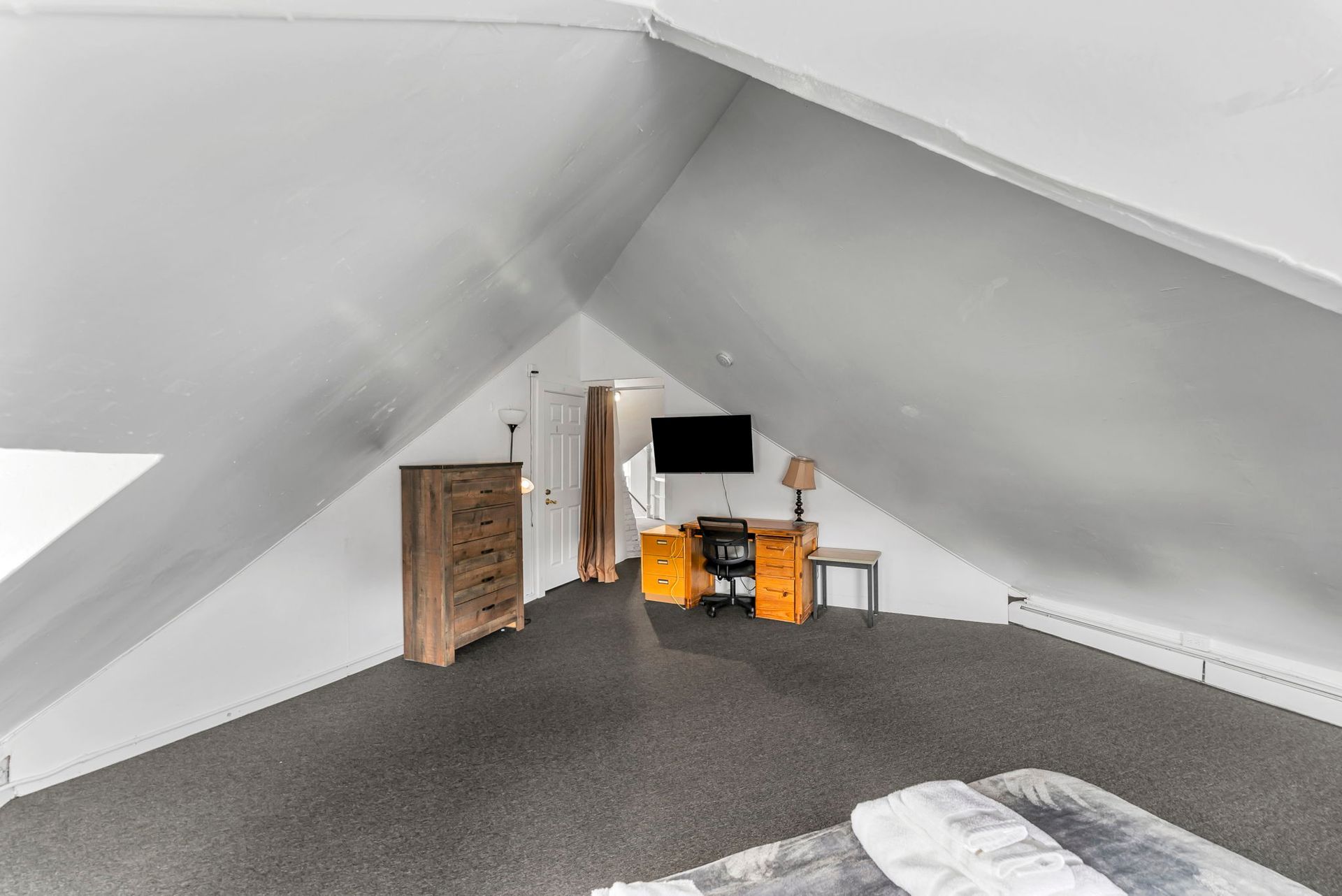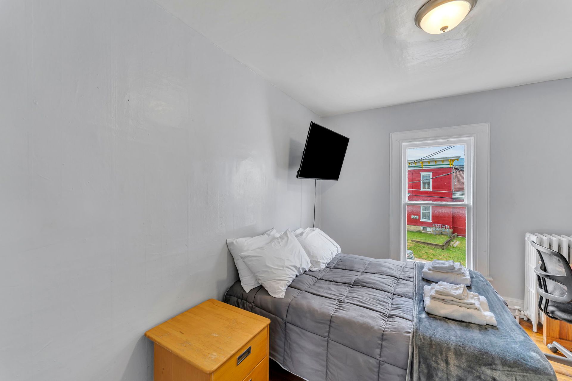 This five bedroom apartment features a kitchen with a microwave and small breakfast bar. The living room offers two couches, coffee and end tables, entertainment center, and a 40"-50" flat screen TV! A washer and dryer are on site. It features a full bathroom with a combination tub and shower. Three bedrooms are on the second floor and two bedrooms are on the third floor. The bedrooms feature newer furniture including a 32"-50" TV, dresser, desk, office chair, nightstand, and a full or queen size bed (mattress/box spring/frame).