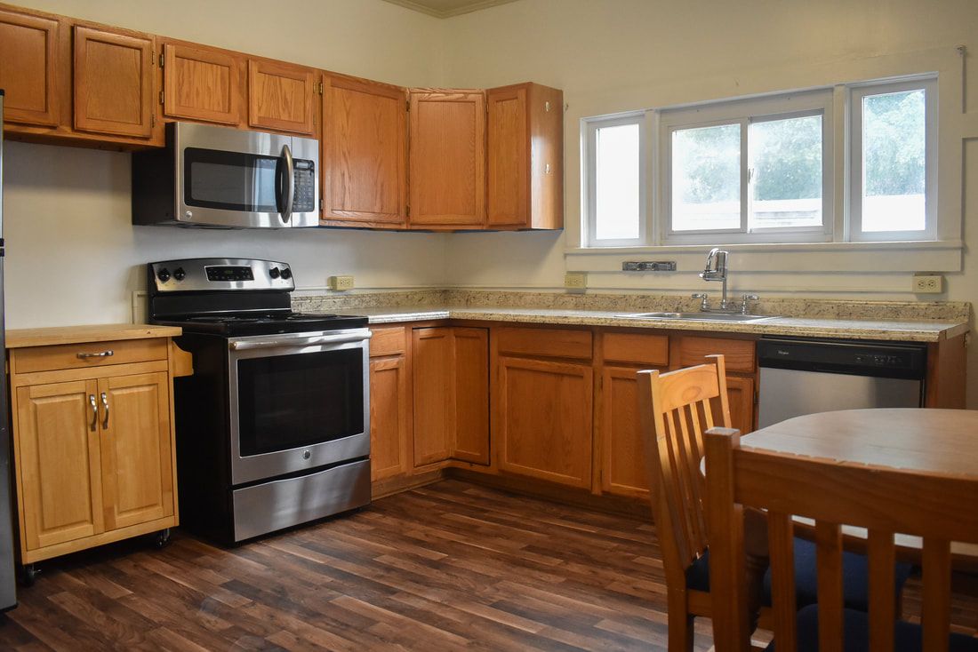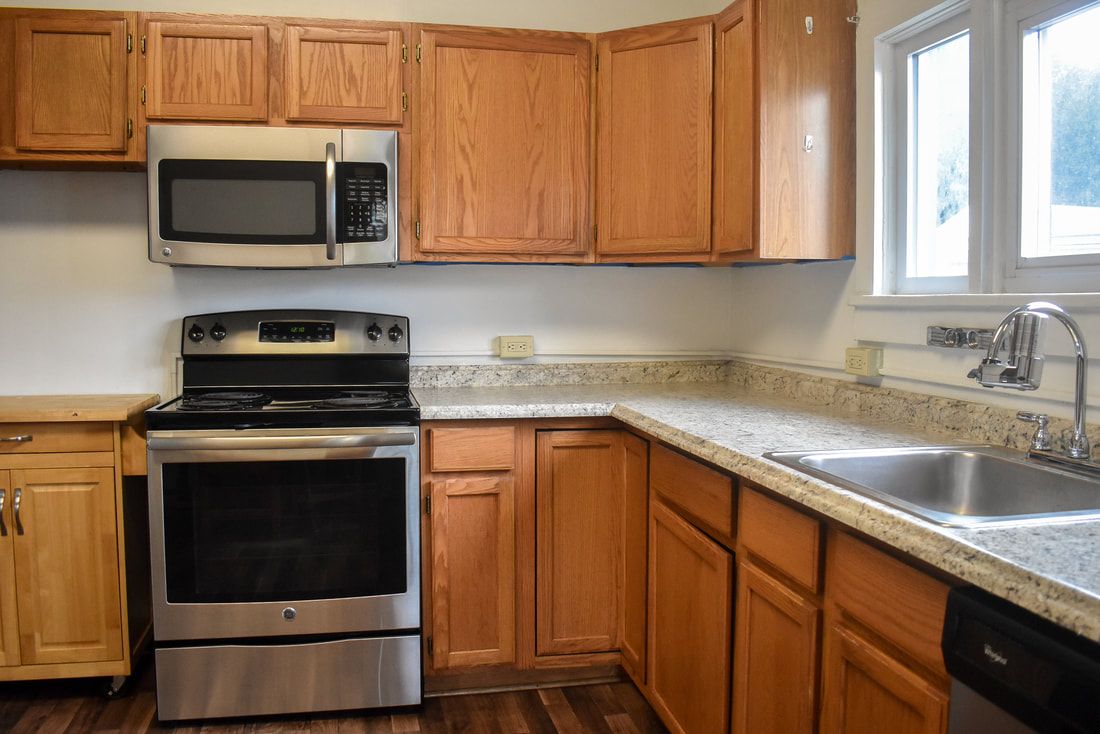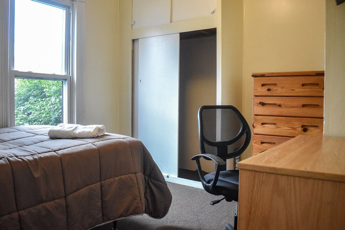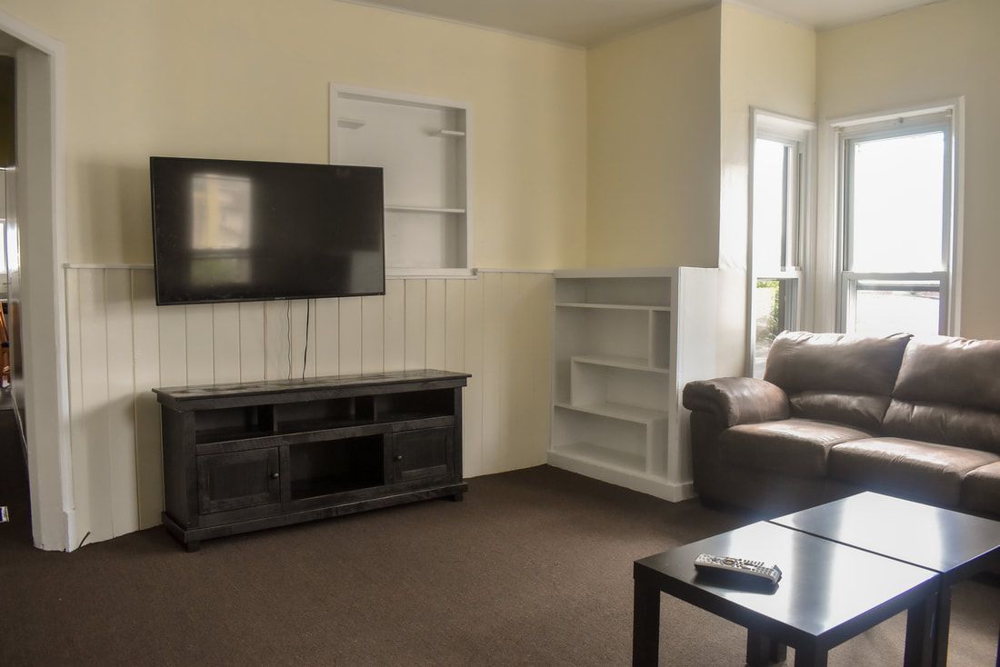 This first floor three bedroom apartment features carpeting throughout, an eat-in kitchen with an abundance of cabinets, dishwasher, microwave and a table with chairs. The spacious living room has two couches, coffee and end tables, entertainment center, and a 40"-50" flat screen TV! There is a full bathroom with a combination tub and shower. The three nicely sized bedrooms all have newer furniture including a 32"-50" TV, dresser, desk, office chair, nightstand, and full size beds (mattress/box spring/frame).
