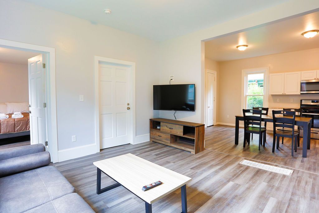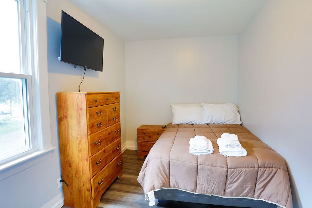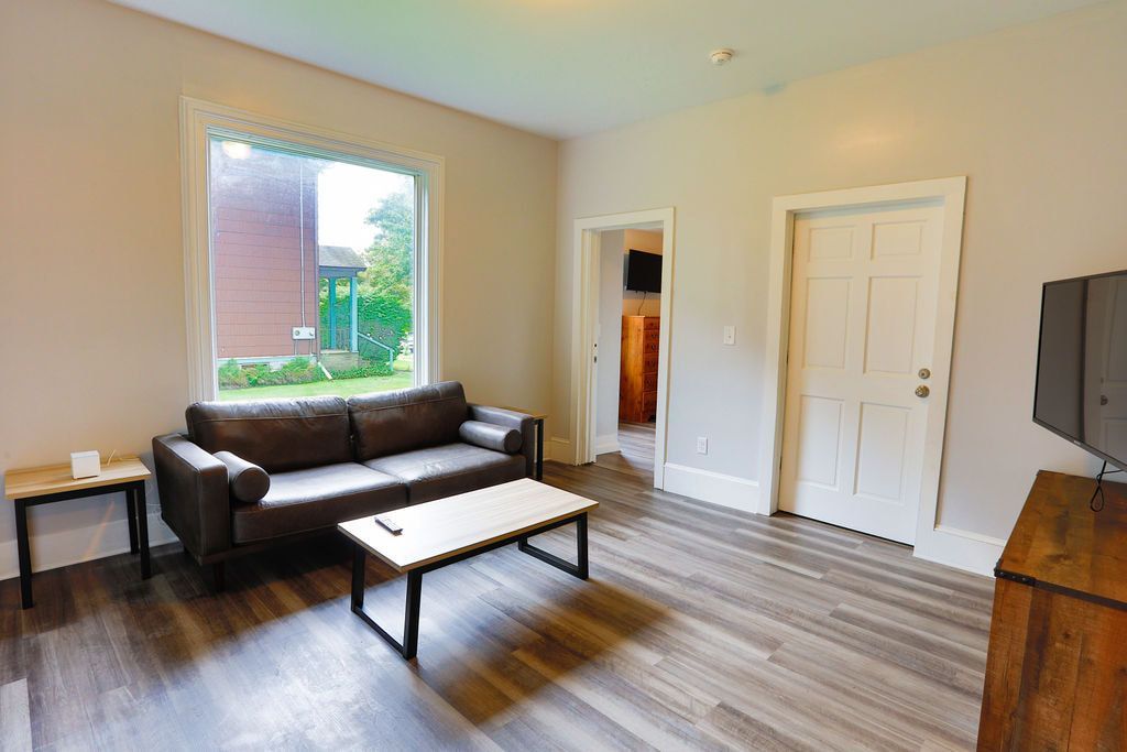 This first floor three bedroom apartment features vinyl plank floors throughout, dining room and kitchen with a dishwasher and microwave. The spacious living room has a couch, coffee and end tables, entertainment center, and a 40"-50" flat screen TV! There is a full bathroom with a tub shower combination. The nicely sized bedrooms have newer furniture including a 32"-50" TV, dresser, desk, office chair, nightstand, two queen size beds and a full size bed (mattress/box spring/frame).