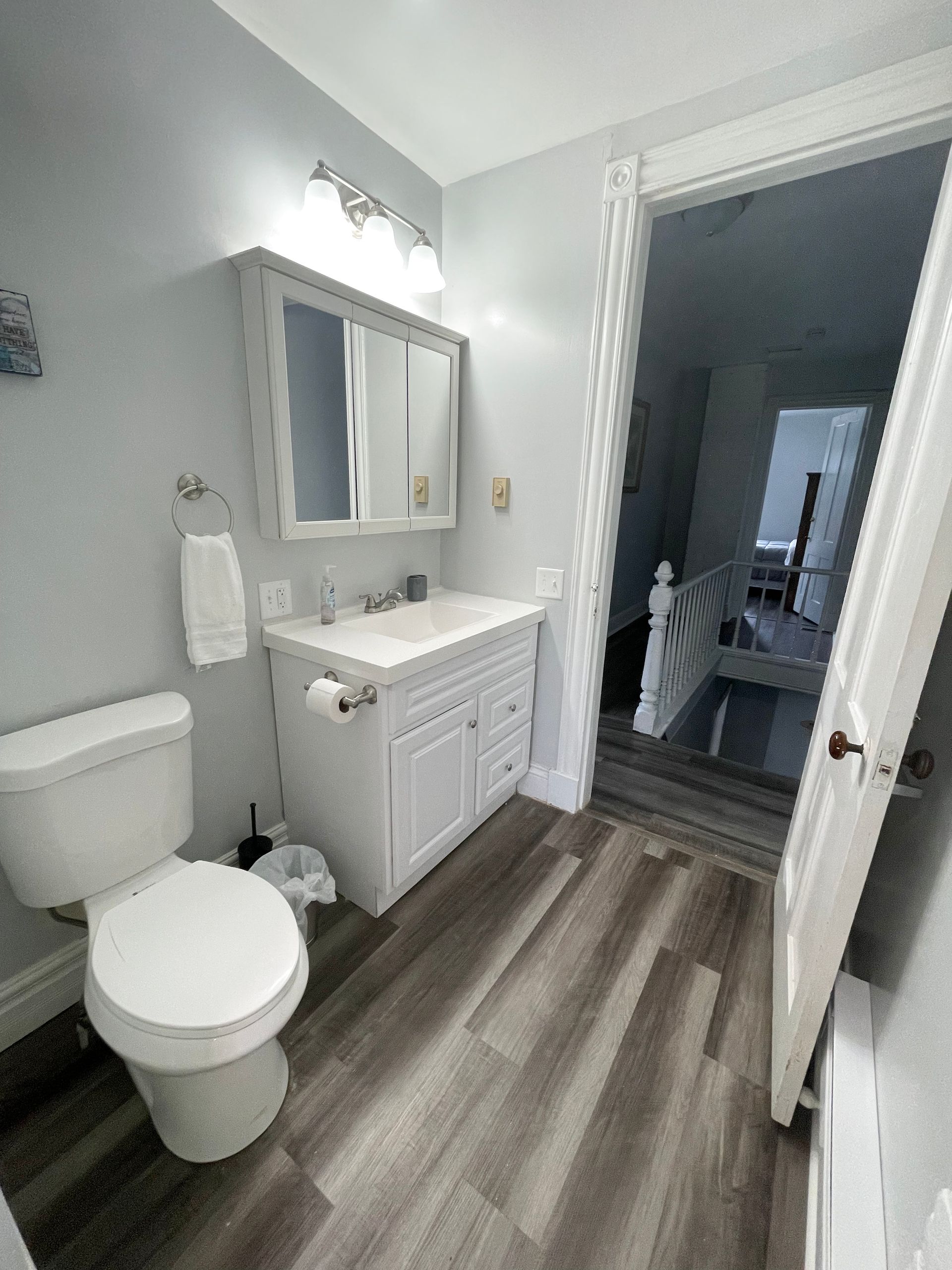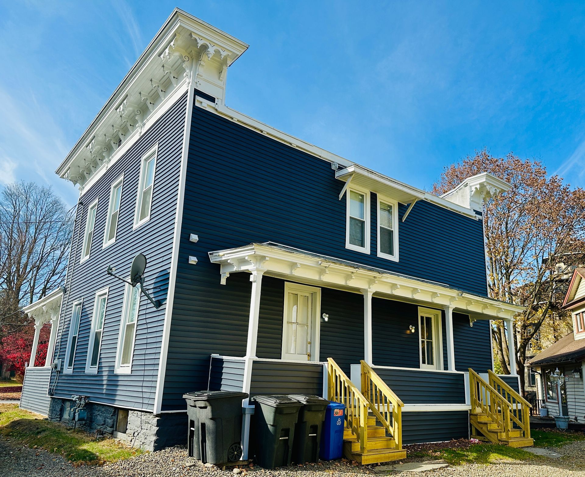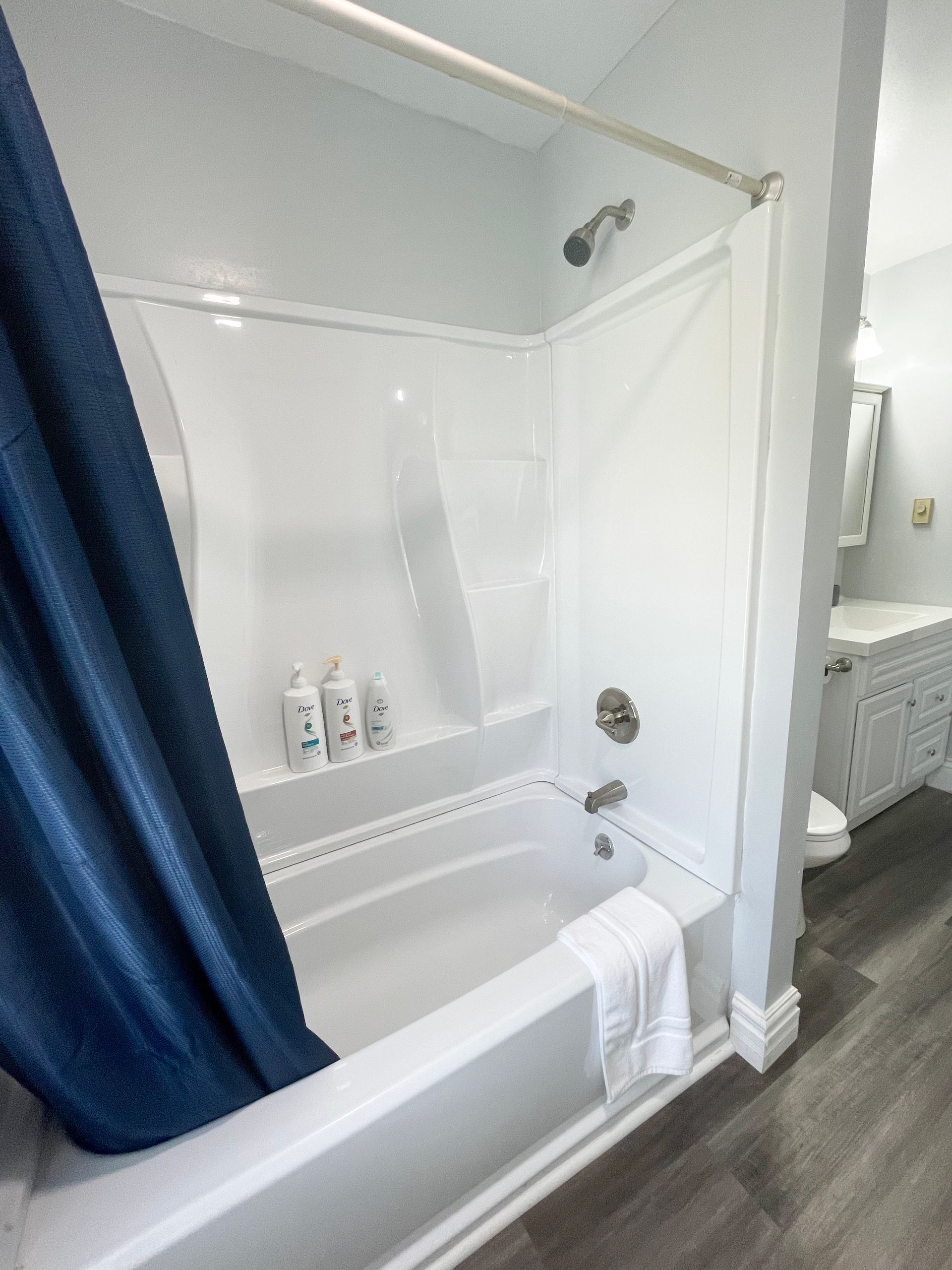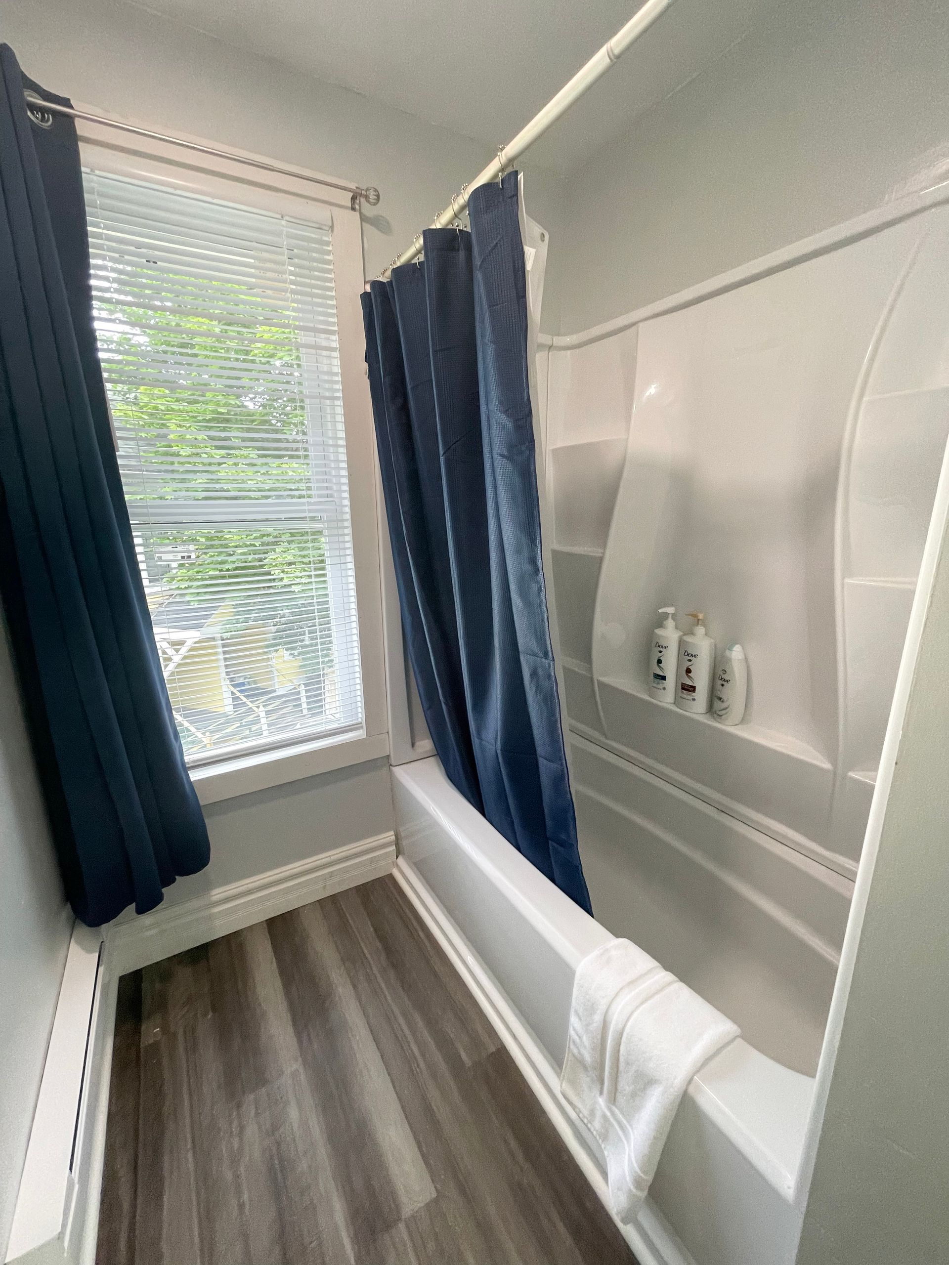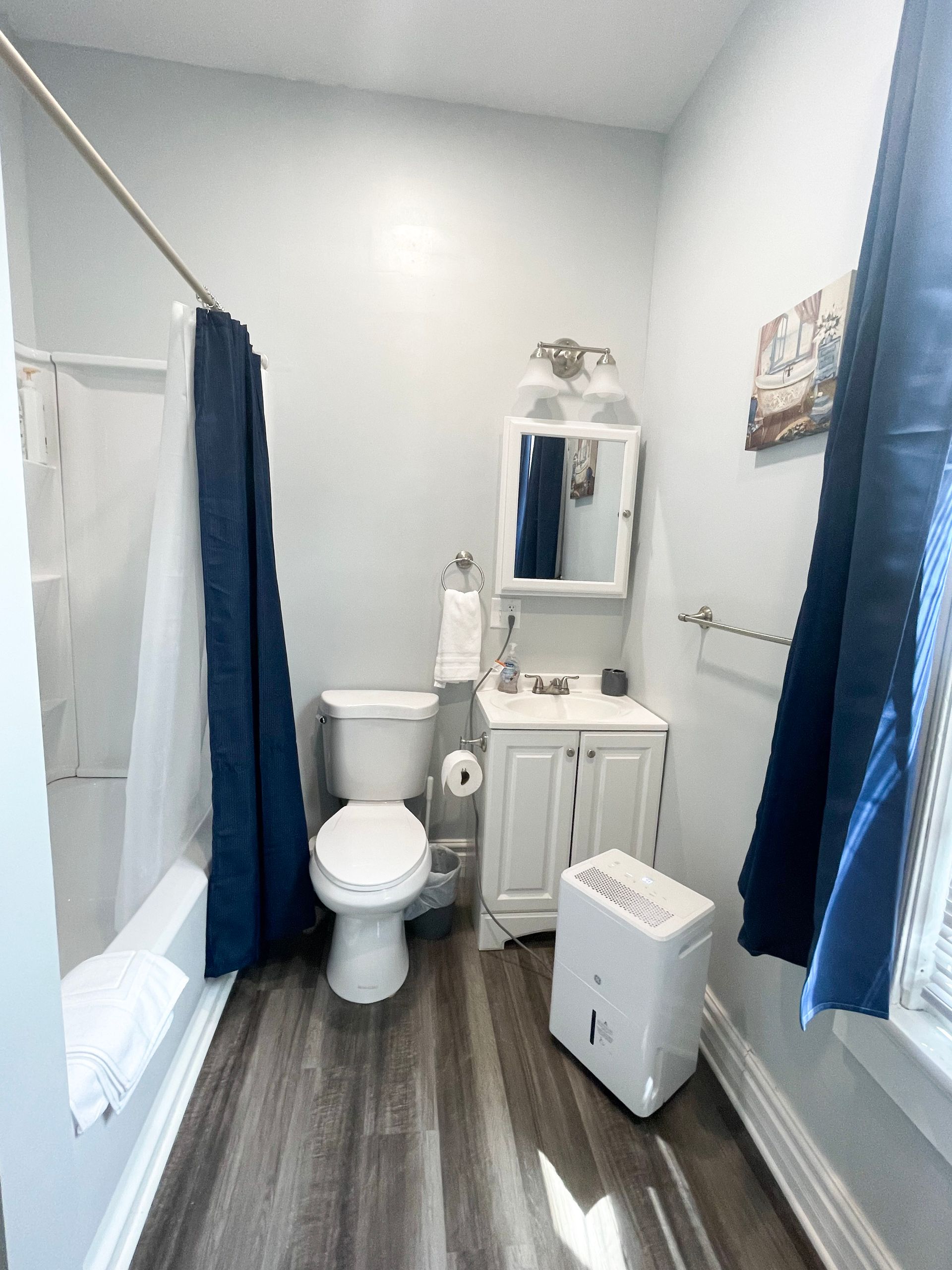 The right side of this two-story four bedroom apartment features an eat-in kitchen with a dishwasher, microwave and a table with chairs. The living room has a couch, coffee and end tables, entertainment center, and a 40"-50" flat screen TV! The first floor has a full bathroom with a combination shower/tub and washer/dryer. The second floor offers a full bathroom with a combination tub and shower. The three bedrooms all have newer furniture including a 32"-50" TV, dresser, desk, office chair, nightstand, and a queen size bed (mattress/box spring/frame).