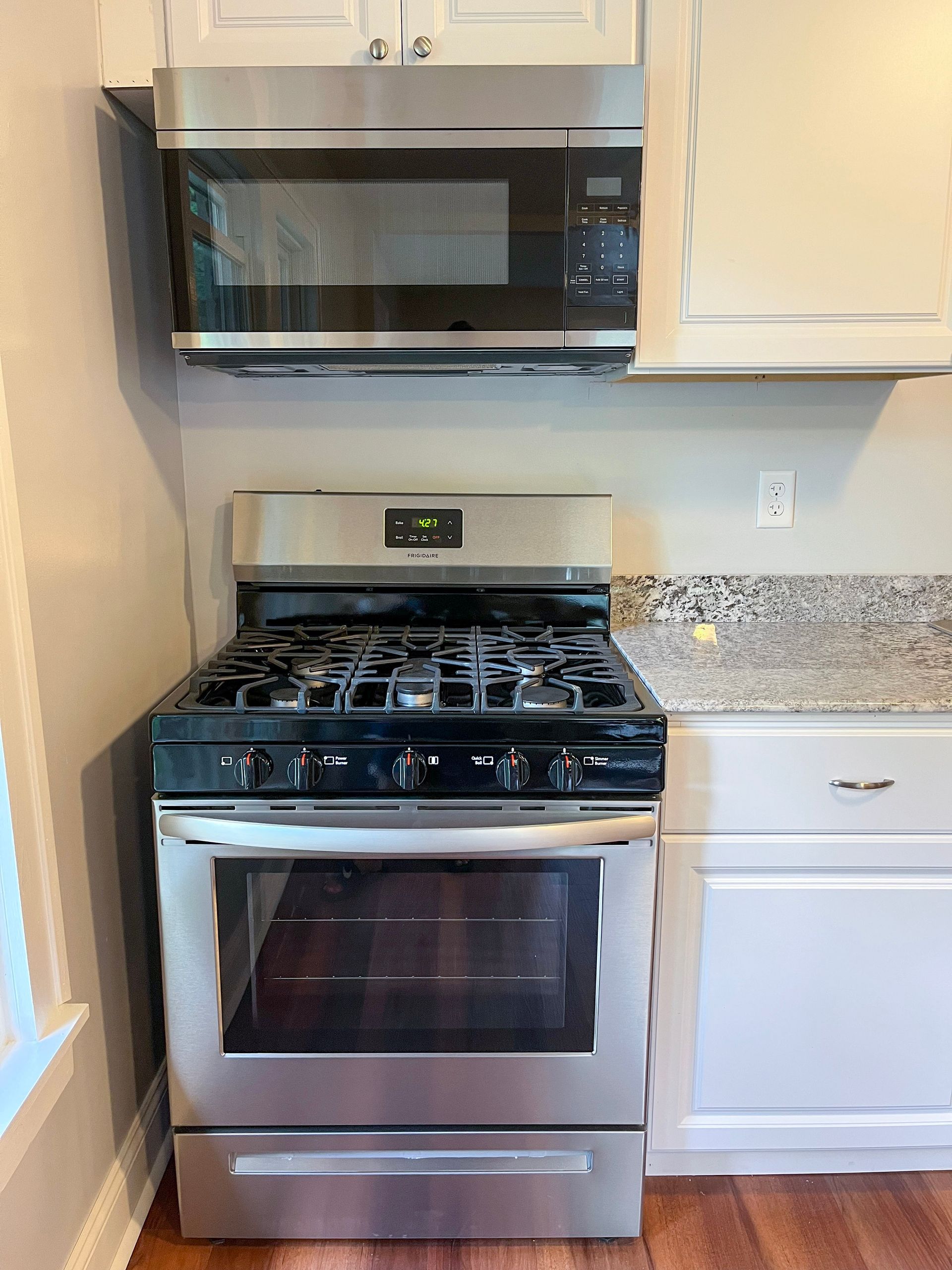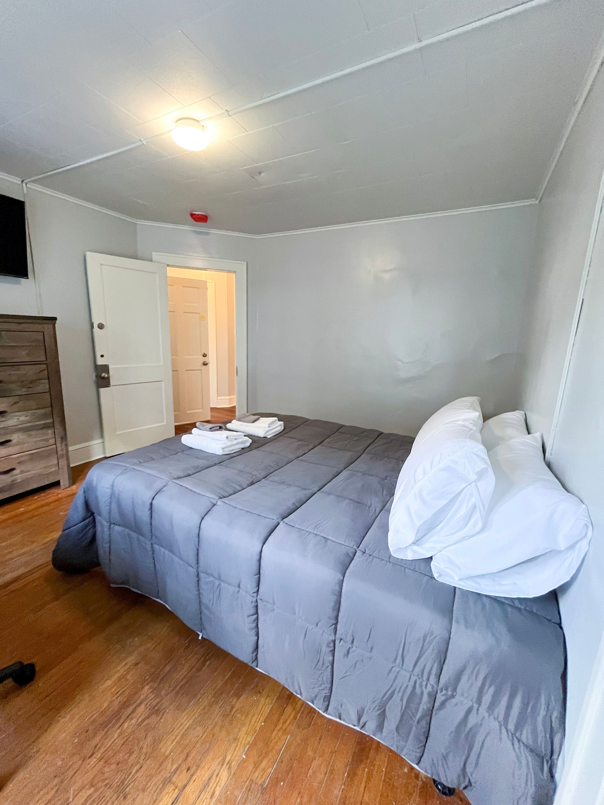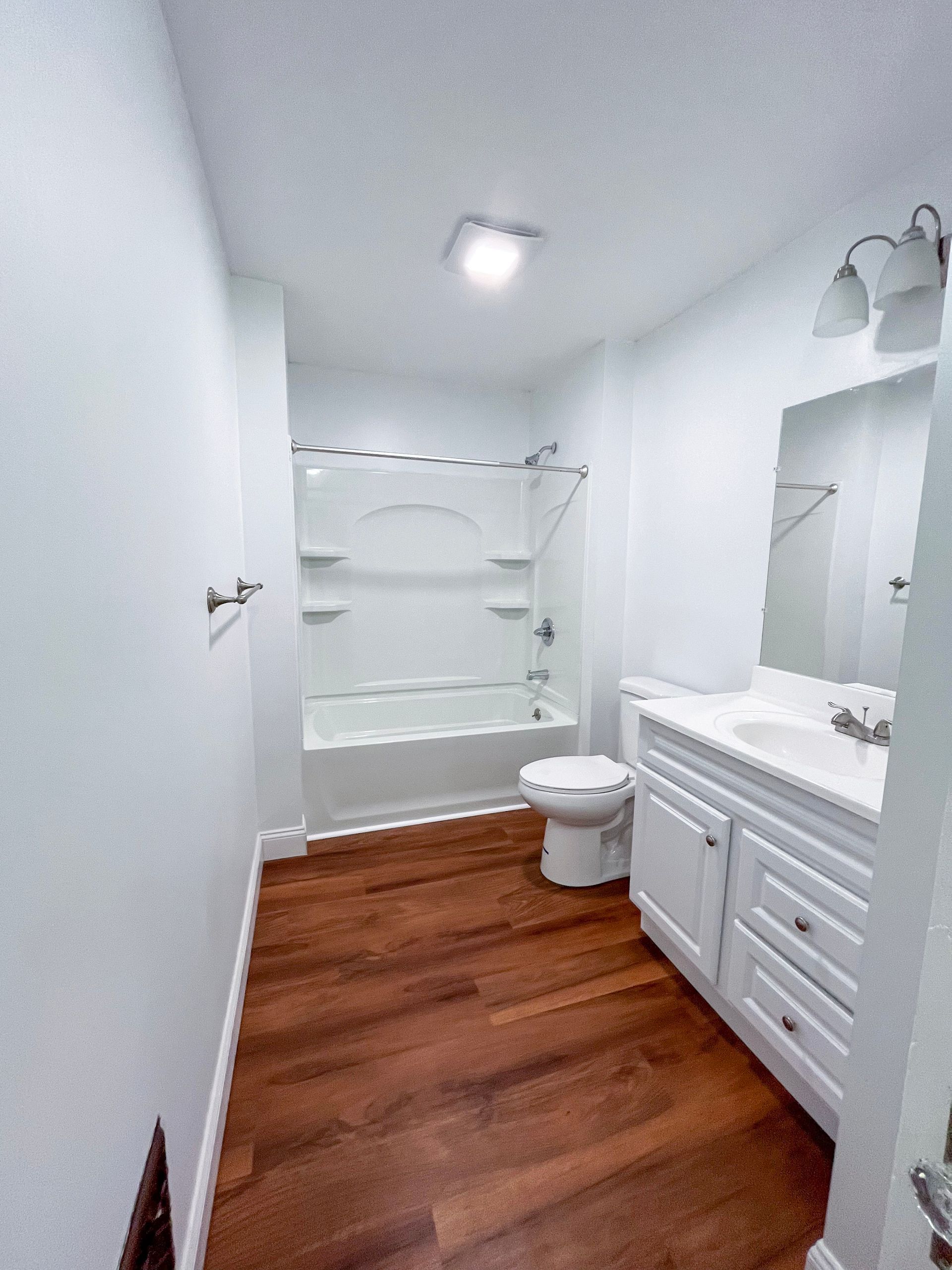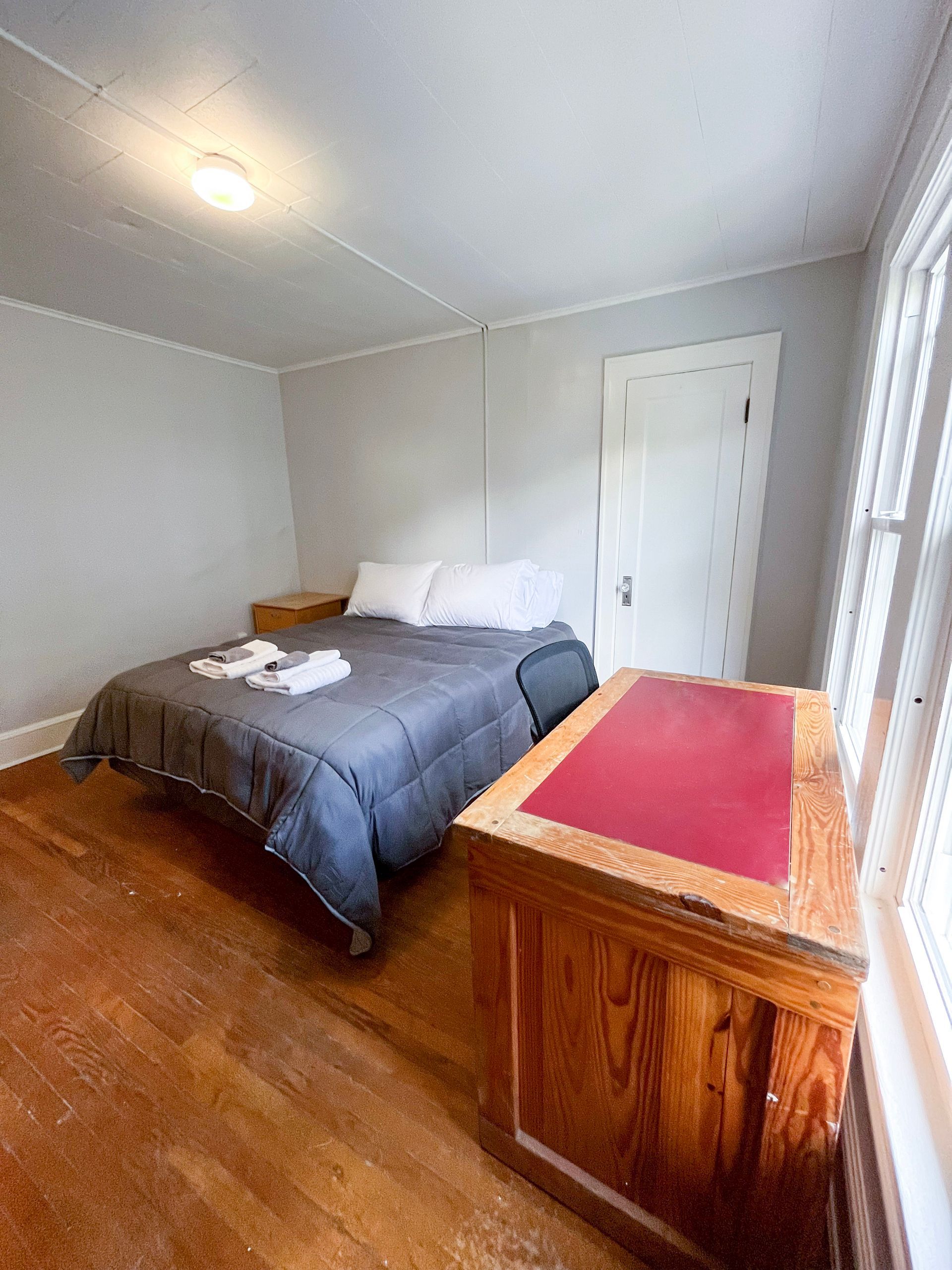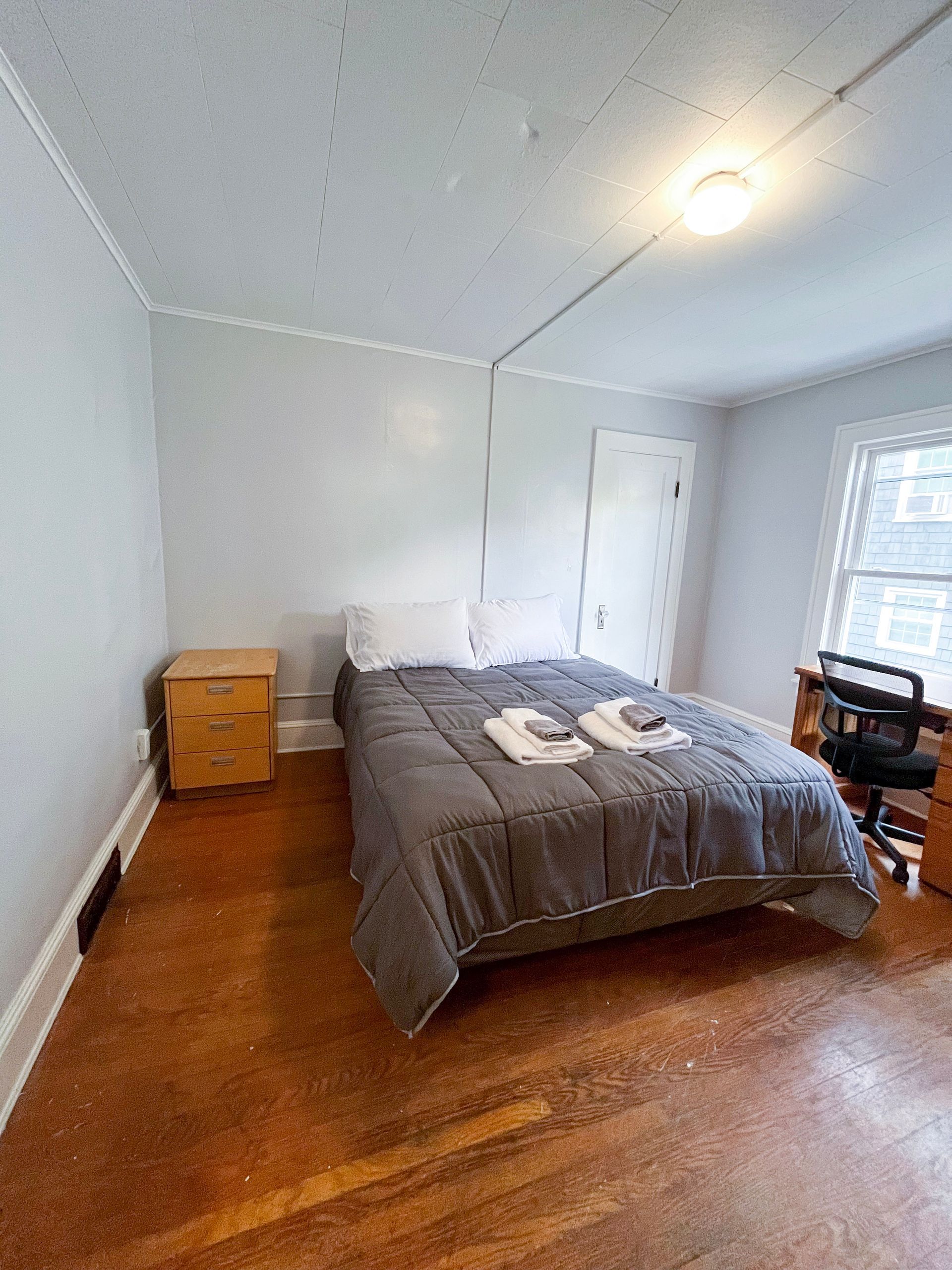 This newly renovated three bedroom apartment with wood and vinyl plank floors throughout features an eat-kitchen with a dishwasher, microwave and table with chairs. The living room features a couch, coffee and end tables, entertainment center, and a 40"-50" flat screen smart TV. There is a full bathroom with a combination tub and shower. The spacious bedrooms all have newer furniture including a 32"-50" smart TV, dresser, desk, office chair, nightstand, and full size bed (mattress/box spring/frame).