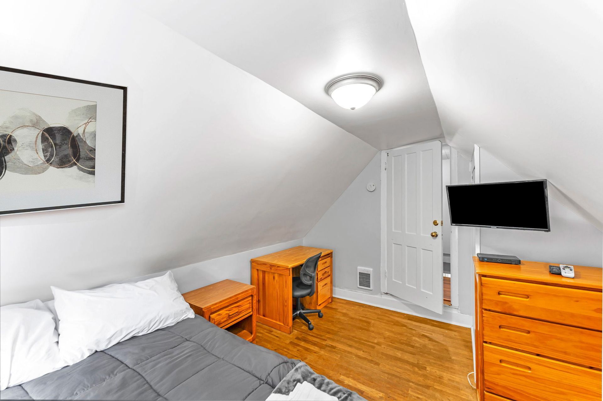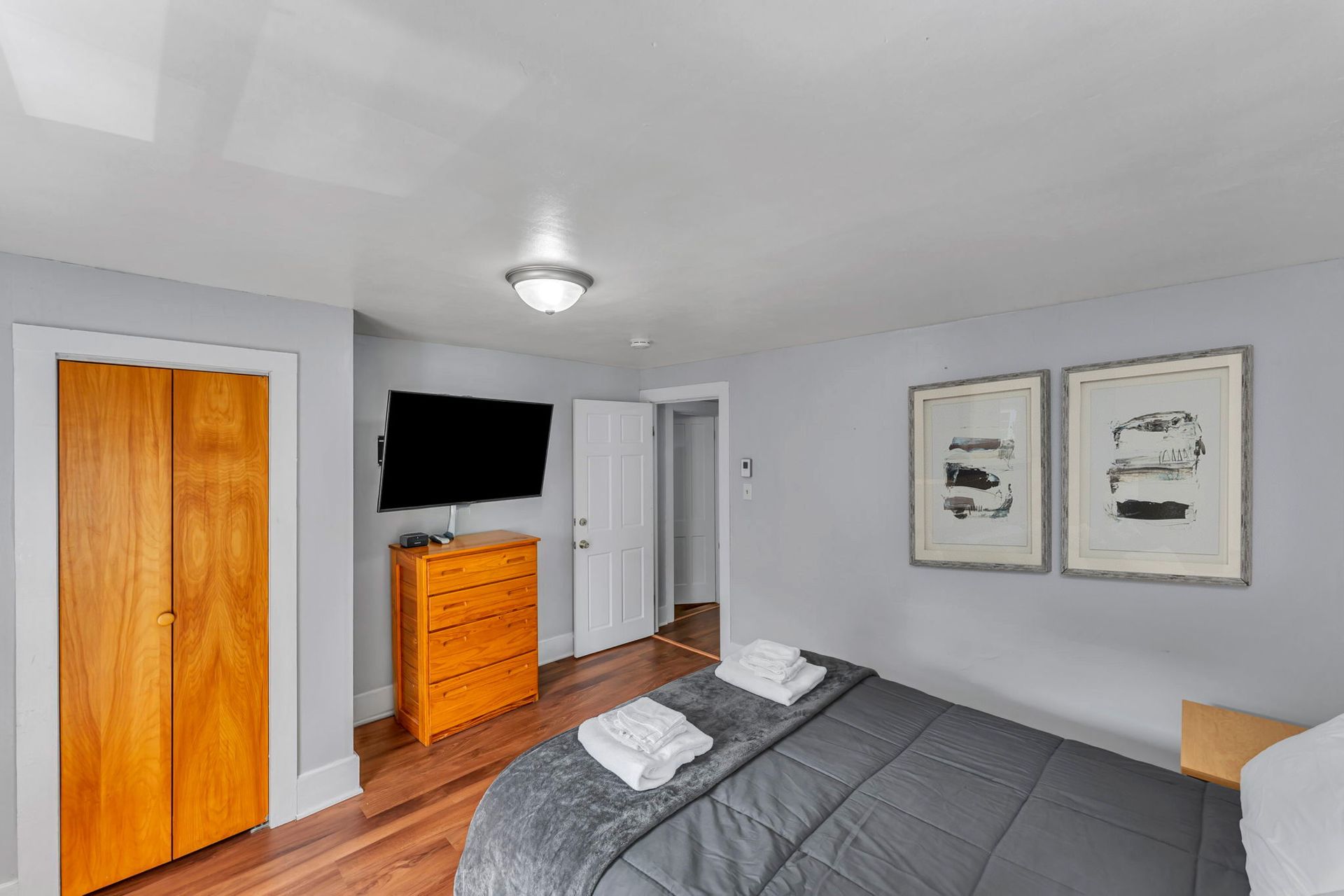 The first floor offers a spacious kitchen with an abundance of cabinets, dishwasher, microwave and washer/dryer. There is a separate dining room with a table and chairs. The living room has two couches, coffee and end tables, entertainment center, and a 40"-50" flat screen TV! There is a bedroom and full bathroom off the kitchen with a walk in shower. The second floor has a bathroom with a combination tub and shower and three additional bedrooms. All bedrooms are nicely sized and have newer furniture including a 32"-50" TV, dresser, desk, office chair, nightstand, and a queen size bed (mattress/box spring/frame).