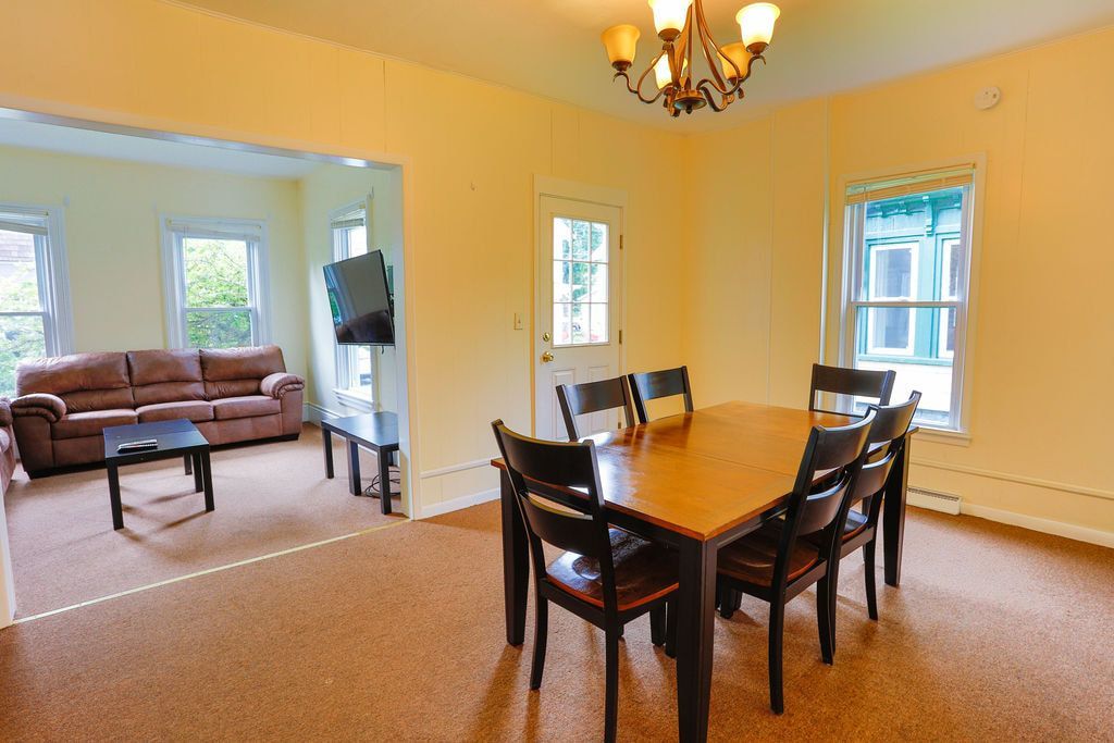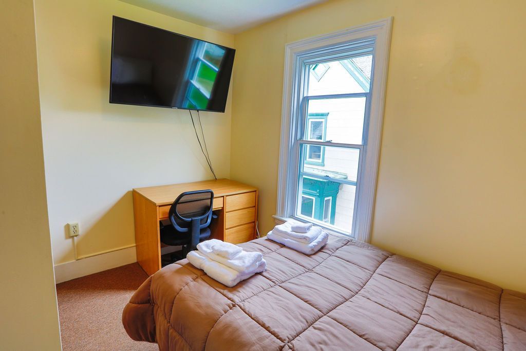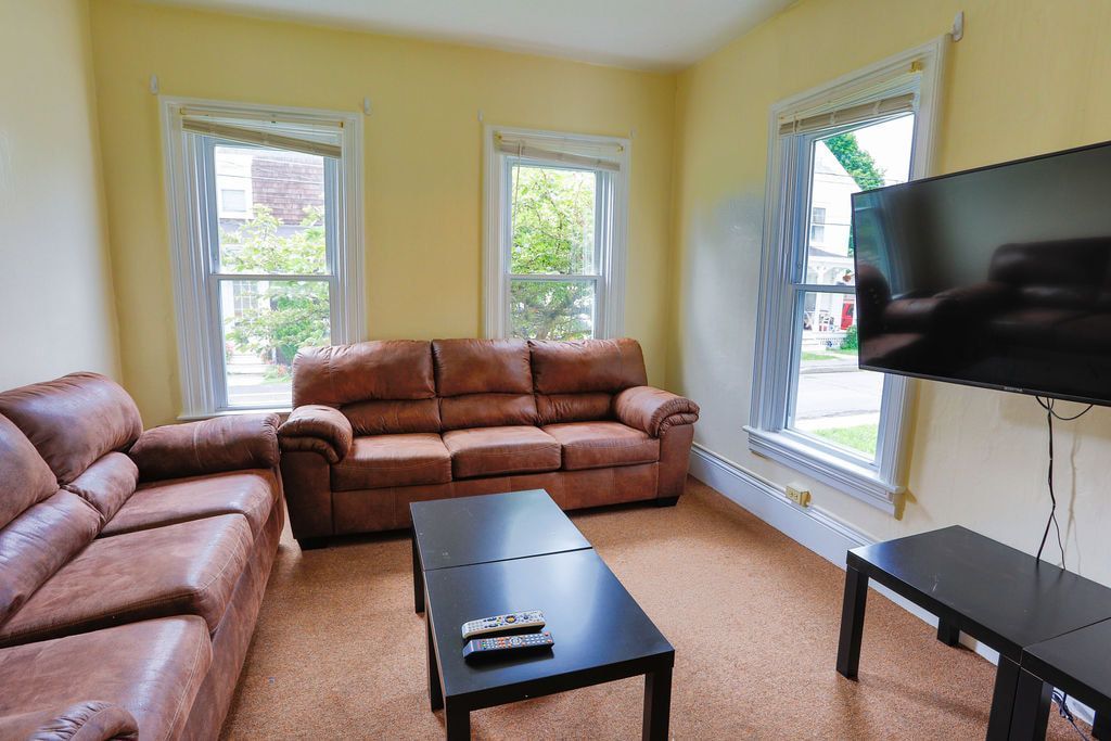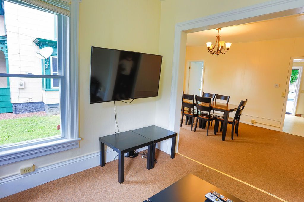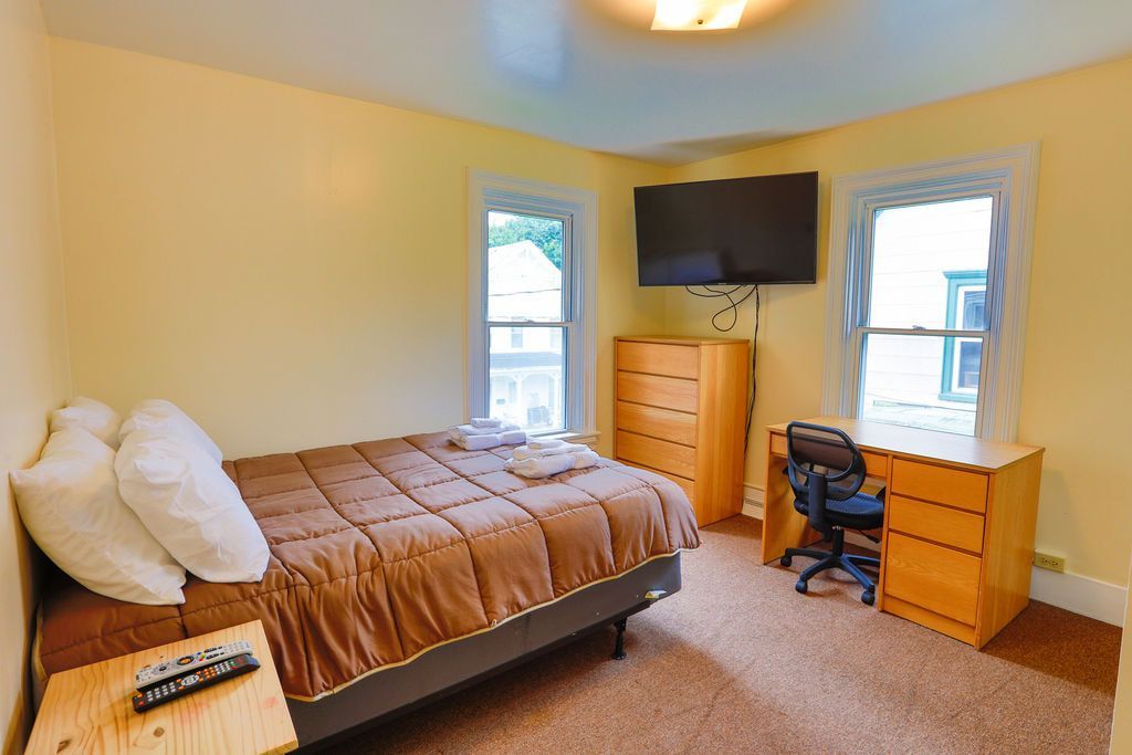 This three bedroom, two story apartment features a kitchen with a microwave, dishwasher and new vinyl plank flooring downstairs. There is a separate large dining room with a table and chairs. The living room offers two couches, coffee and end tables, entertainment center, and a 40"-50" flat screen TV! A washer and dryer are located off of the dining room with a half bath. The second floor features a full bathroom with a combination tub and shower. The three upstairs bedrooms feature newer furniture including a 32"-50" TV, dresser, desk, office chair, nightstand, and queen size beds (mattress/box spring/frame).