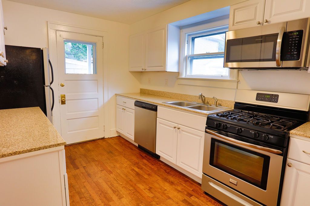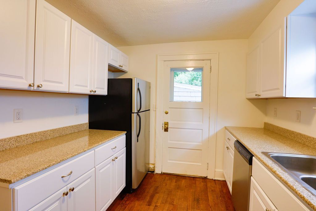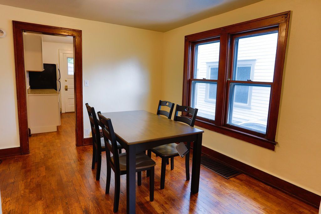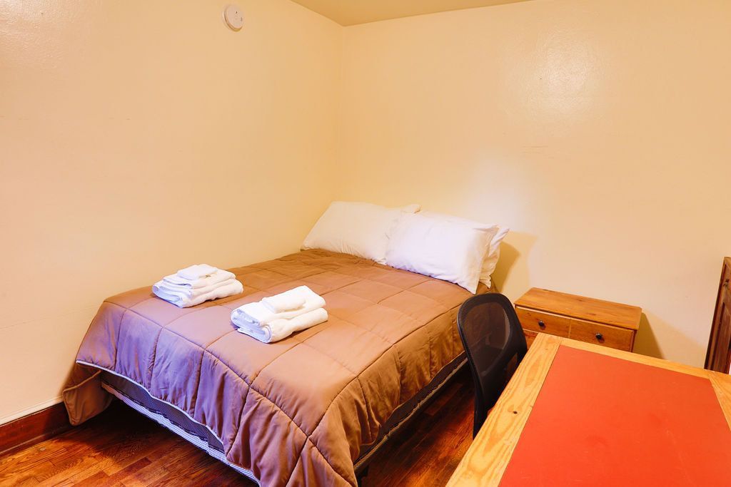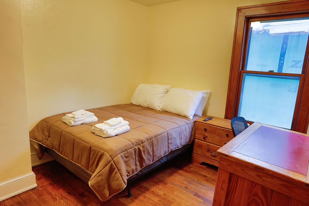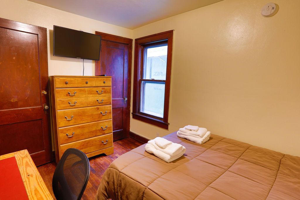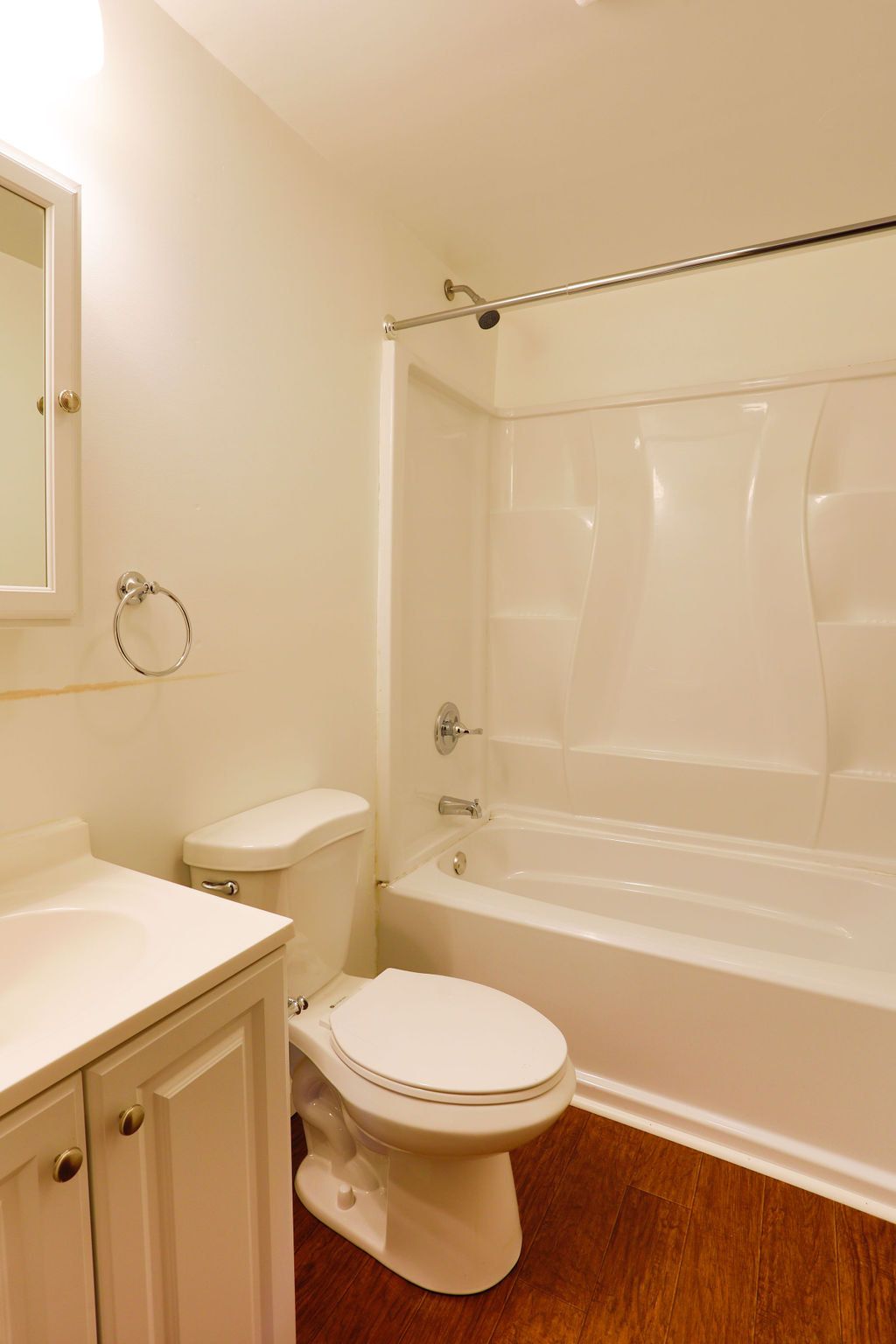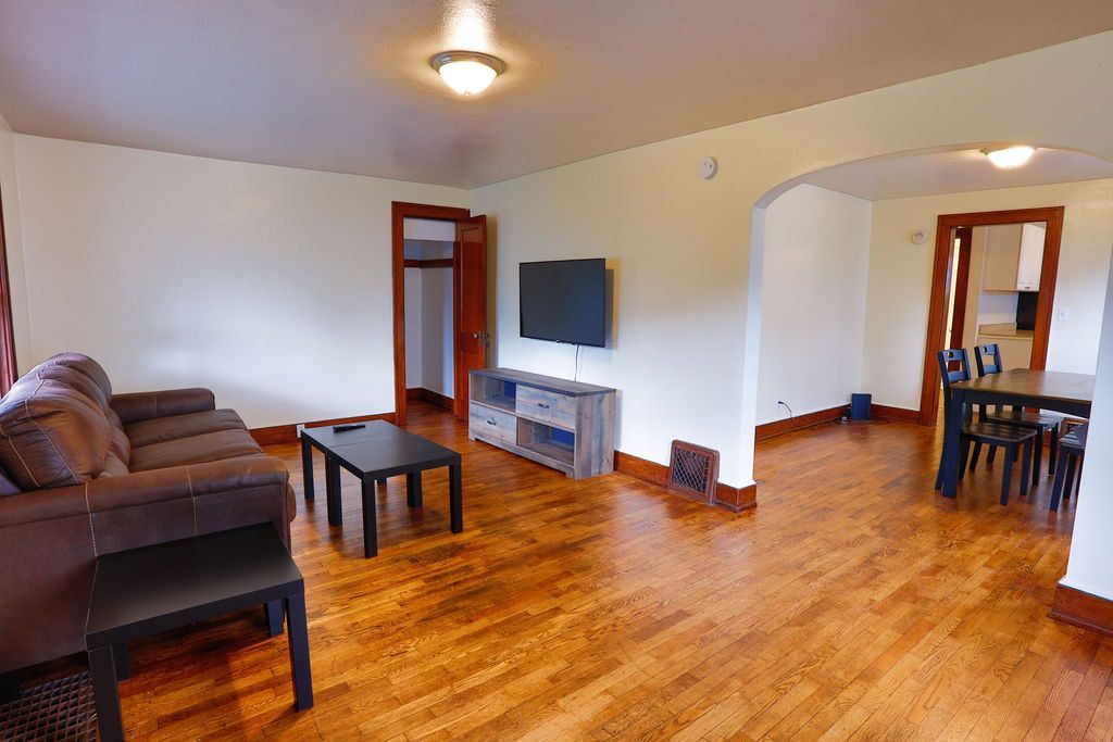 This first floor two bedroom apartment features a kitchen with a microwave and dishwasher. The separate dining room has a table with chairs. The living room offers two couches, coffee and end table, entertainment center, and a 50" flat screen TV. There is a full bathroom with a combination tub and shower. Both bedrooms have newer furniture including a 32"-50" TV, dresser, desk, office chair, nightstand, and full size bed (mattress/box spring/frame).