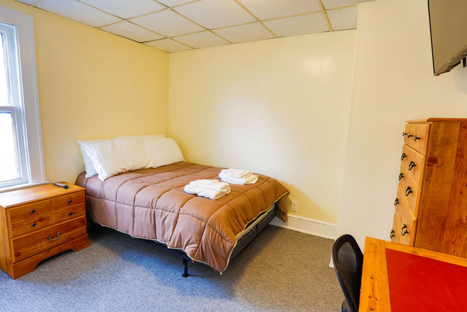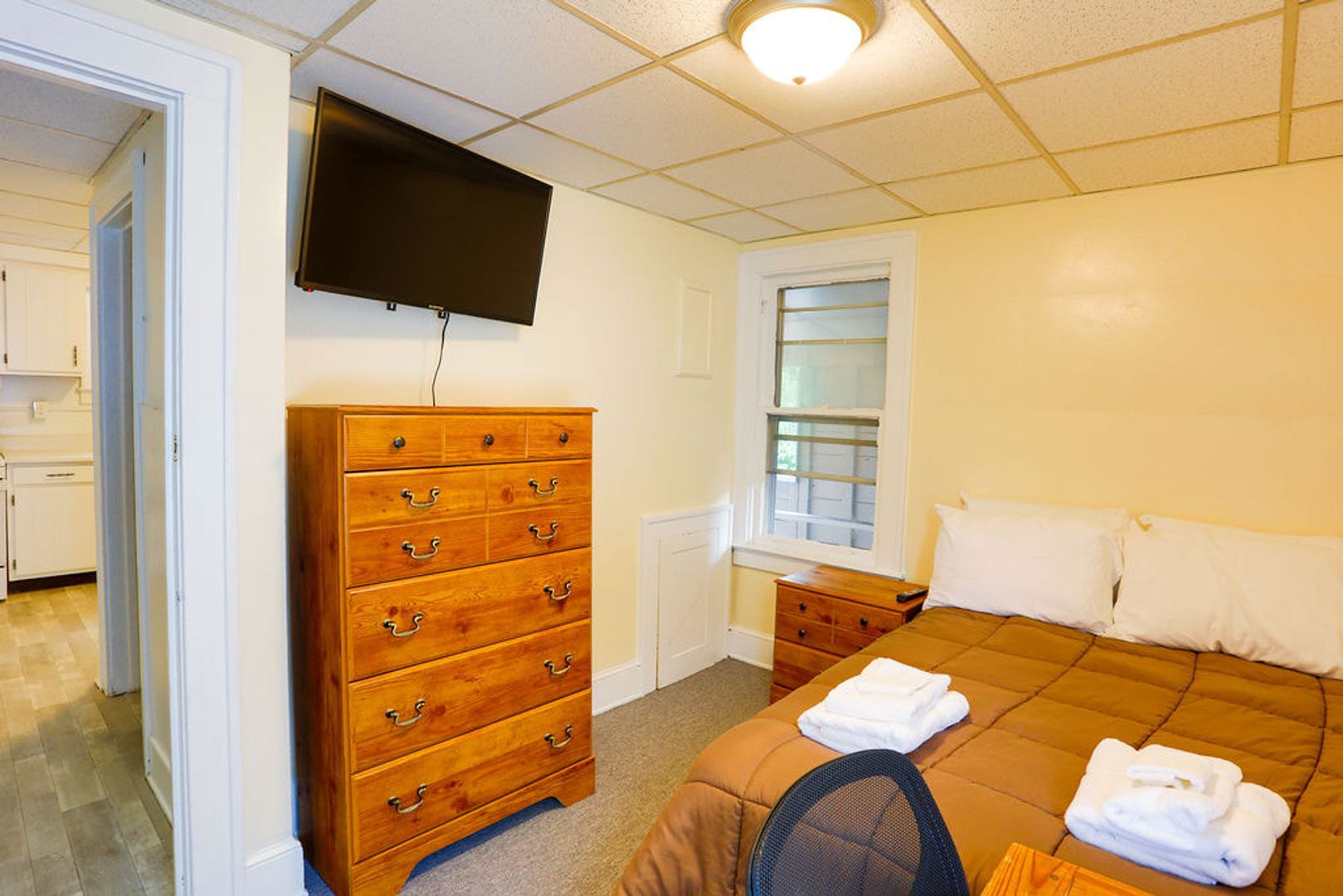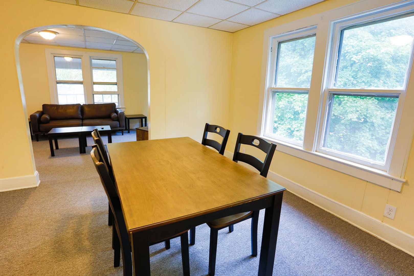Welcome to this charming second-floor two-bedroom apartment, offering a comfortable and convenient living space in a prime location. The kitchen is equipped with a microwave and dishwasher for your culinary needs, while the separate dining room provides a cozy setting for meals with a table and chairs. In the spacious living room, you'll find two comfortable couches, a coffee and end table, an entertainment center, and a 50" flat-screen TV, creating the perfect space for relaxation and entertainment. The full bathroom includes a combination tub and shower for added convenience. Both bedrooms are furnished with newer pieces, including a TV, ensuring comfort and entertainment for all residents. Outside, you can enjoy the front porch, back porches, and a balcony, providing additional space for relaxation and enjoyment of the surroundings. Conveniently located on the corner of East and Center Street, the apartment is just a short walk to downtown Main Street, restaurants, and stores, with Center Street Deli just steps away. Close proximity to the college campus and bus routes adds to the convenience of this prime location, making it an ideal choice for comfortable and accessible living.