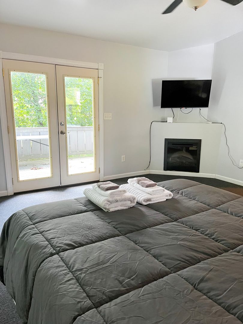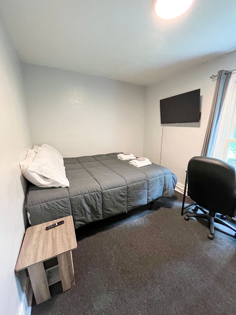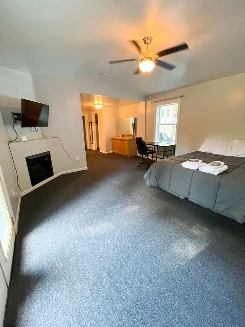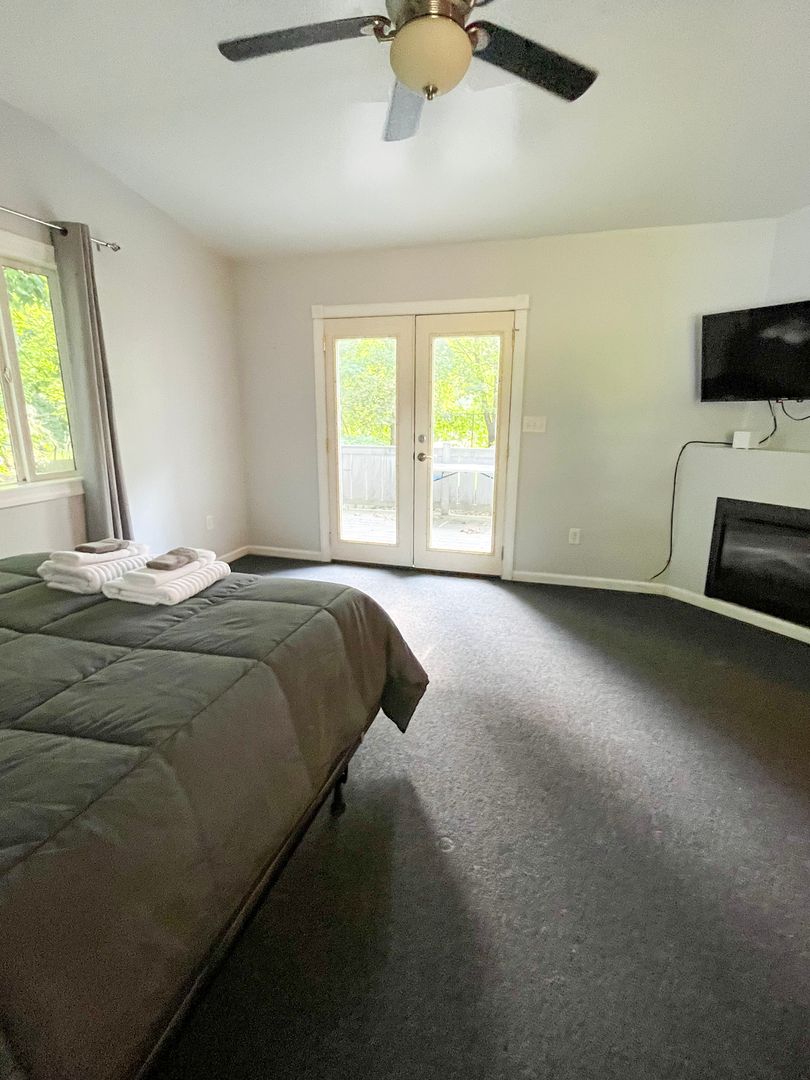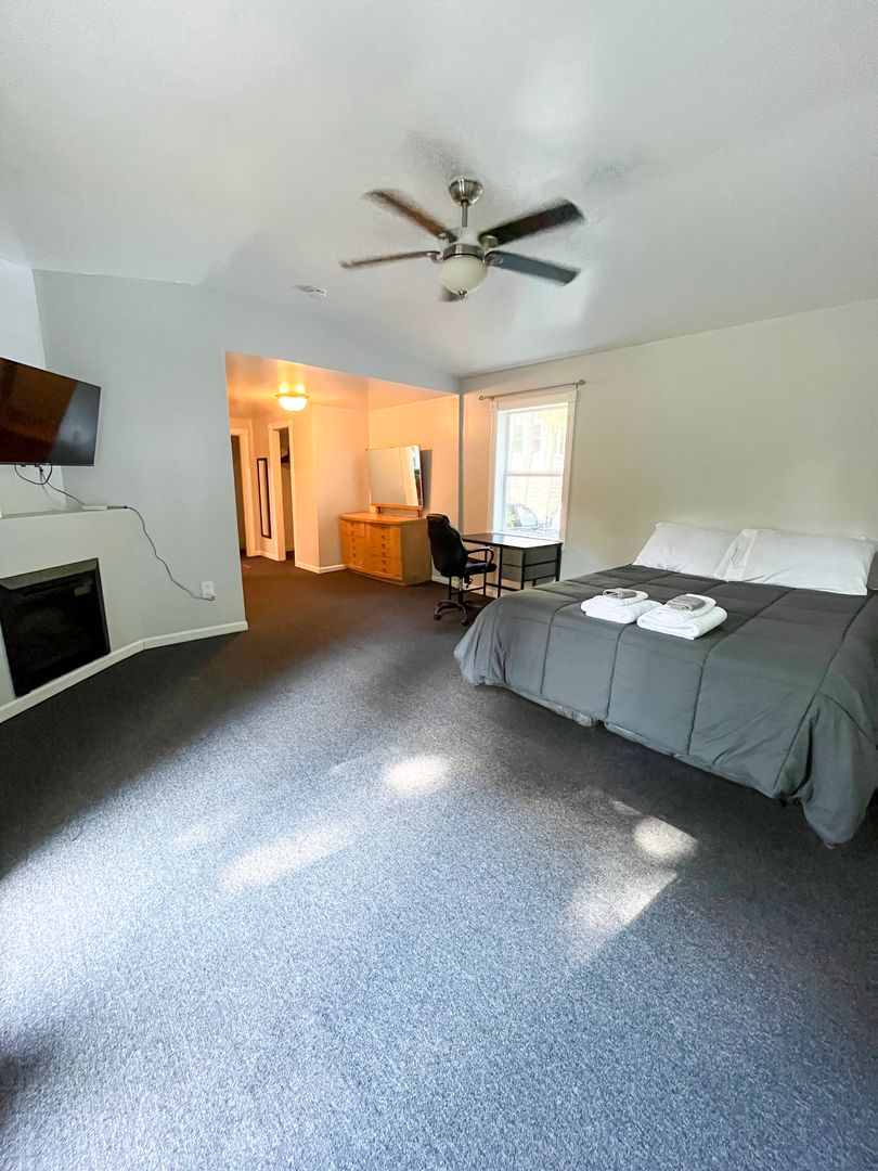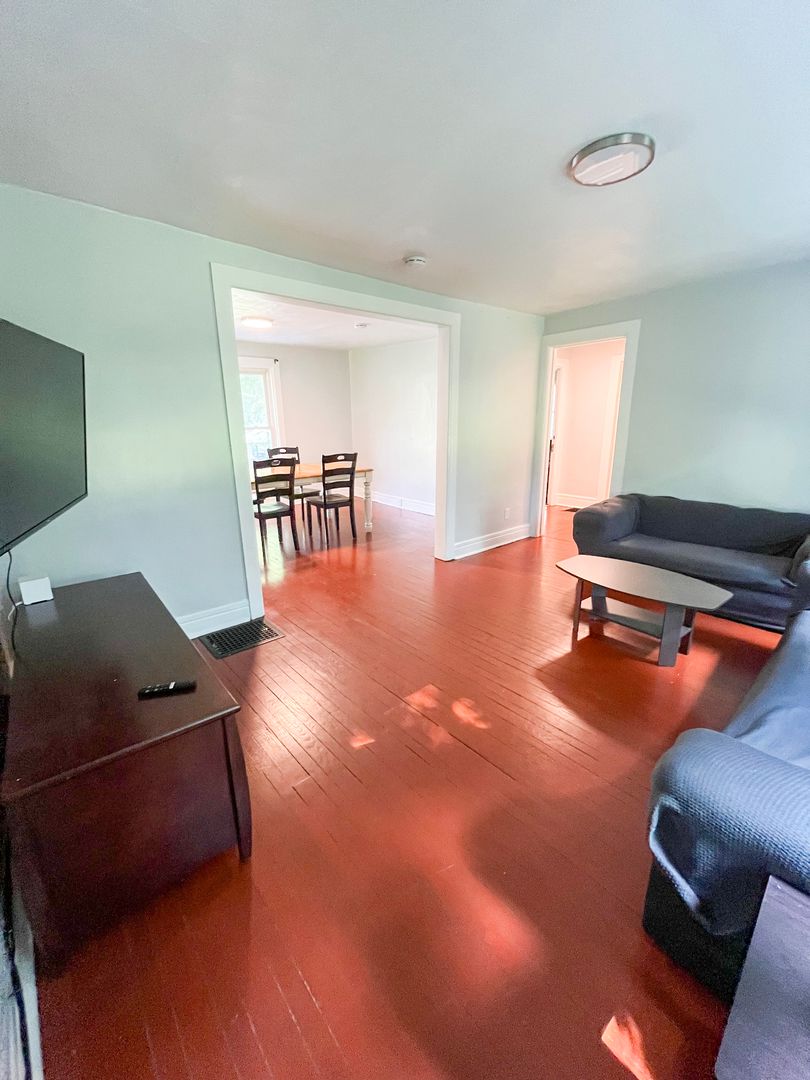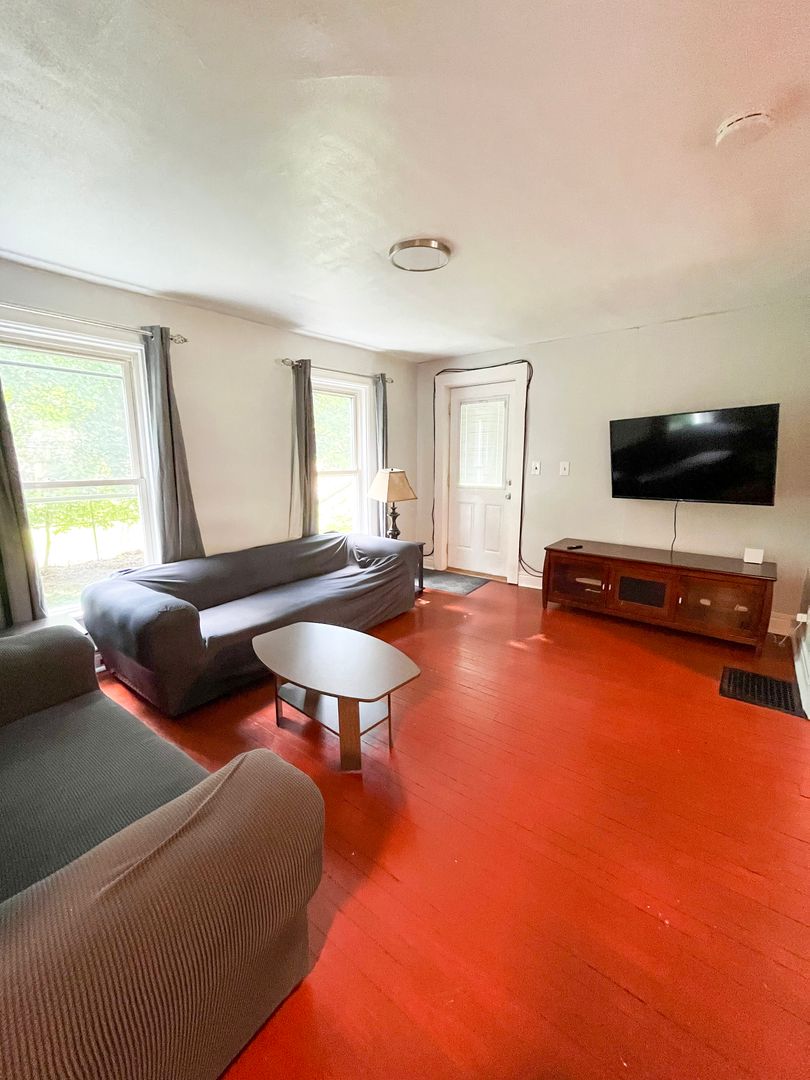 The apartment boasts a full bathroom with a combination tub and shower for added convenience. Both bedrooms are tastefully furnished with newer pieces, including a smart TV in each, offering entertainment and relaxation in the comfort of your own space. Outside, enjoy the large front porch, providing a delightful spot for outdoor relaxation and enjoyment.