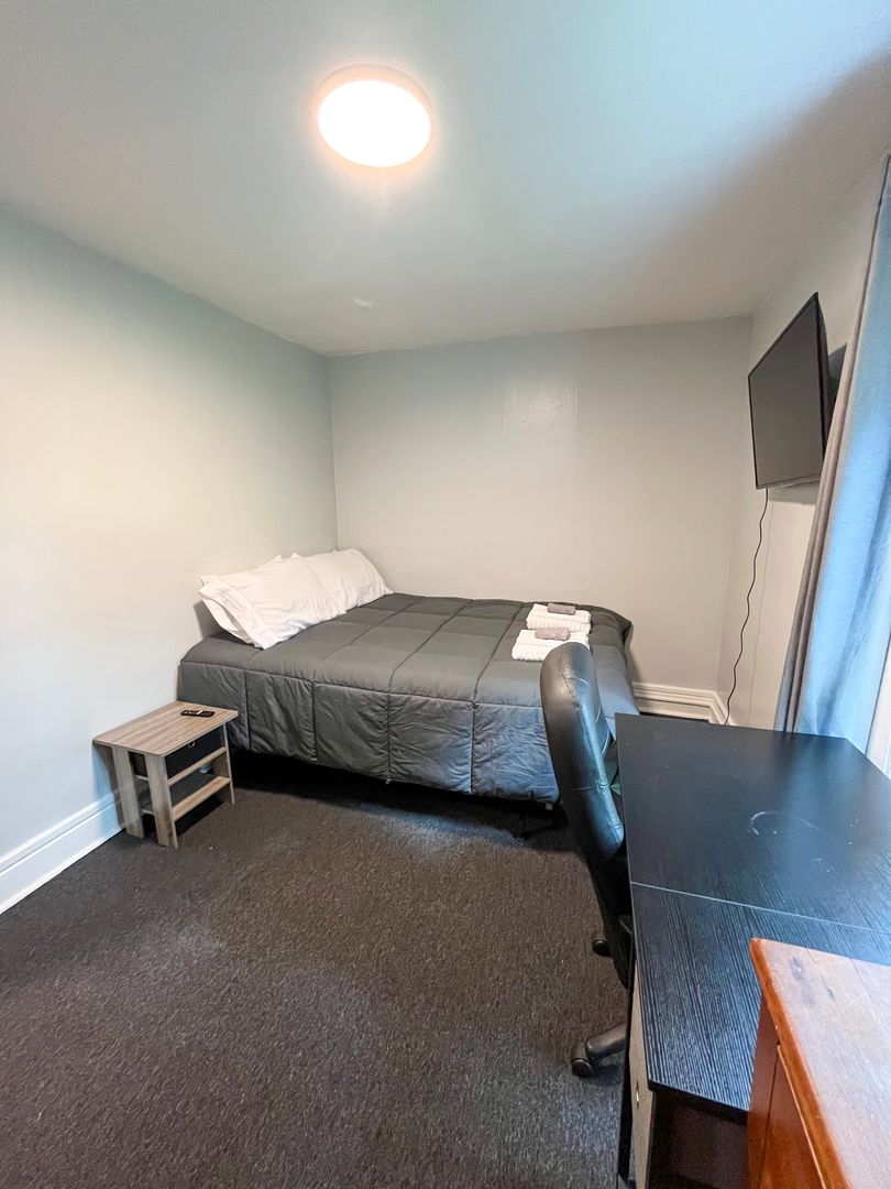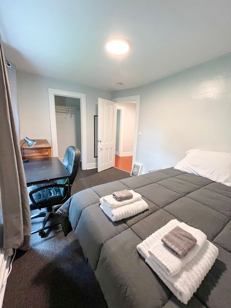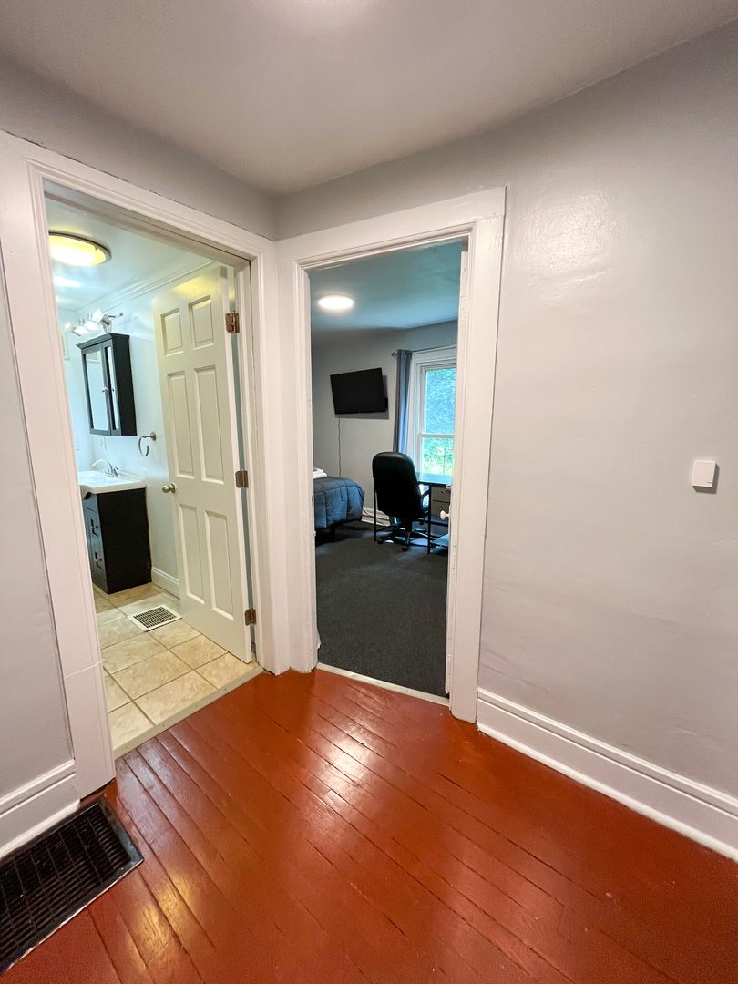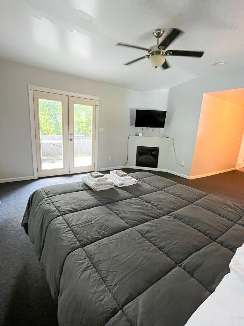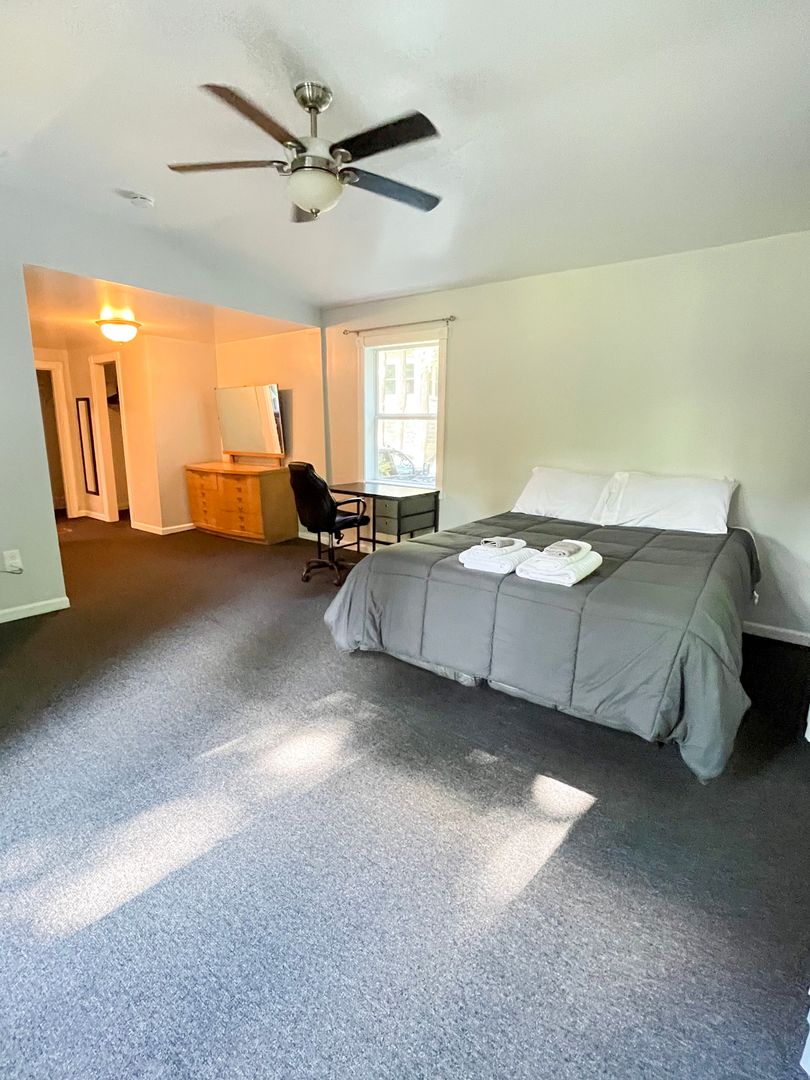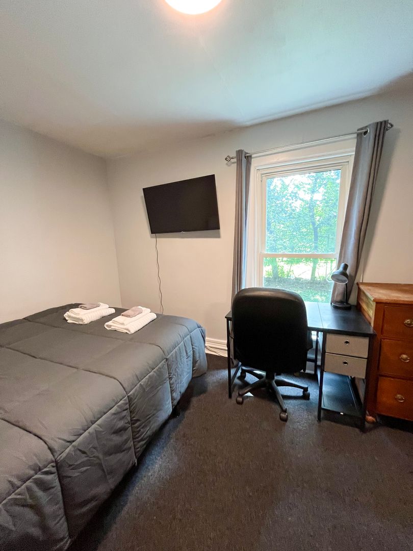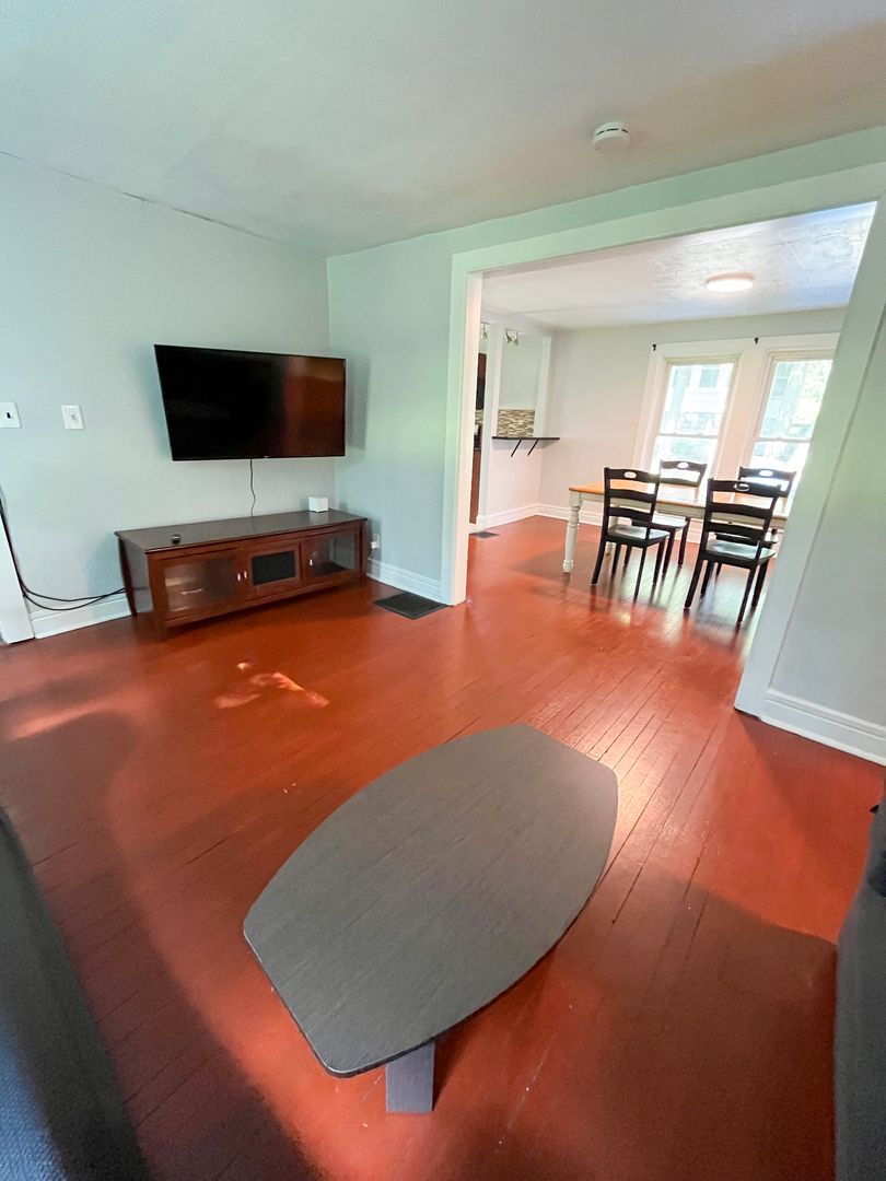 The apartment boasts a full bathroom with a combination tub and shower for added convenience. Both bedrooms are tastefully furnished with newer pieces, including a smart TV in each, offering entertainment and relaxation in the comfort of your own space. Outside, enjoy the large front porch, providing a delightful spot for outdoor relaxation and enjoyment.