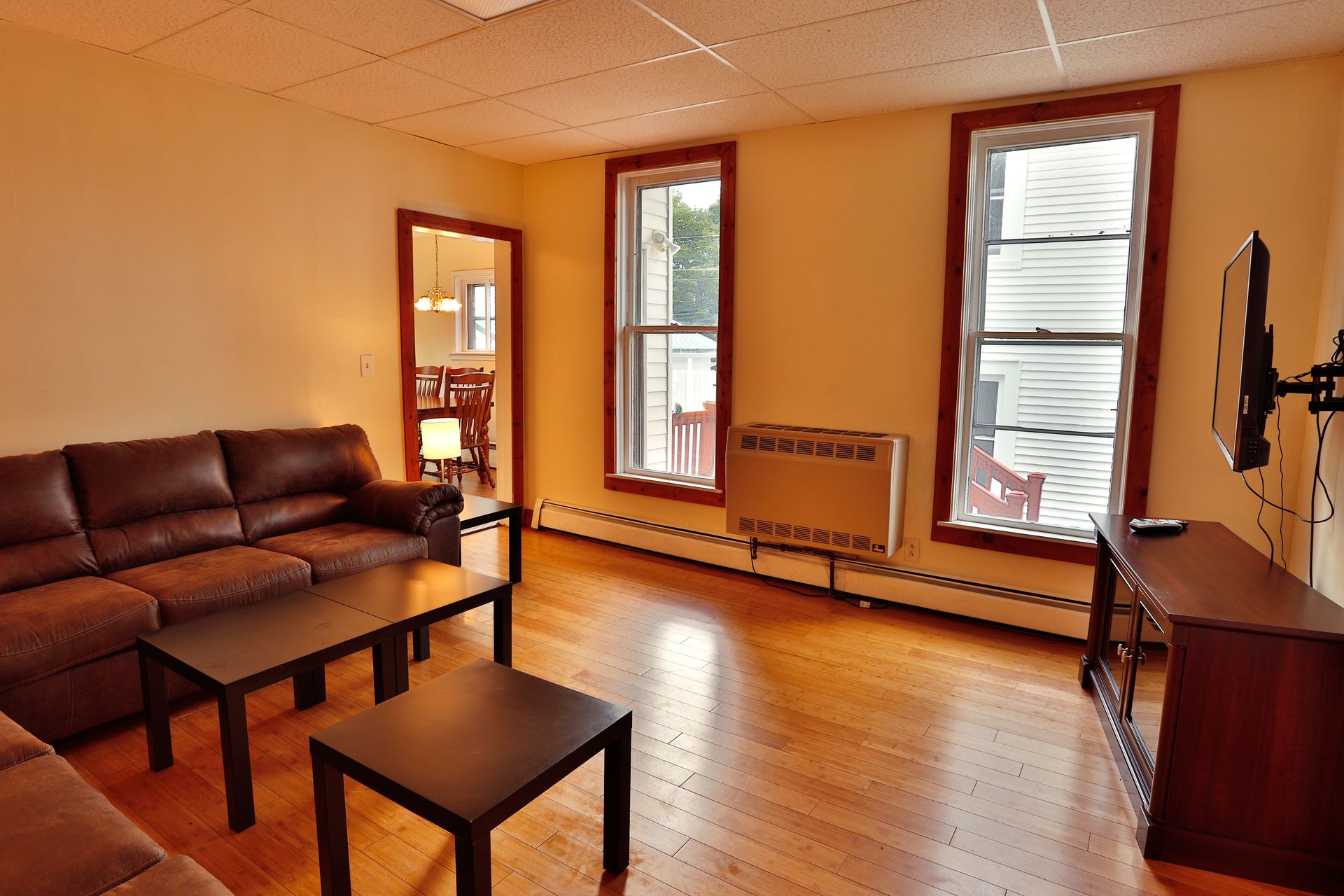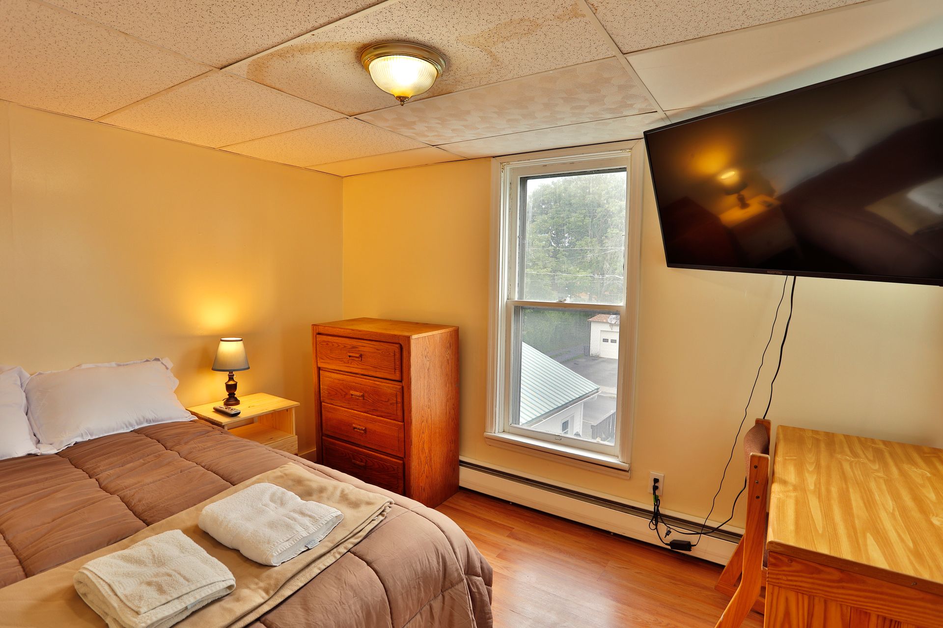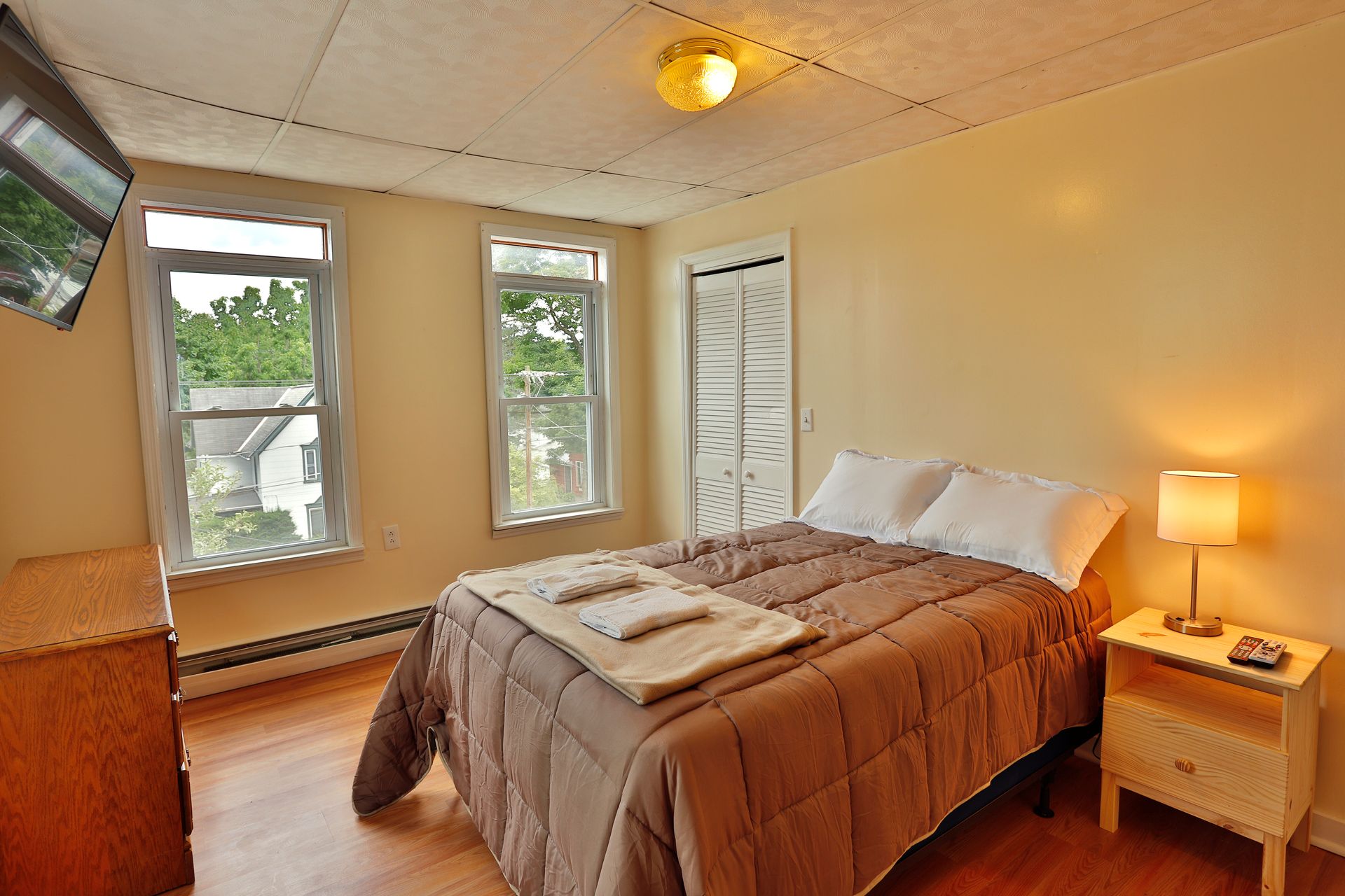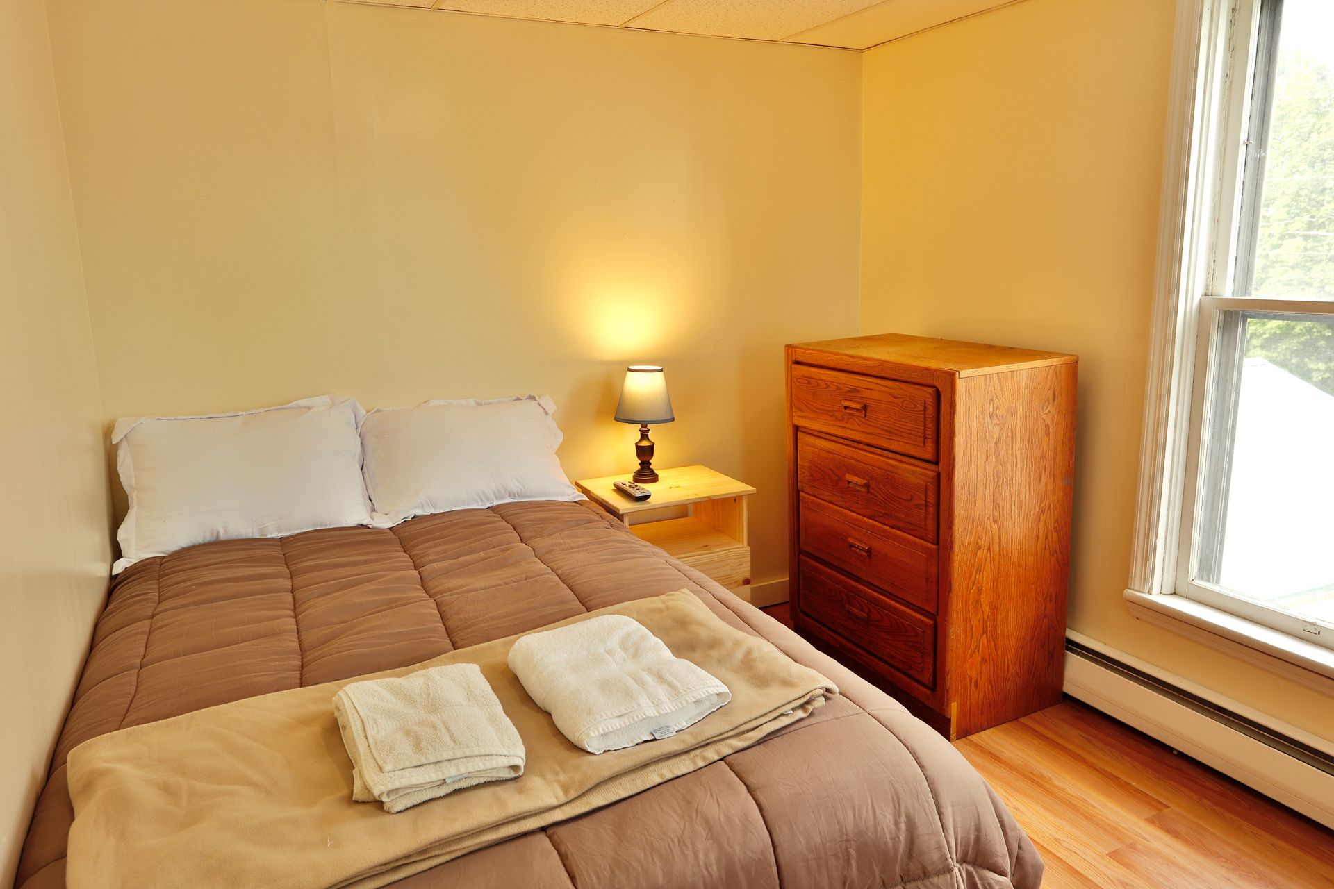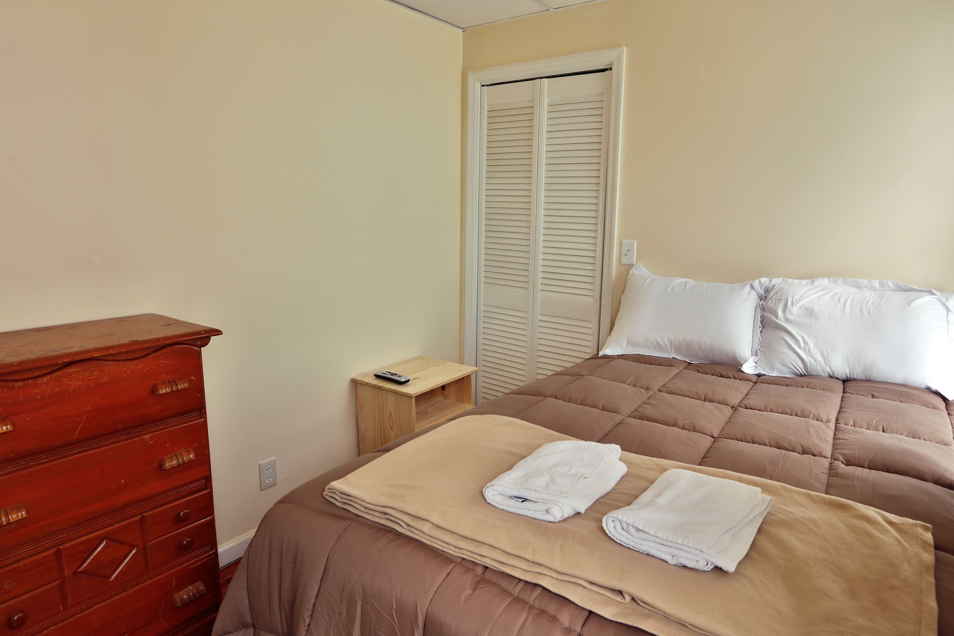 This first floor one bedroom apartment features a kitchen with a microwave. The dining area has a table with chairs. The spacious living room has a couch, coffee and end tables, entertainment center, and a 50" flat screen TV! The washer and dryer is in the living room closet. There is a full bathroom with a combination tub and shower. The nicely sized bedroom has newer furniture including a 32"-50" TV, dresser, desk, office chair, nightstand, and queen size bed (mattress/box spring/frame).