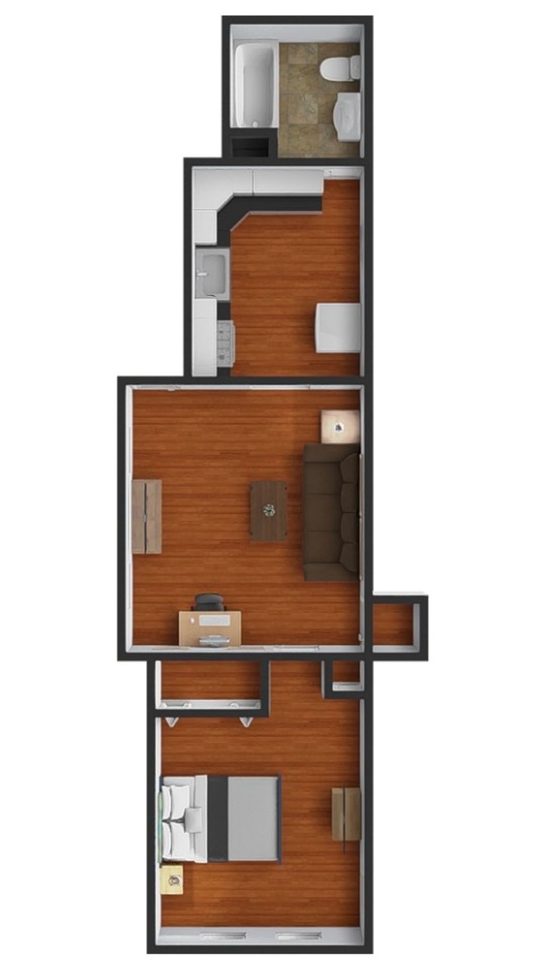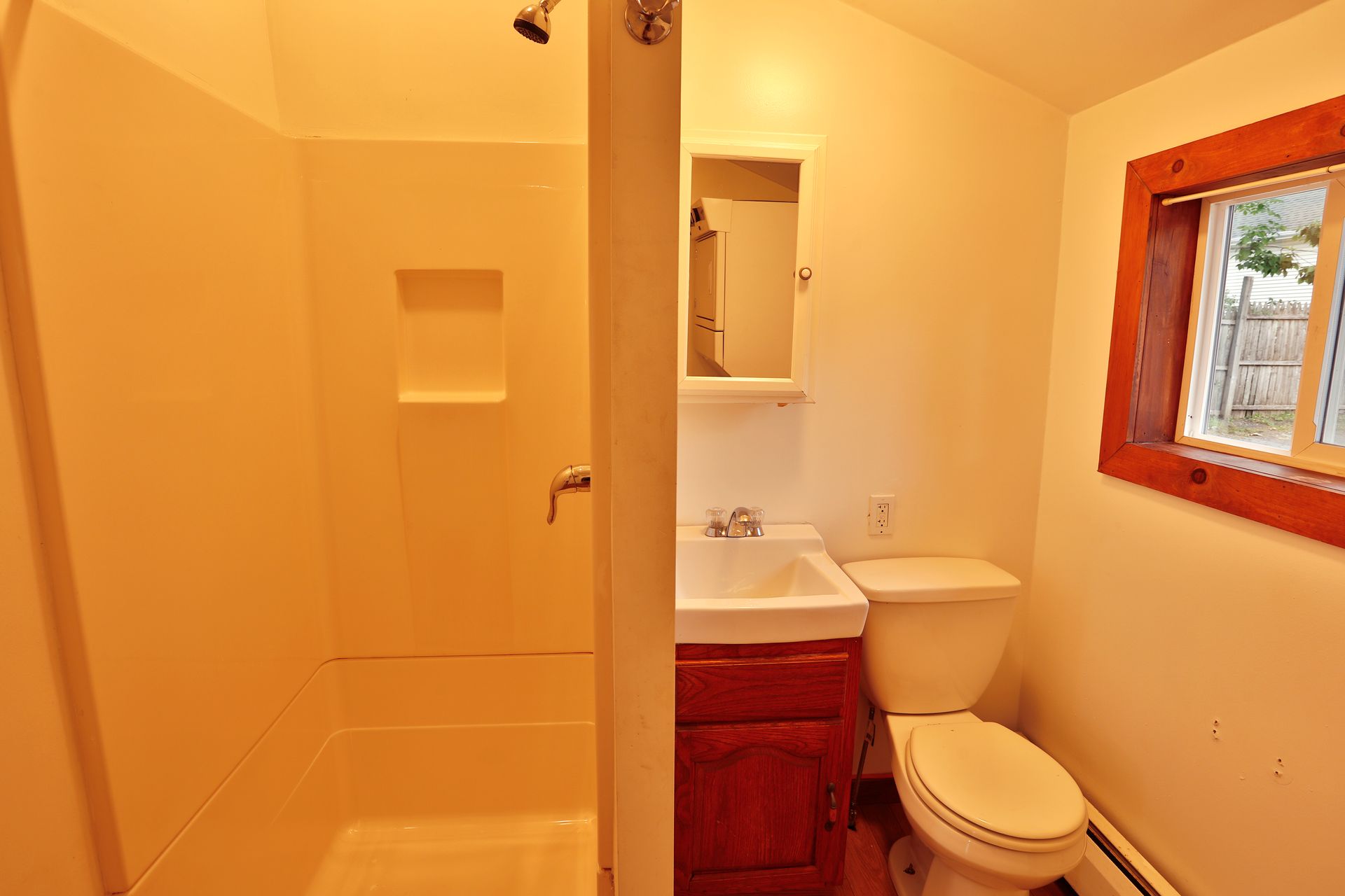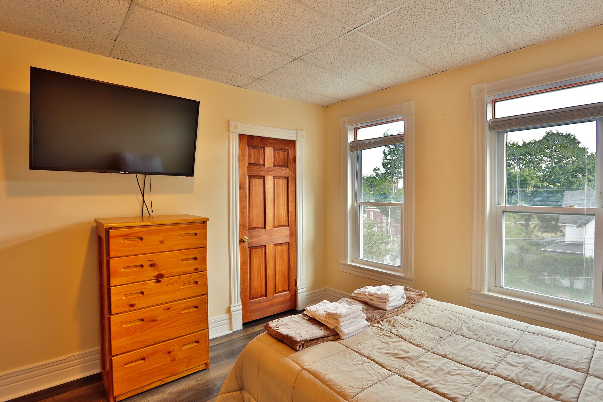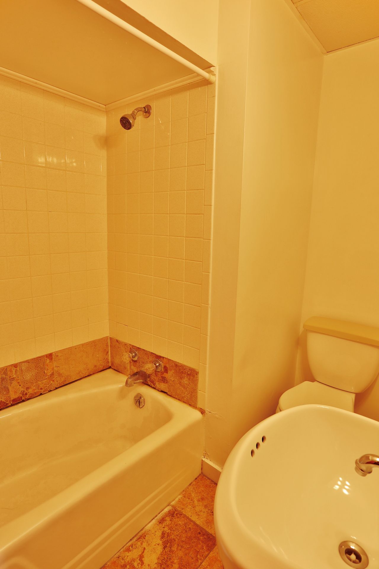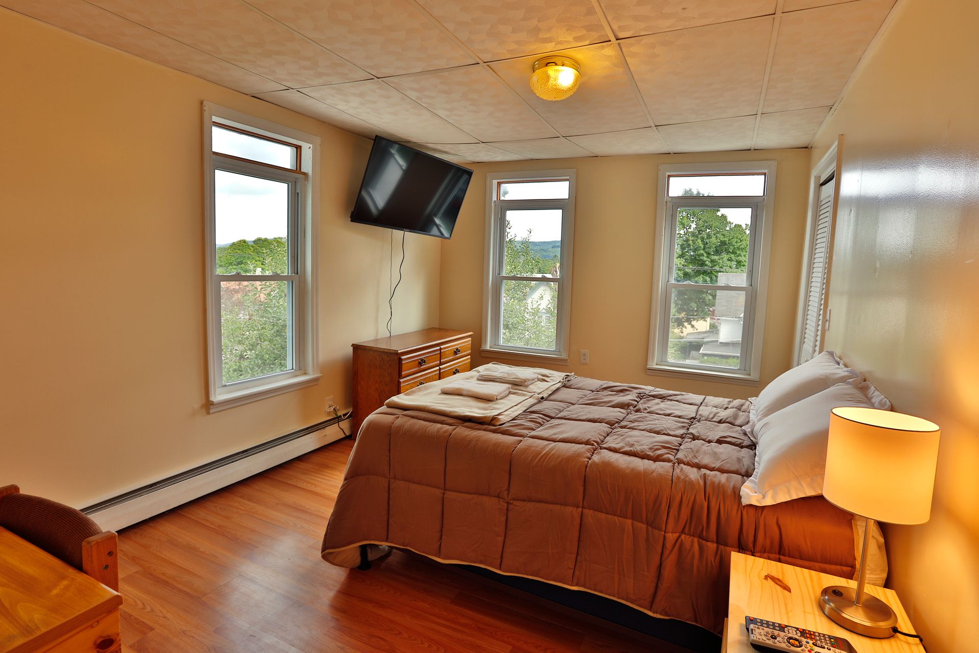 This first floor one bedroom apartment features a kitchen with a microwave. The dining area has a table with chairs. The spacious living room has a couch, coffee and end tables, entertainment center, and a 50" flat screen TV! The washer and dryer is in the living room closet. There is a full bathroom with a combination tub and shower. The nicely sized bedroom has newer furniture including a 32"-50" TV, dresser, desk, office chair, nightstand, and queen size bed (mattress/box spring/frame).