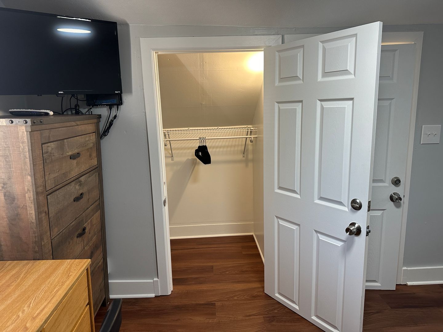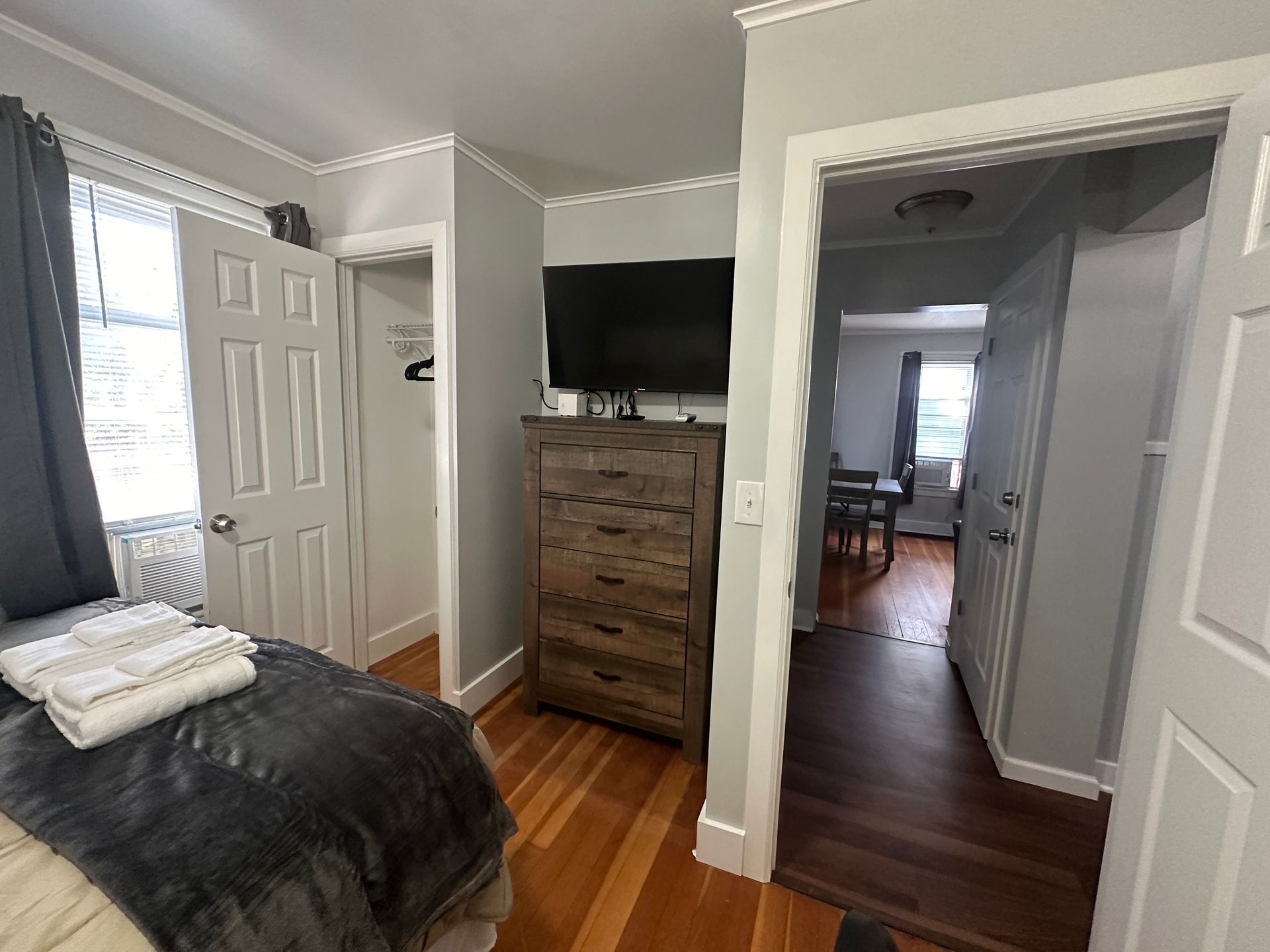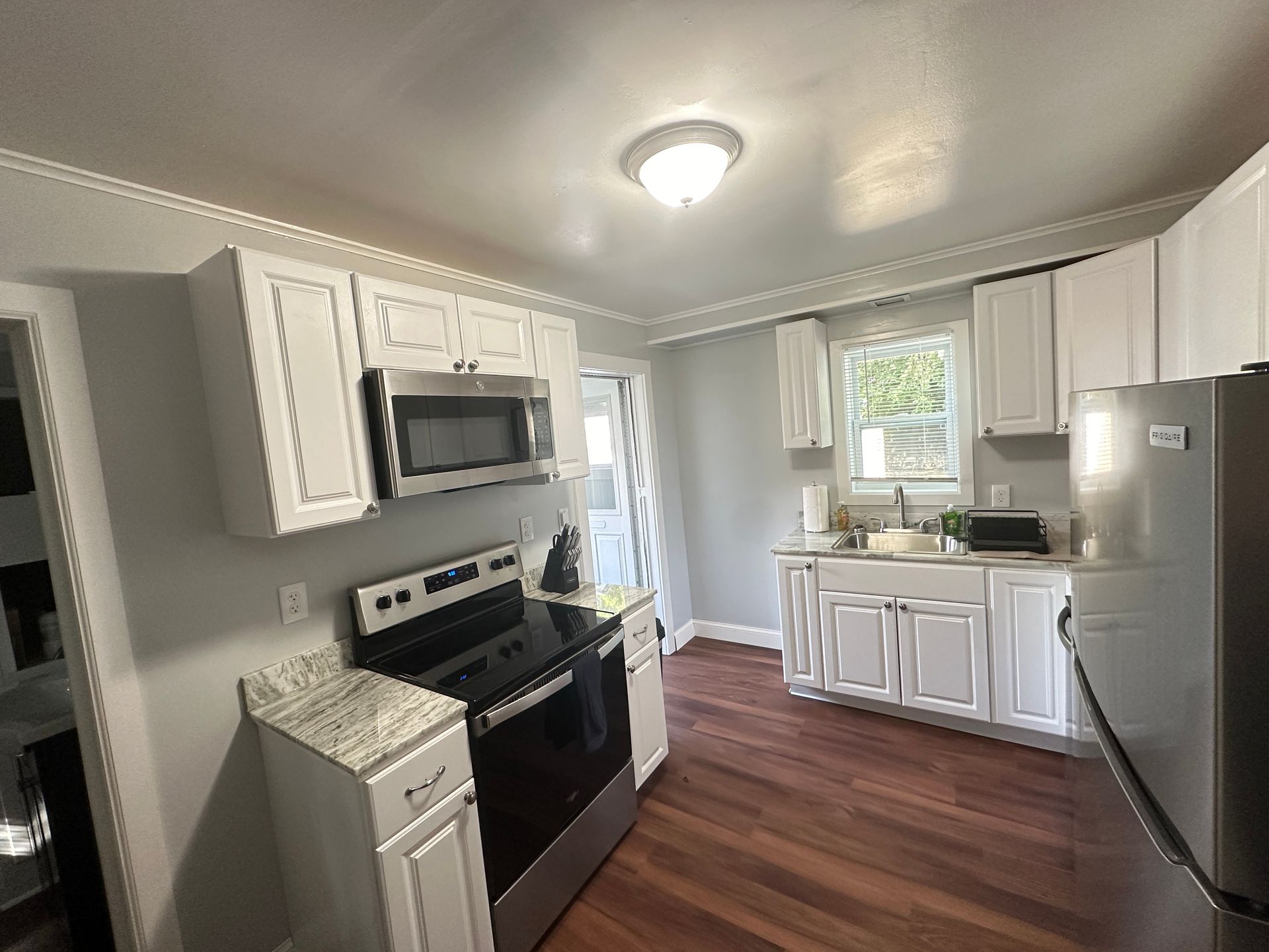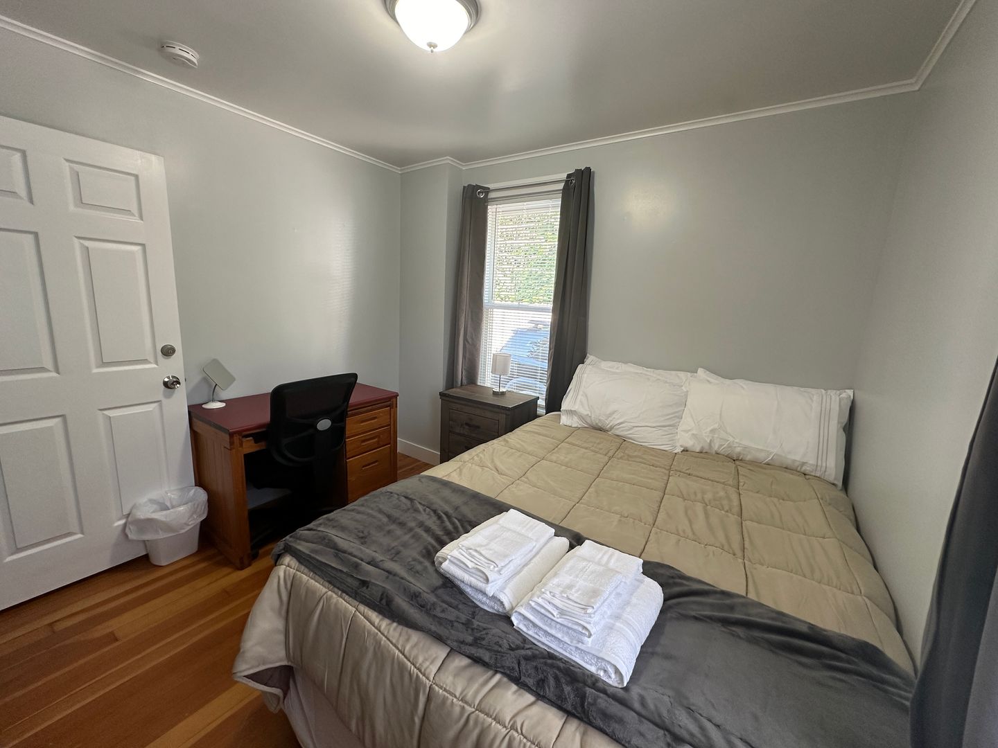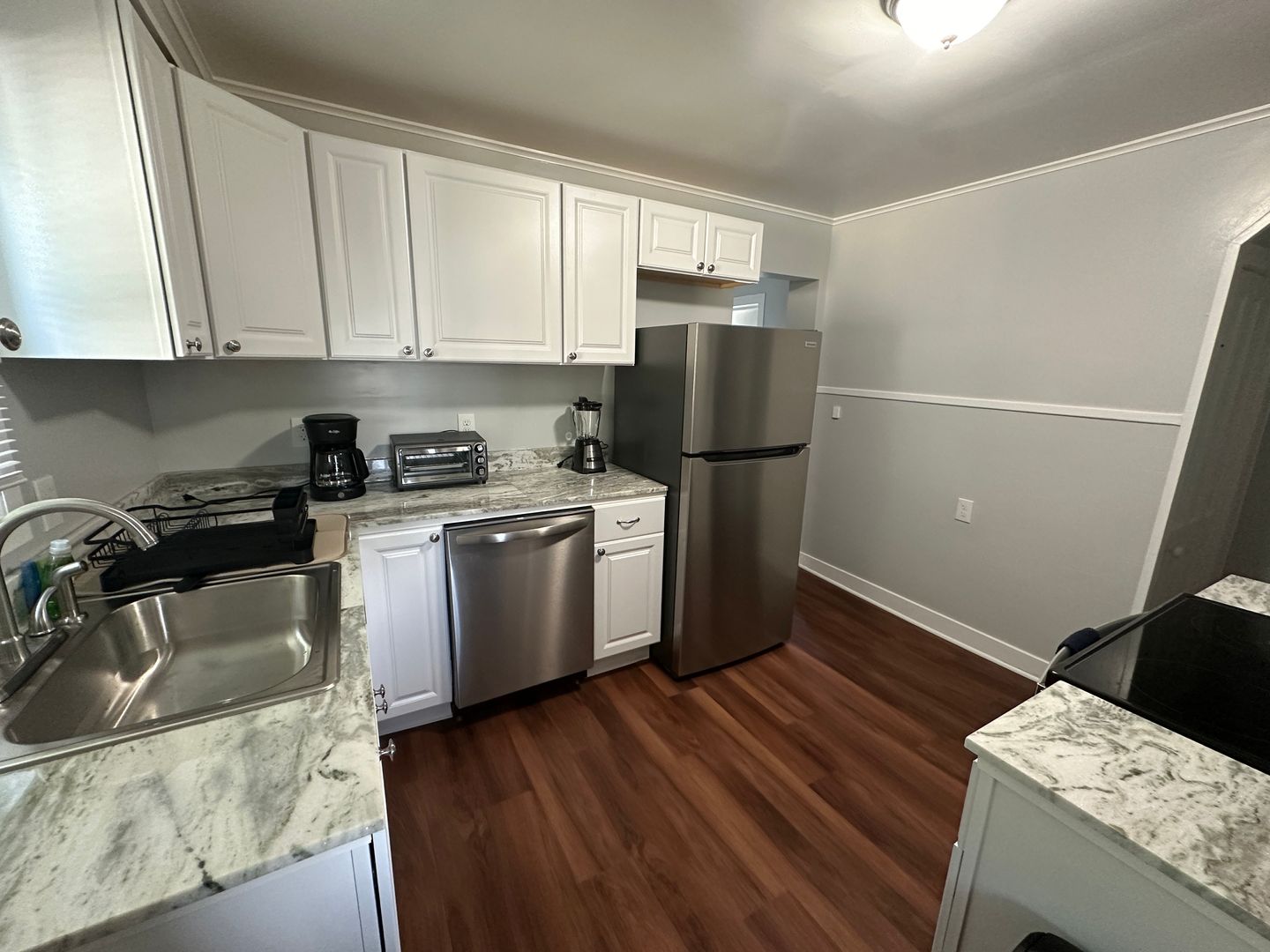 Welcome to this meticulously maintained, fully furnished single-family home, ideal for student living. Boasting two bedrooms with a total of three beds, including a smaller ground floor bedroom and a spacious loft featuring two sets of bedroom furniture. Amenities such as on-site laundry ensure convenience, while the front porch and yard provide ample space for outdoor activities. With plenty of off-street parking available, this residence is strategically situated close to campus and bus routes, offering easy access to downtown Main Street's vibrant array of restaurants and stores. The first floor comprises a well-equipped kitchen with abundant cabinets and a microwave, complemented by a living room featuring a couch, coffee and end tables, an entertainment center, and a 50" flat-screen TV. Additionally, a nicely sized full bathroom with a stand-up shower is conveniently located on the first floor, alongside one of the bedrooms. Upstairs, the loft houses two beds, both of which are nicely sized and furnished with newer furniture, including a 32"-50" TV, ensuring a comfortable and enjoyable living experience for students.