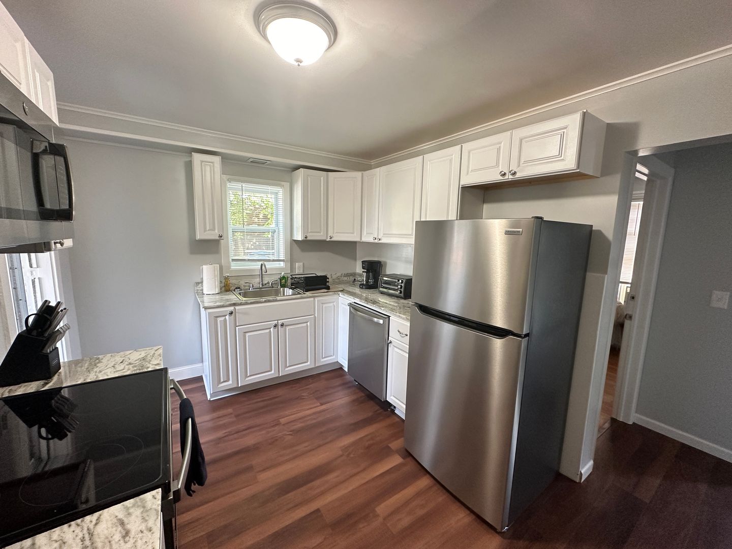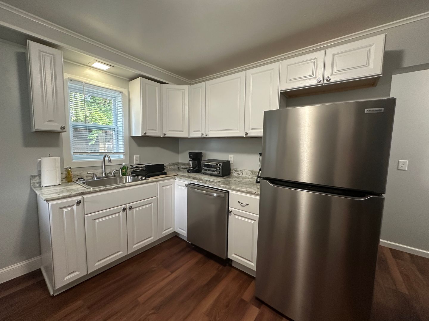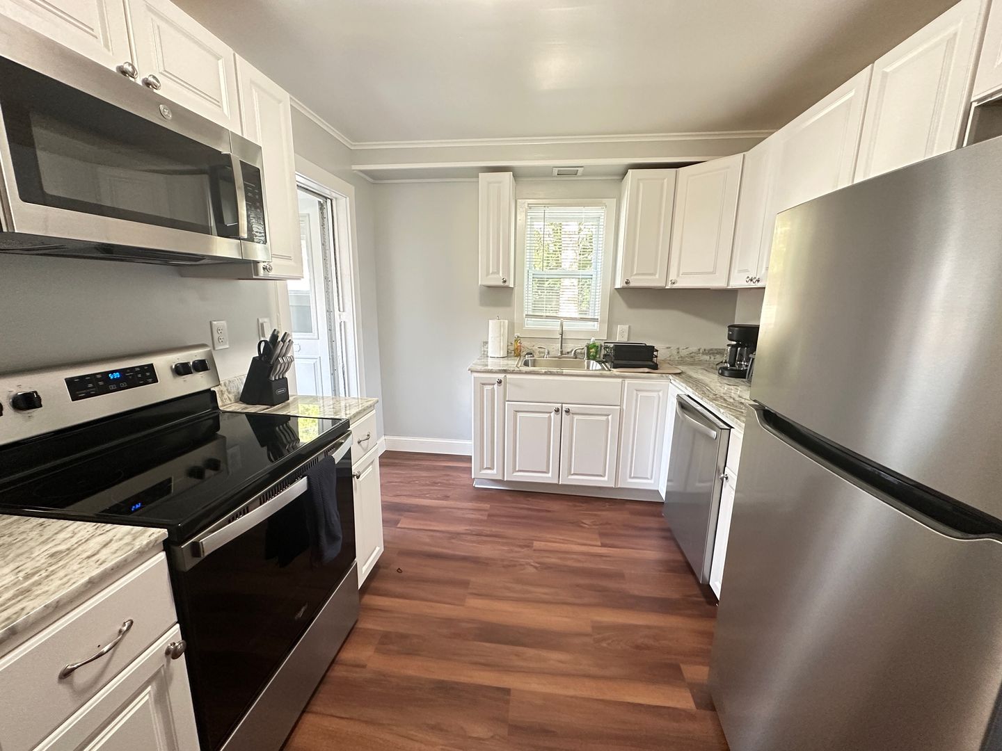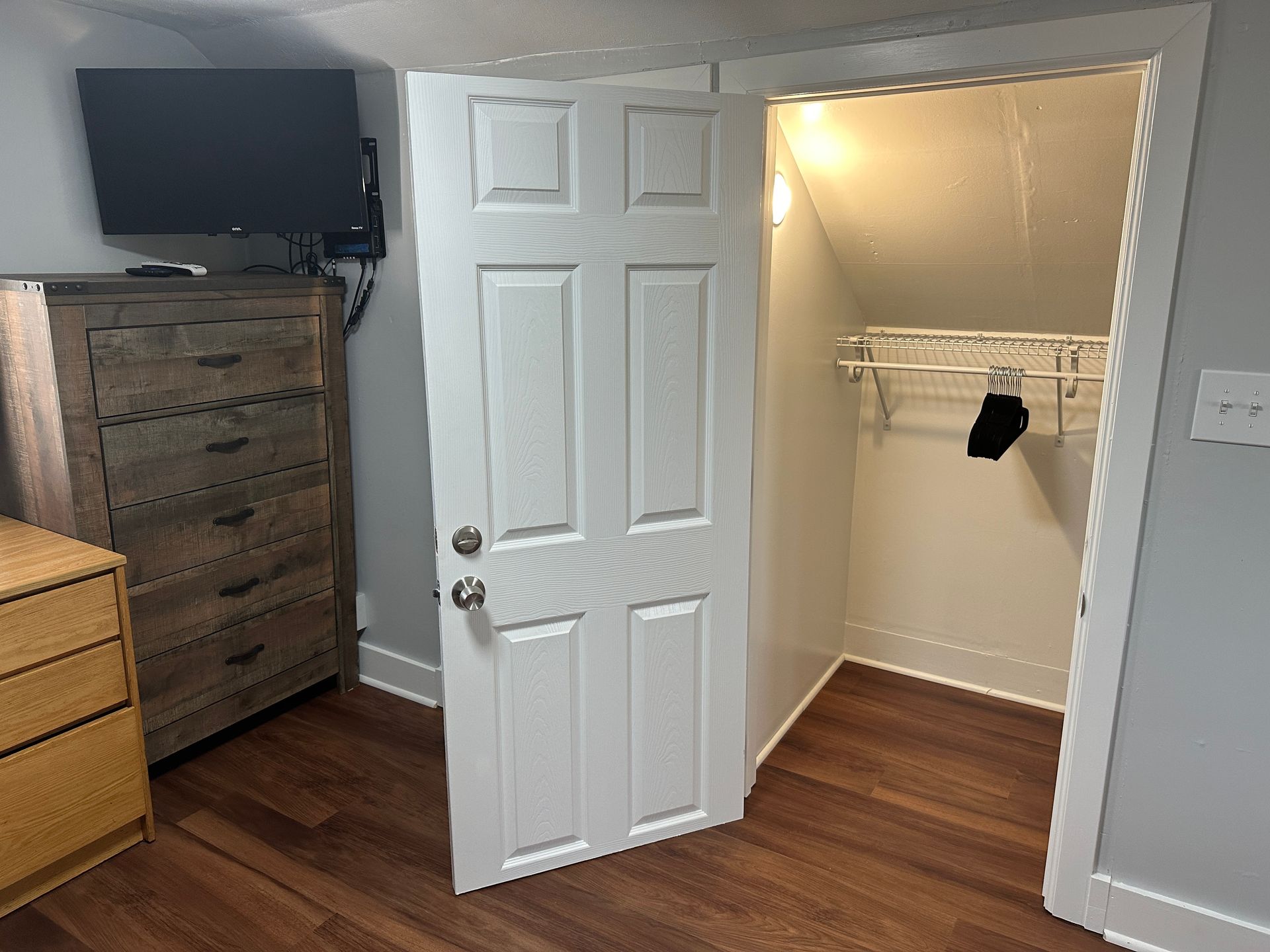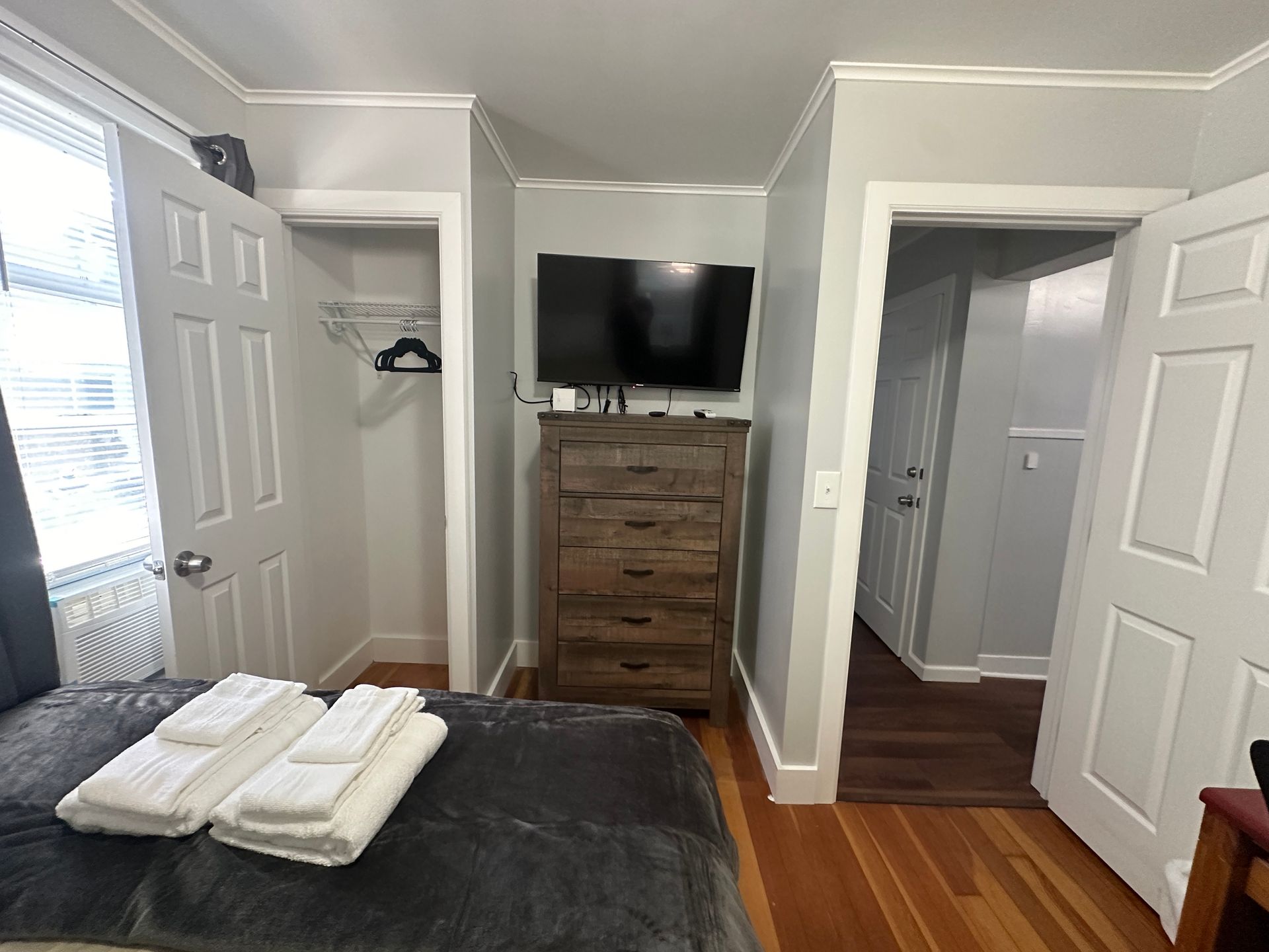 Welcome to this meticulously maintained, fully furnished single-family home, ideal for student living. Boasting two bedrooms with a total of three beds, including a smaller ground floor bedroom and a spacious loft featuring two sets of bedroom furniture. Amenities such as on-site laundry ensure convenience, while the front porch and yard provide ample space for outdoor activities. With plenty of off-street parking available, this residence is strategically situated close to campus and bus routes, offering easy access to downtown Main Street's vibrant array of restaurants and stores. The first floor comprises a well-equipped kitchen with abundant cabinets and a microwave, complemented by a living room featuring a couch, coffee and end tables, an entertainment center, and a 50" flat-screen TV. Additionally, a nicely sized full bathroom with a stand-up shower is conveniently located on the first floor, alongside one of the bedrooms. Upstairs, the loft houses two beds, both of which are nicely sized and furnished with newer furniture, including a 32"-50" TV, ensuring a comfortable and enjoyable living experience for students.
