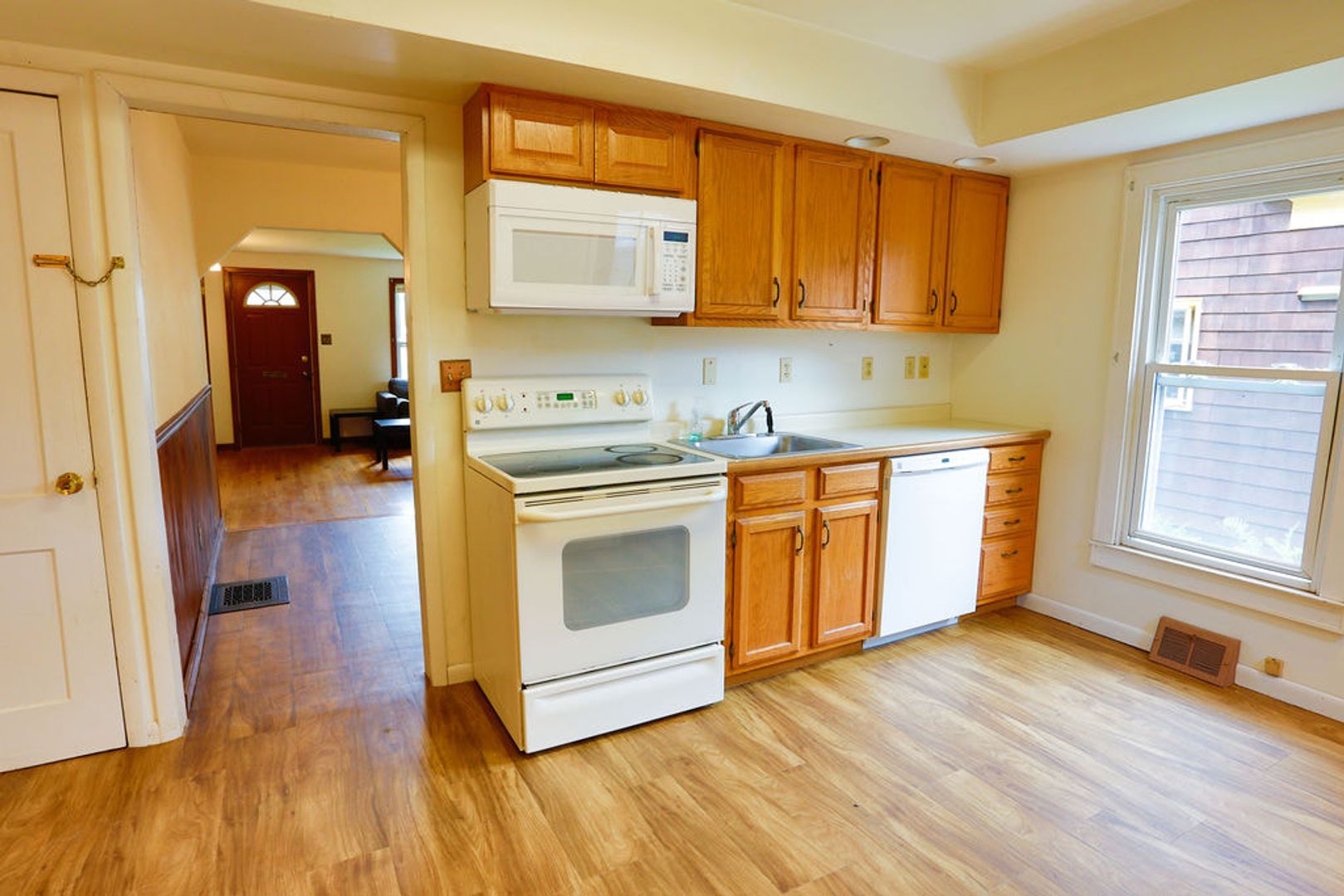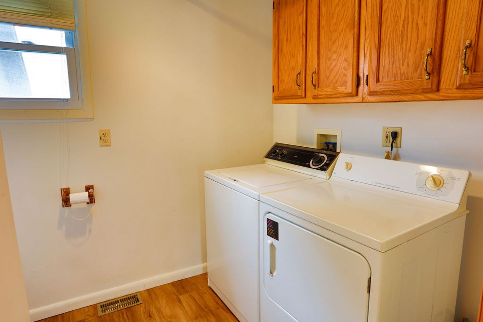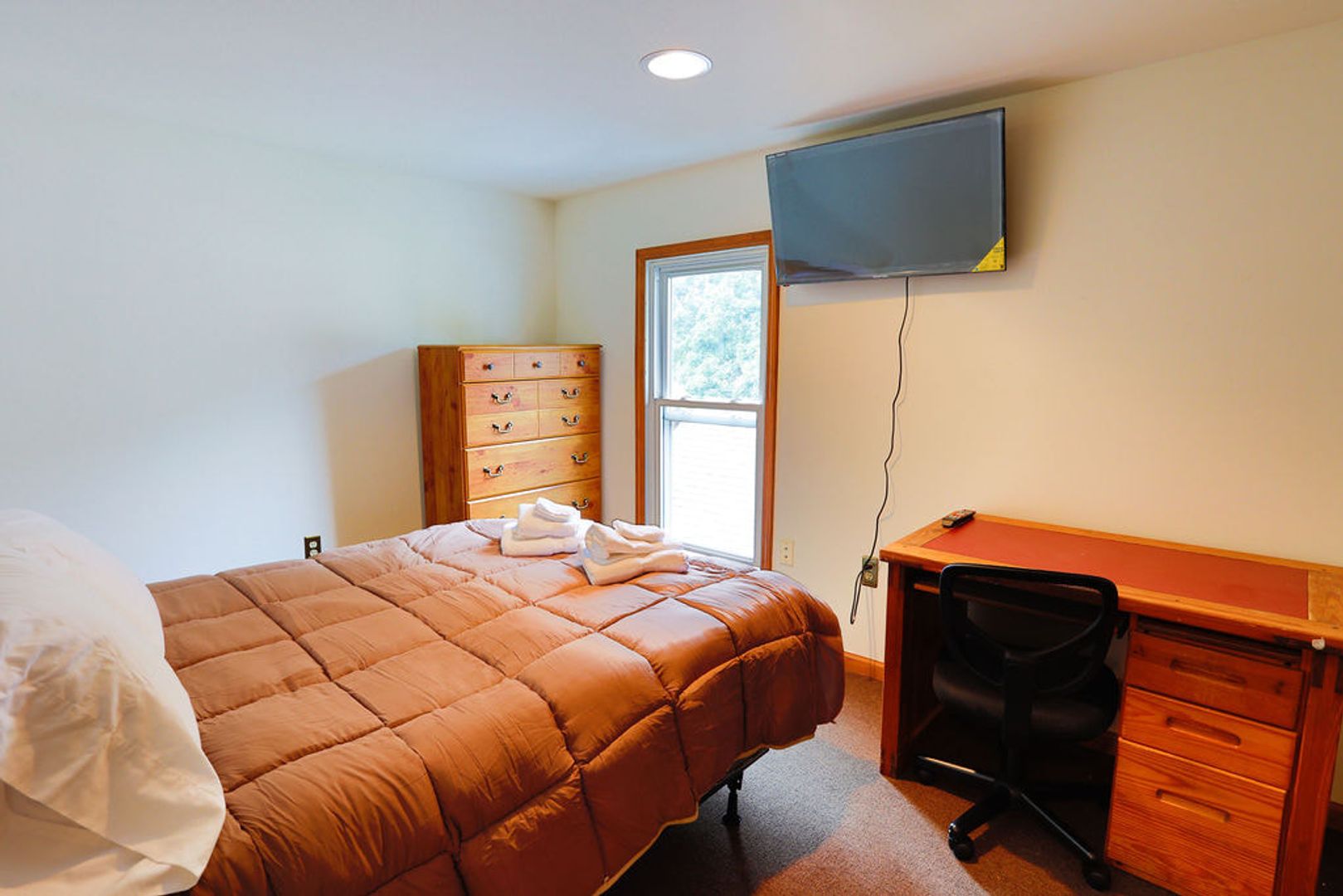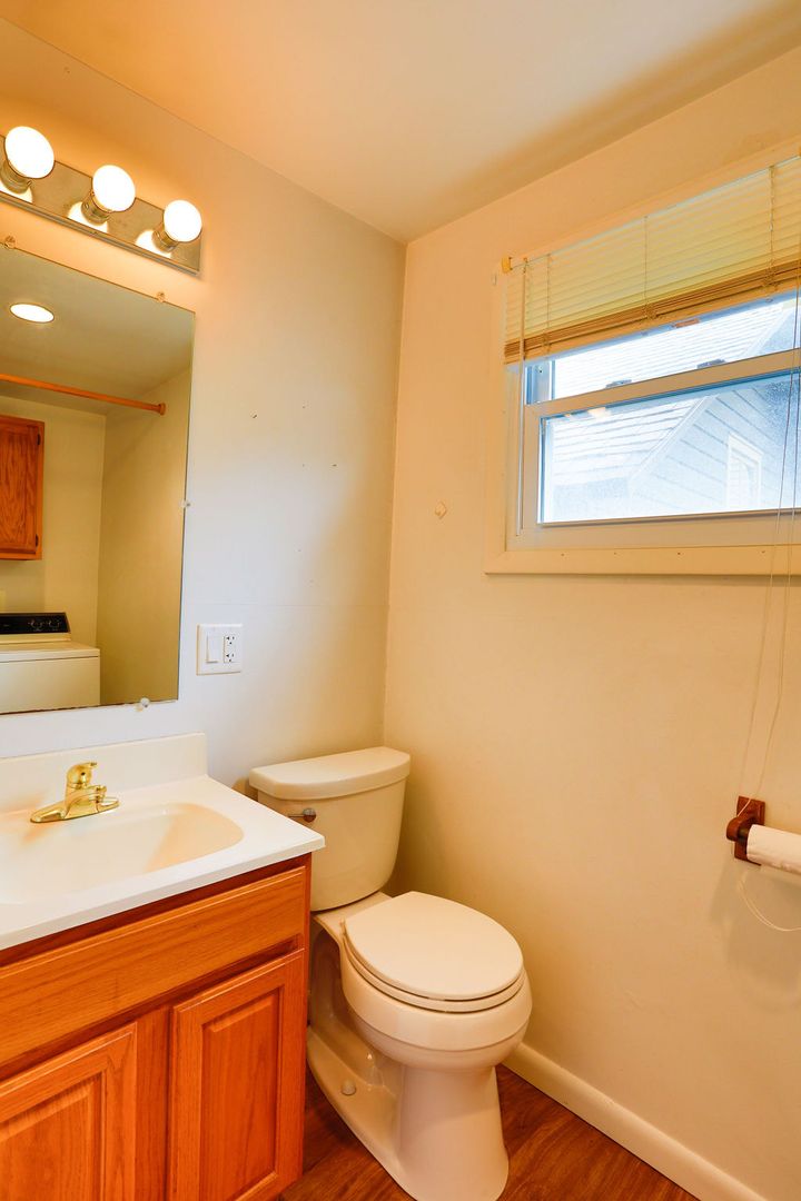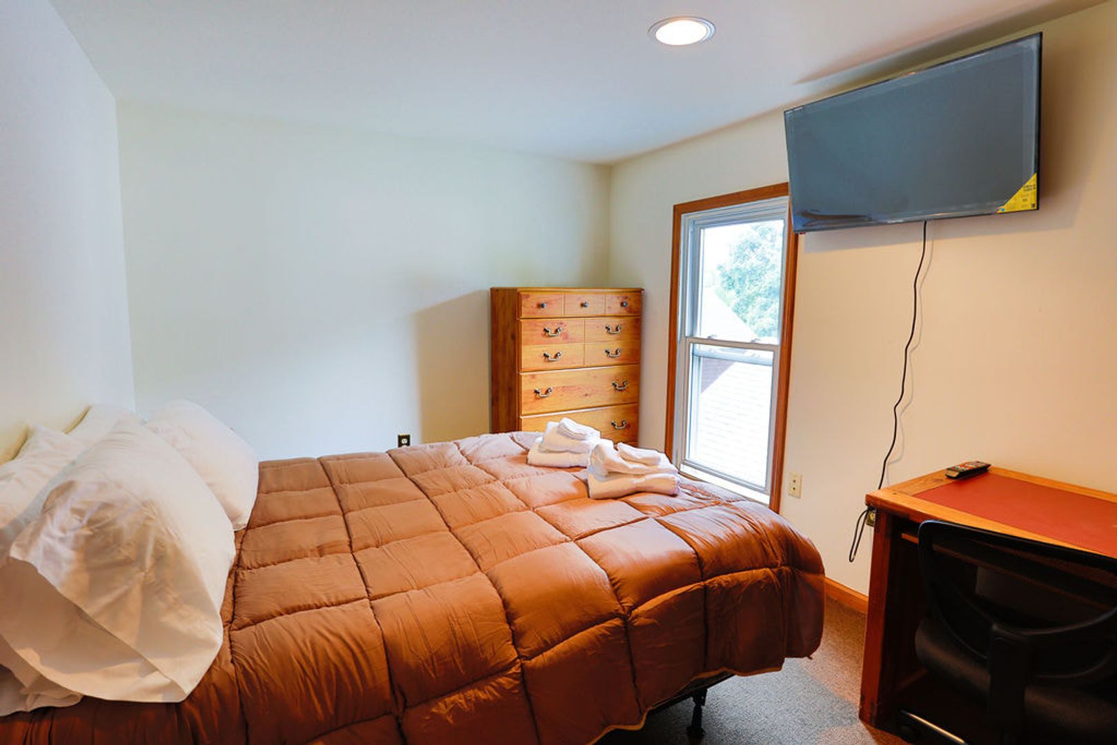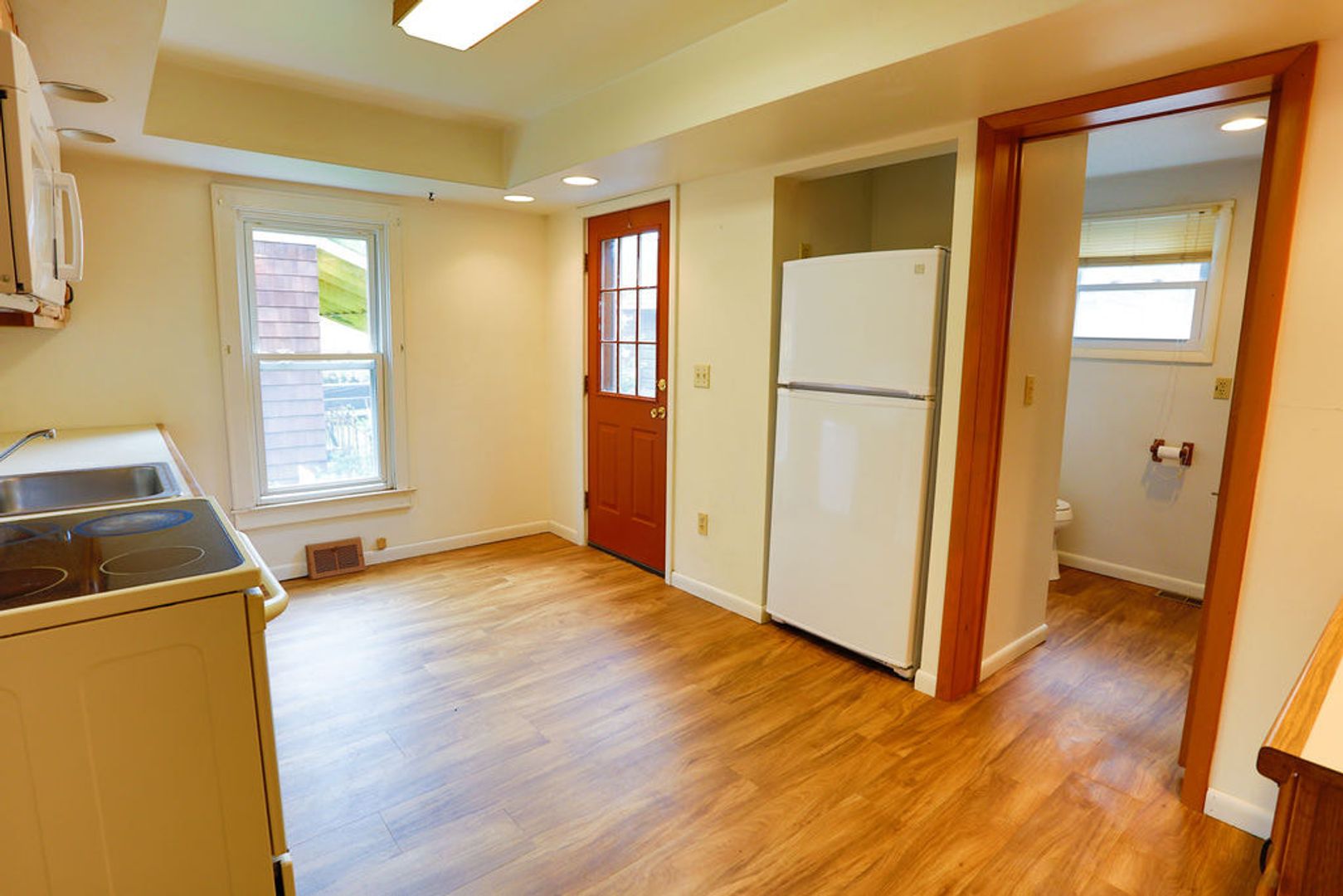 Centrally situated, this two-bedroom apartment offers comfort and convenience for residents. The first floor boasts inviting wood floors and an eat-in kitchen equipped with ample cabinets, a dishwasher, microwave, and a dining table set. A half bathroom, inclusive of a washer and dryer, enhances practicality. The spacious living room features two cozy couches, coffee and end tables, an entertainment center, and a 50" flat screen TV for relaxation and entertainment. Upstairs, a full bathroom with a combination tub and shower caters to residents' needs. The carpeted bedrooms, adorned with newer furniture and each fitted with a 32"-50" TV, offer a cozy retreat. Positioned just a short stroll from downtown Main Street, restaurants, stores, and bus routes, this apartment presents an ideal blend of convenience and comfort. Whether opting to rent individually or securing the entire house with friends, this property offers versatile living options.