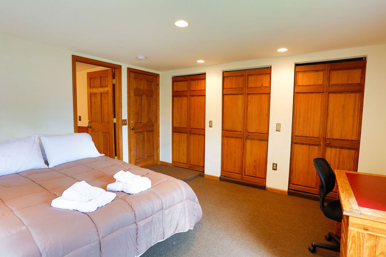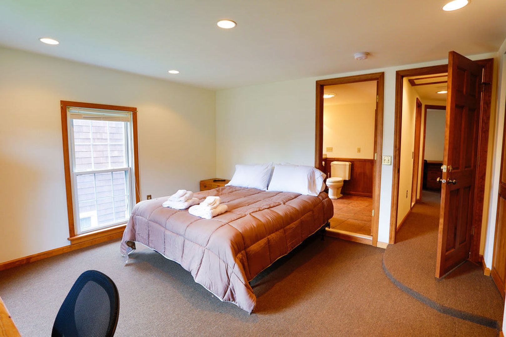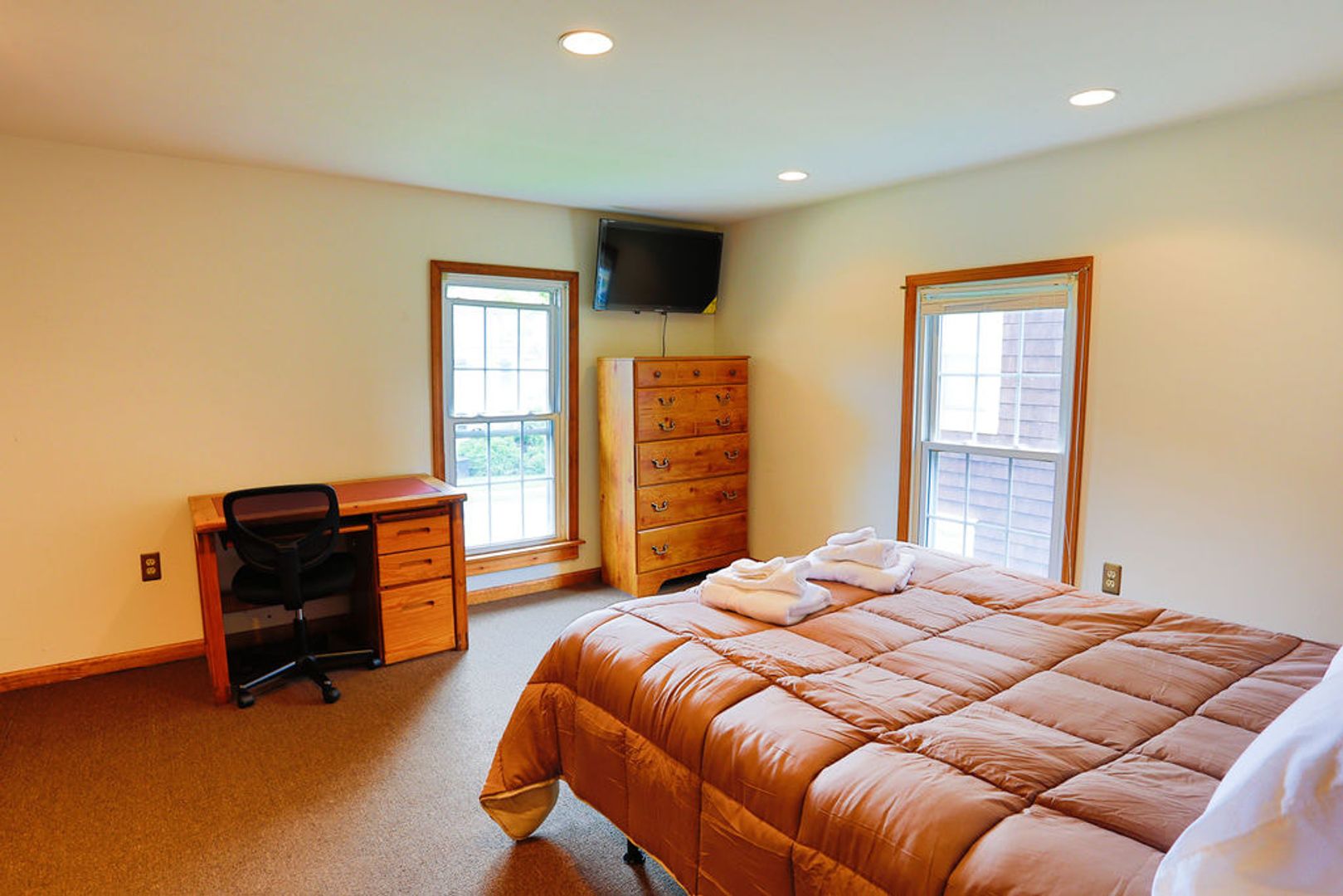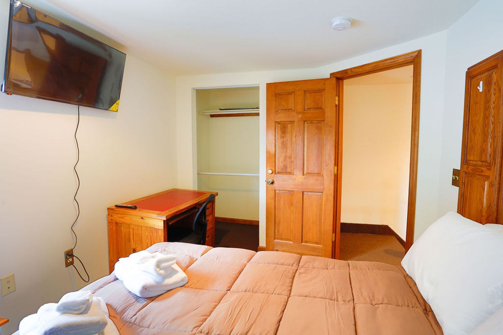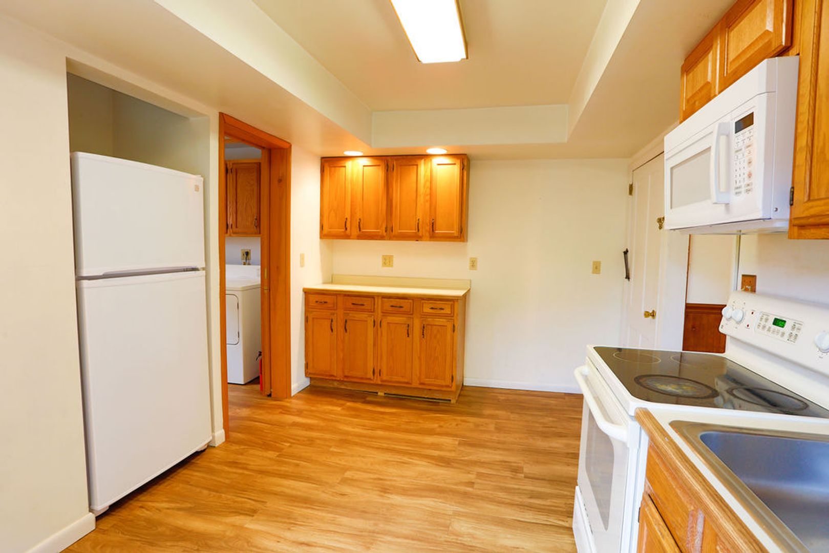 Centrally situated, this two-bedroom apartment offers comfort and convenience for residents. The first floor boasts inviting wood floors and an eat-in kitchen equipped with ample cabinets, a dishwasher, microwave, and a dining table set. A half bathroom, inclusive of a washer and dryer, enhances practicality. The spacious living room features two cozy couches, coffee and end tables, an entertainment center, and a 50" flat screen TV for relaxation and entertainment. Upstairs, a full bathroom with a combination tub and shower caters to residents' needs. The carpeted bedrooms, adorned with newer furniture and each fitted with a 32"-50" TV, offer a cozy retreat. Positioned just a short stroll from downtown Main Street, restaurants, stores, and bus routes, this apartment presents an ideal blend of convenience and comfort. Whether opting to rent individually or securing the entire house with friends, this property offers versatile living options.