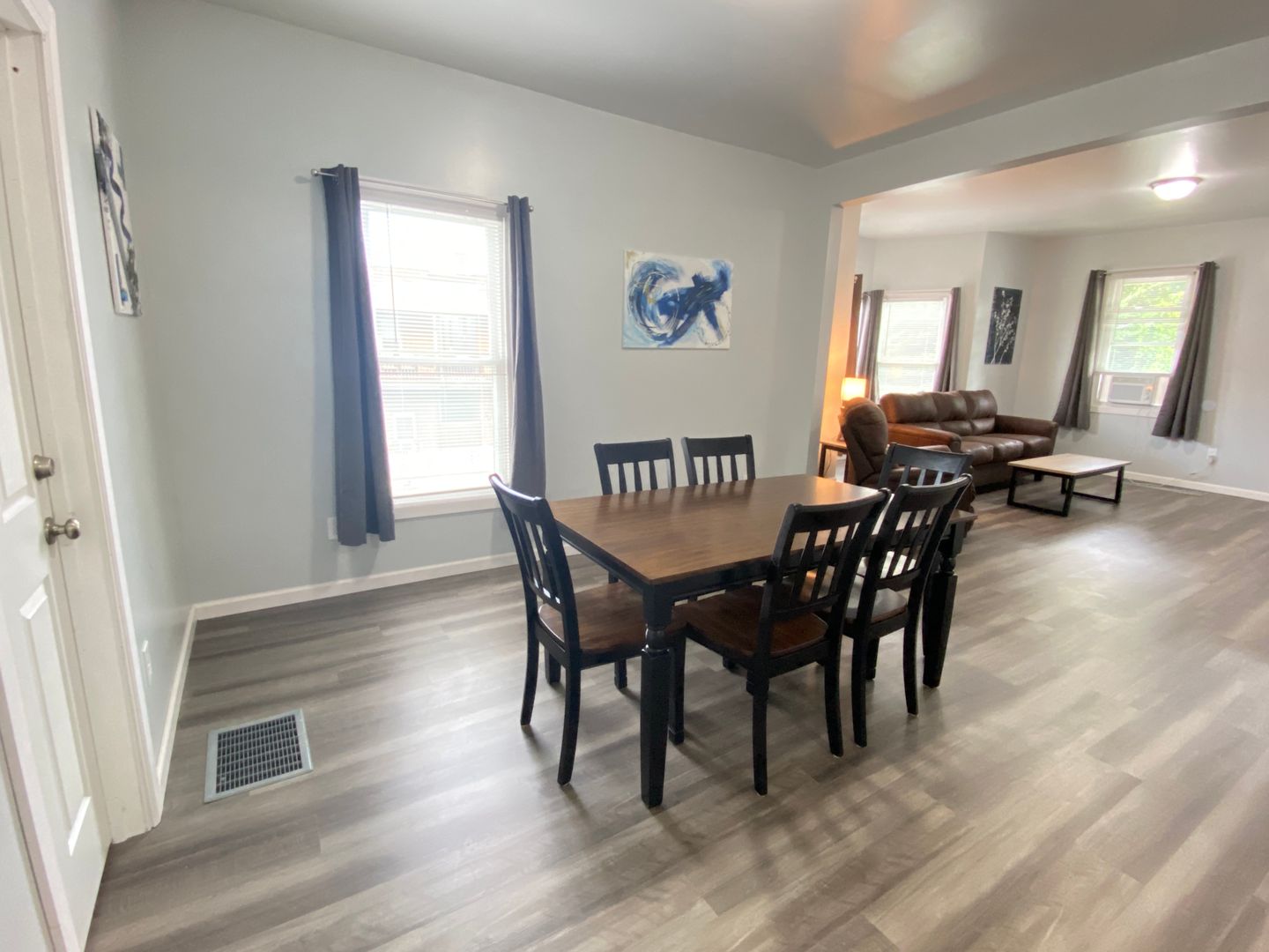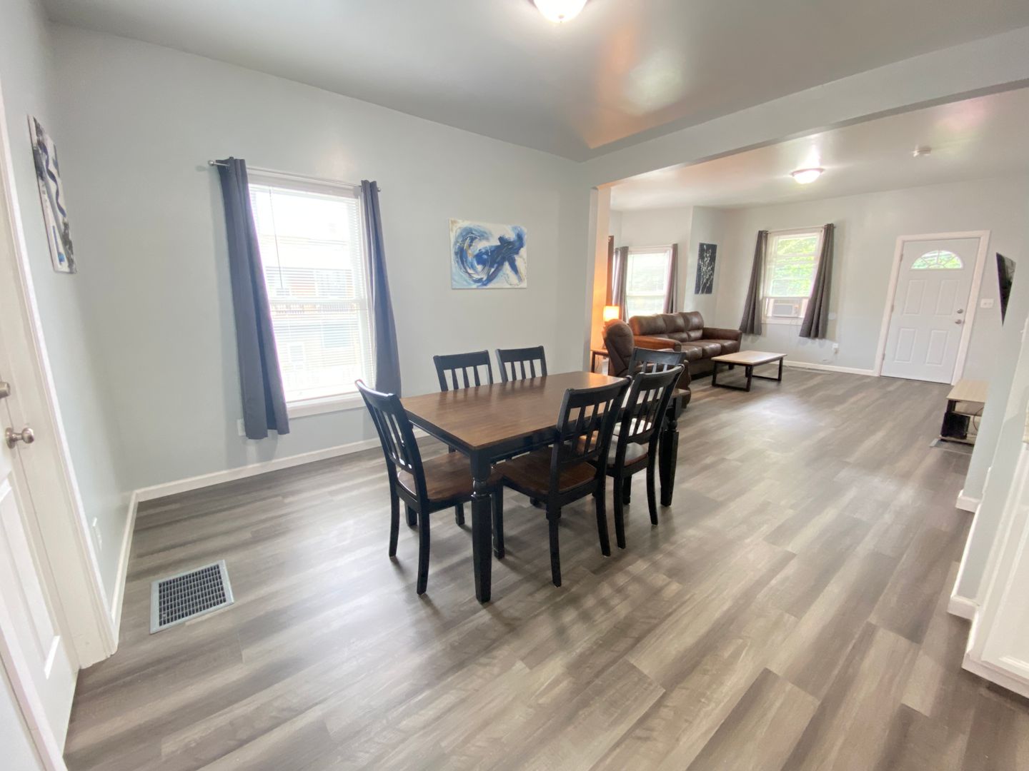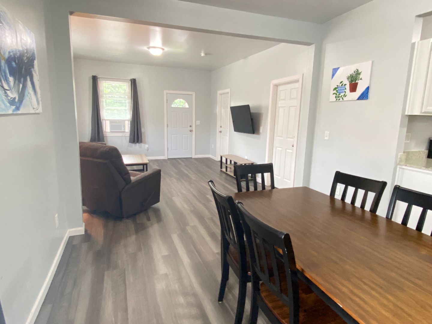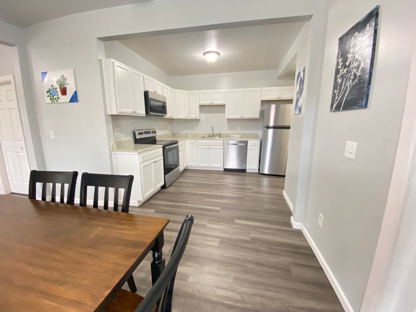 Welcome to this spacious first-floor three-bedroom apartment, offering comfortable living in a convenient location. The apartment features a well-equipped kitchen with a refrigerator and stove, providing essential amenities for cooking and meal preparation. Enjoy meals in the separate dining room, and relax in the cozy living room. The full bathroom includes a convenient stand-up shower for added comfort. Each of the three spacious bedrooms is furnished with newer furniture and includes a TV, providing ample space for relaxation and entertainment. Outside, the large front porch offer additional space for outdoor enjoyment and relaxation. Situated just off downtown Main Street, the apartment is within walking distance to restaurants and stores, offering easy access to amenities. Additionally, its proximity to the college campus and bus routes adds to the convenience of the location, making it an ideal choice for comfortable and accessible living.