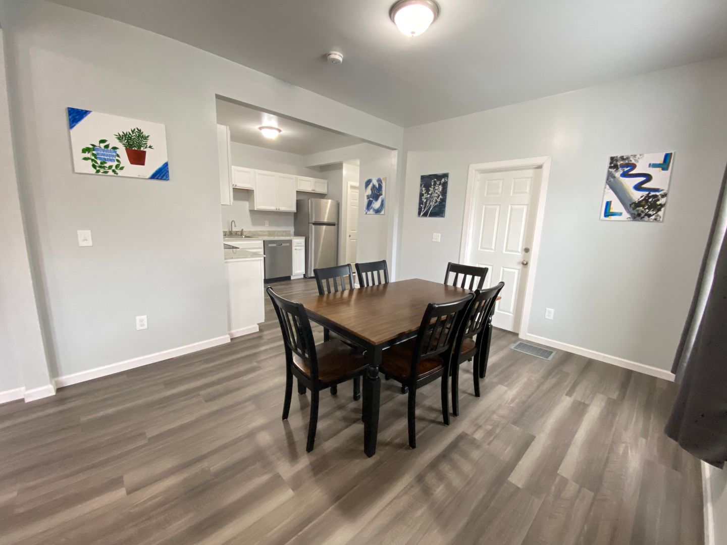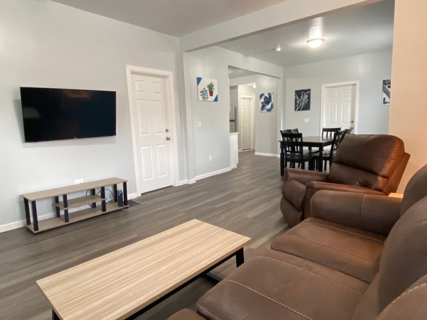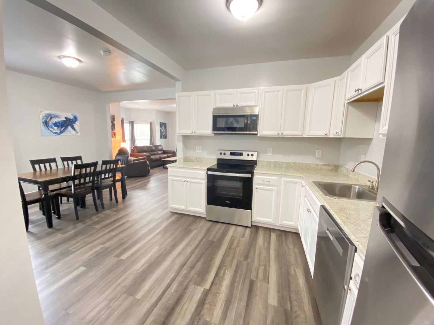 Welcome to this spacious first-floor three-bedroom apartment, offering comfortable living in a convenient location. The apartment features a well-equipped kitchen with a refrigerator and stove, providing essential amenities for cooking and meal preparation. Enjoy meals in the separate dining room, and relax in the cozy living room. The full bathroom includes a convenient stand-up shower for added comfort. Each of the three spacious bedrooms is furnished with newer furniture and includes a TV, providing ample space for relaxation and entertainment. Outside, the large front porch offer additional space for outdoor enjoyment and relaxation. Situated just off downtown Main Street, the apartment is within walking distance to restaurants and stores, offering easy access to amenities. Additionally, its proximity to the college campus and bus routes adds to the convenience of the location, making it an ideal choice for comfortable and accessible living.
