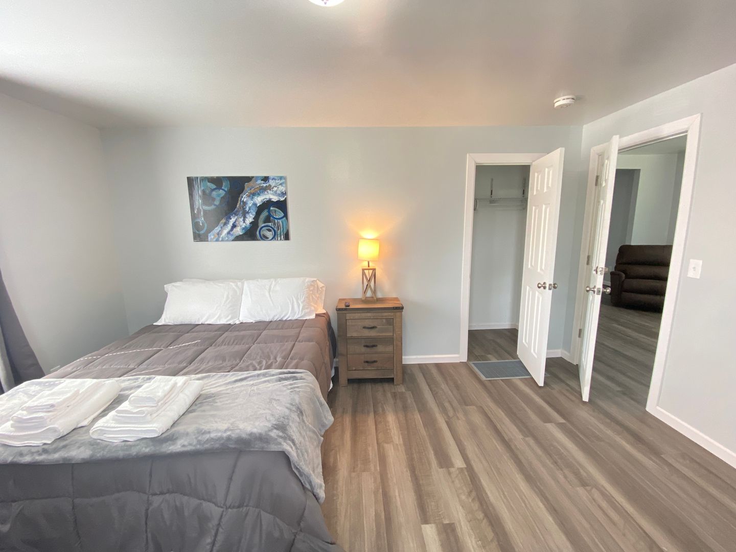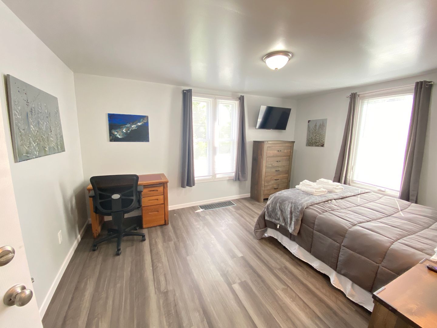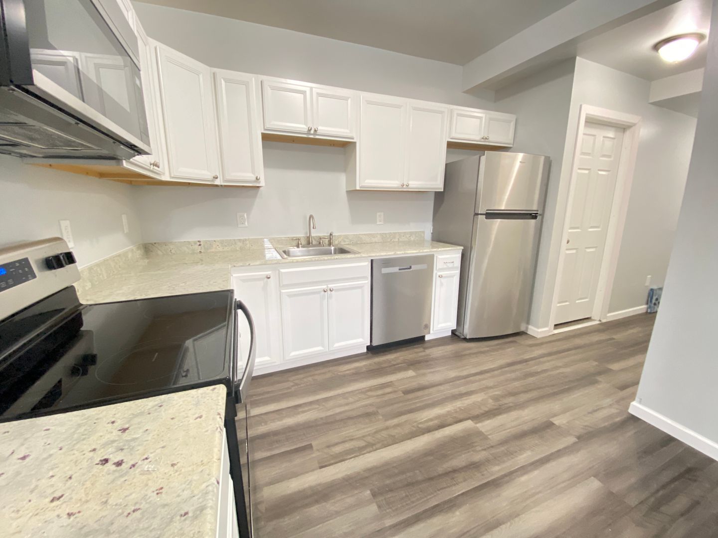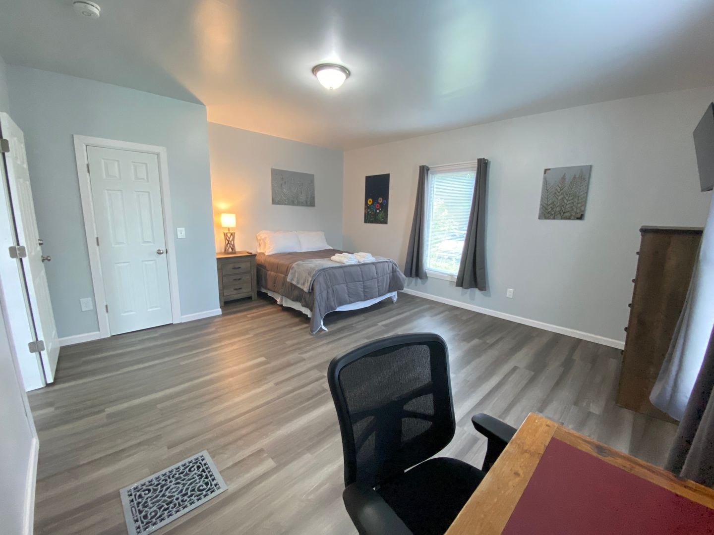Welcome to this spacious first-floor three-bedroom apartment, offering comfortable living in a convenient location. The apartment features a well-equipped kitchen with a refrigerator and stove, providing essential amenities for cooking and meal preparation. Enjoy meals in the separate dining room, and relax in the cozy living room. The full bathroom includes a convenient stand-up shower for added comfort. Each of the three spacious bedrooms is furnished with newer furniture and includes a TV, providing ample space for relaxation and entertainment. Outside, the large front porch offer additional space for outdoor enjoyment and relaxation. Situated just off downtown Main Street, the apartment is within walking distance to restaurants and stores, offering easy access to amenities. Additionally, its proximity to the college campus and bus routes adds to the convenience of the location, making it an ideal choice for comfortable and accessible living.
